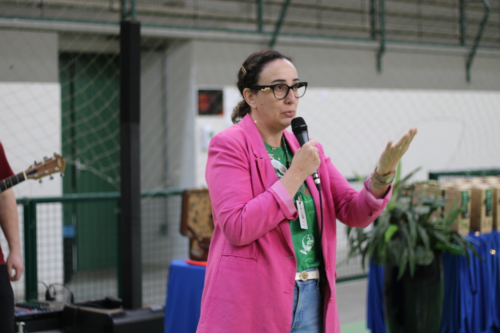 A reitora em exercício da Unesc, Gisele Silveira Coelho Lopes, acompanhou o encontro e deixou uma mensagem especial aos estudantes e às famílias. “Hoje vemospresenciamos  famílias reunidas celebrando o encerramento de um ciclo importante, em um momento que valoriza o espaço familiar como um verdadeiro presente e uma grande oportunidade de conexão. A educação, para nós, vai muito além de um protocolo, ela é um espaço de integração, de transformação e de fortalecimento das famílias, servindo como âncora para a formação pessoal de cada estudante”, falou Gisele.