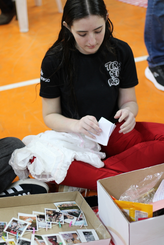 Entre as surpresas do dia, uma em especial despertou lágrimas e sorrisos: as “caixas de memórias”, preparadas pelos familiares. Dentro delas, cada estudante encontrou pedaços da própria história com fotos, cartas, brinquedos, roupas, desenhos e objetos que acompanharam sua infância e adolescência.