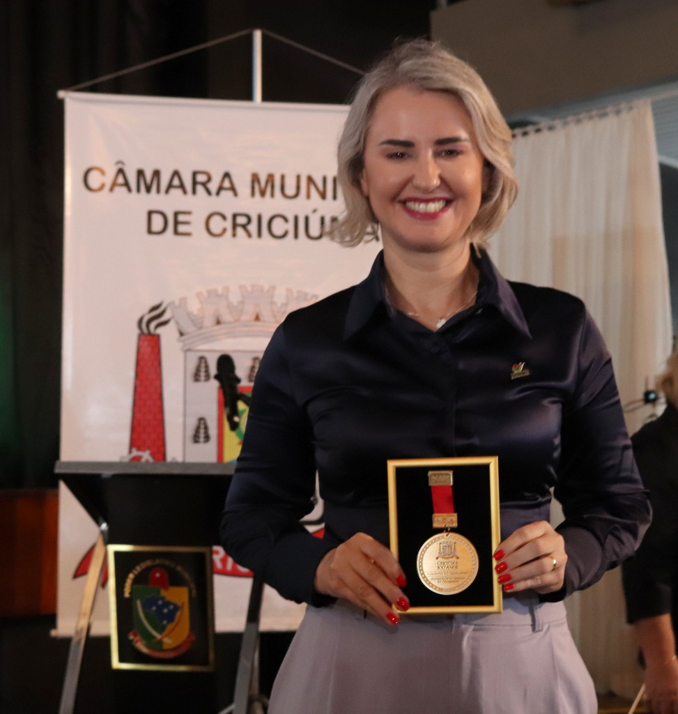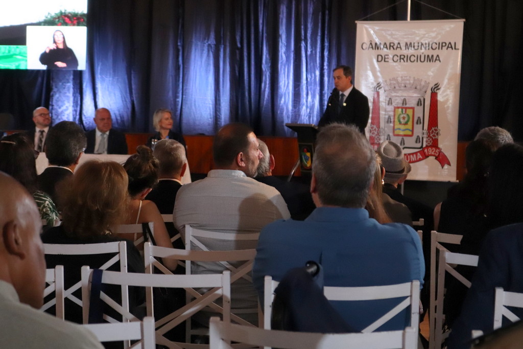 A honraria foi entregue durante sessão especial realizada na Sociedade Recreativa Mampituba em evento que integra as celebrações oficiais dos 100 anos de emancipação político-administrativa do município e reuniu autoridades, homenageados e convidados em momento de reconhecimento e gratidão àqueles que ajudaram a construir a Criciúma de hoje.