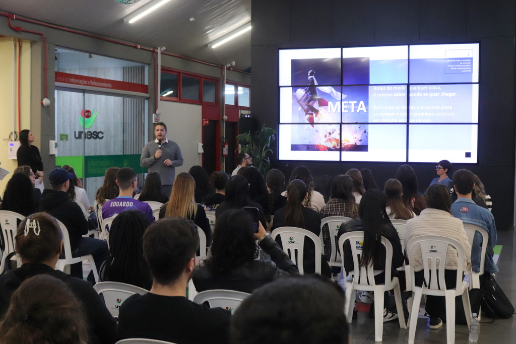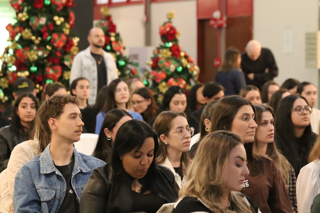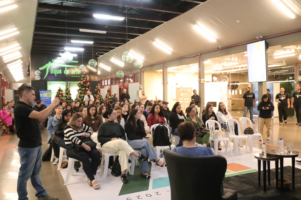 A Escola de Comunicação Criativa (Ecocria) da Unesc promoveu, na noite desta segunda-feira (17/11), mais uma edição do Conexão Talk, encontro que reúne estudantes e profissionais do mercado para debater temas essenciais à formação humana e profissional da área de comunicação. A atividade, realizada no campus da Universidade, movimentou acadêmicos dos cursos de Comunicação Digital, Publicidade e Propaganda e Jornalismo.