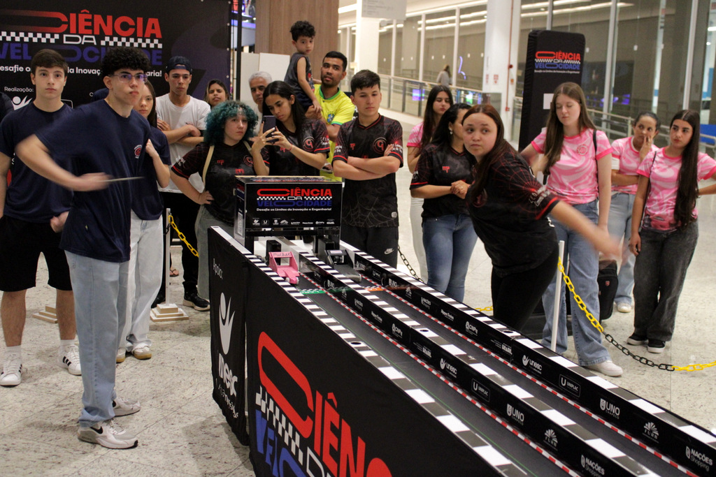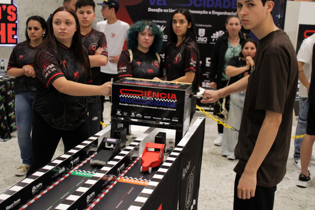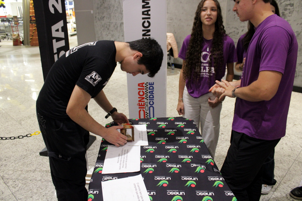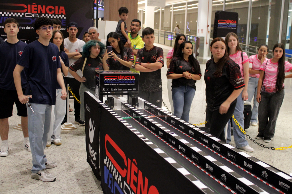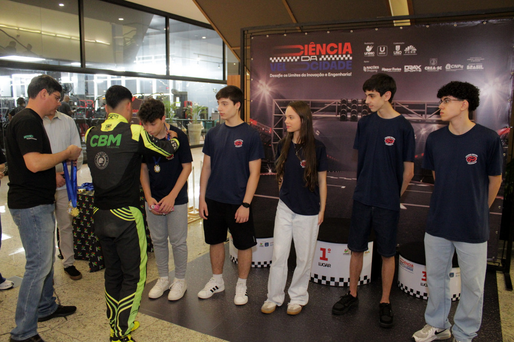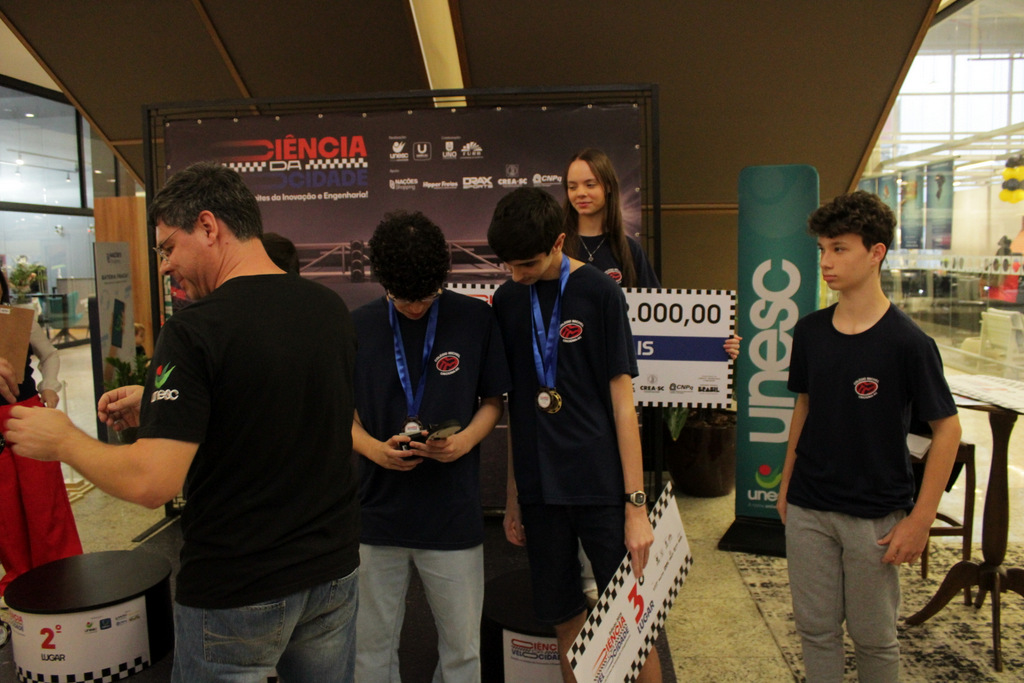 Em segundo lugar ficou a Escola Alfa de Chapecó, e o Colégio Michel de Criciúma conquistou a terceira colocação. A competição científica ocorreu à tarde deste sábado (22/11), no Nações Shopping (Fotos: Décio Batista/Agecom/Unesc)
