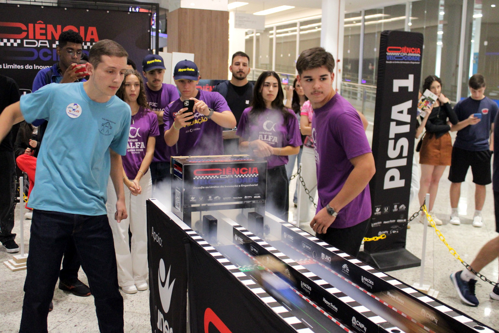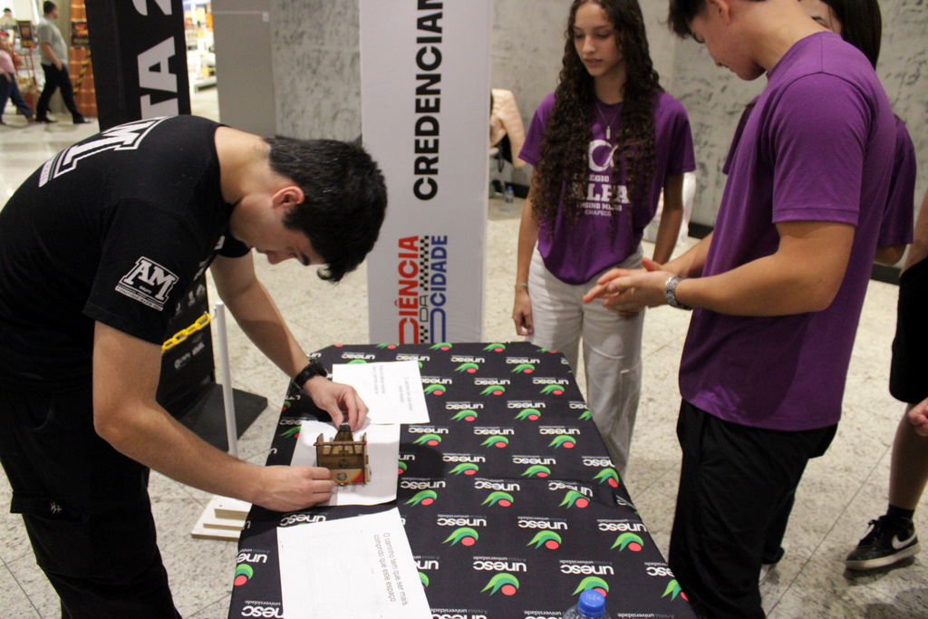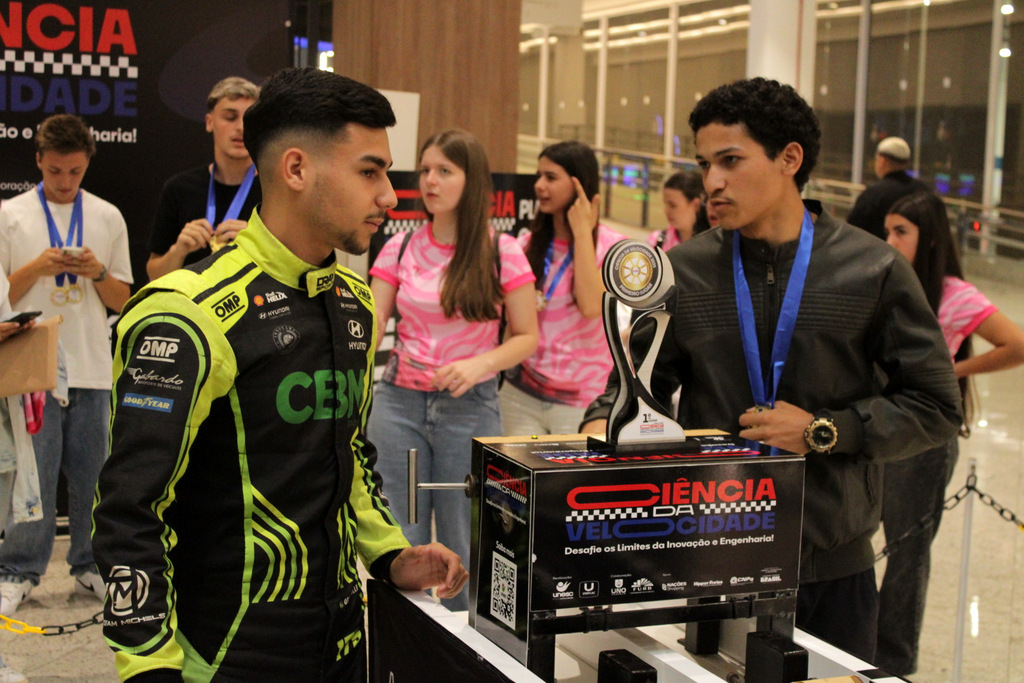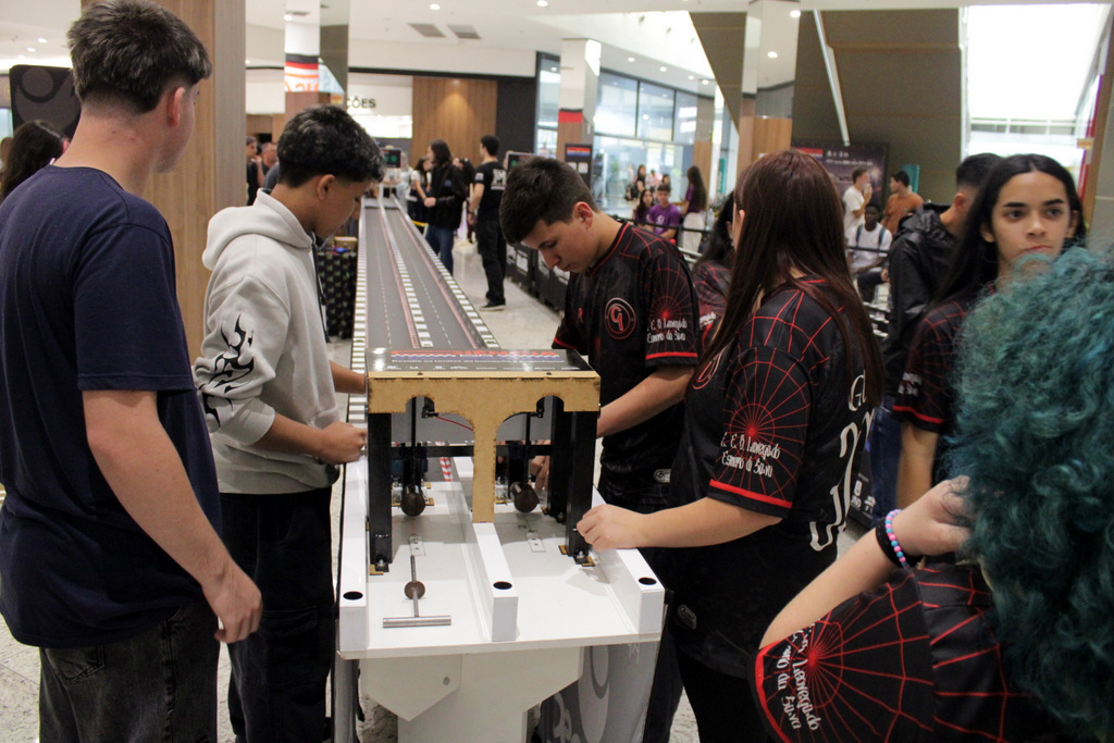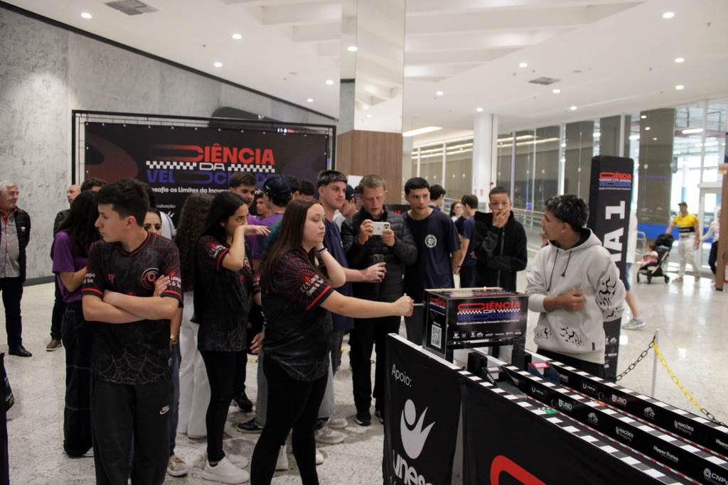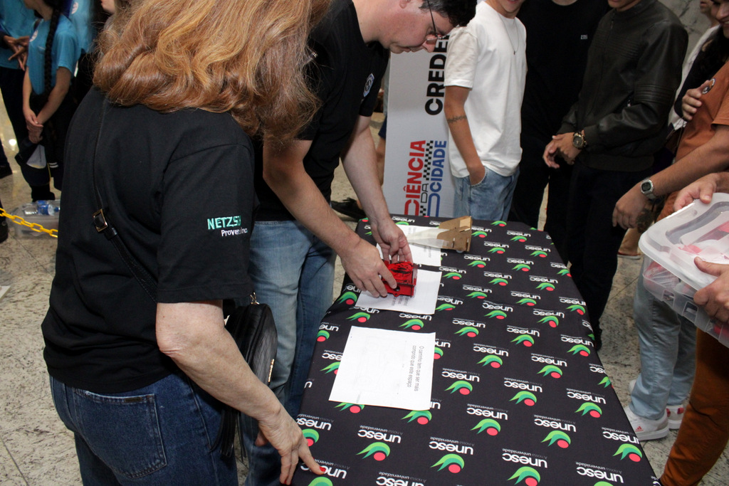 Em segundo lugar ficou a Escola Alfa de Chapecó, e o Colégio Michel de Criciúma conquistou a terceira colocação. A competição científica ocorreu à tarde deste sábado (22/11), no Nações Shopping (Fotos: Décio Batista/Agecom/Unesc)