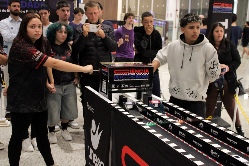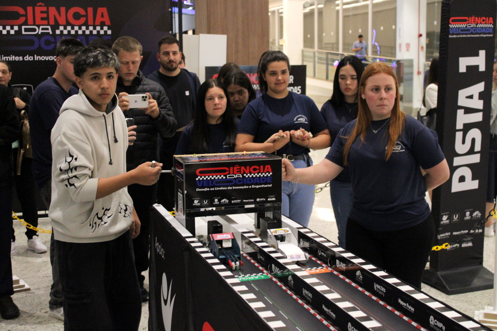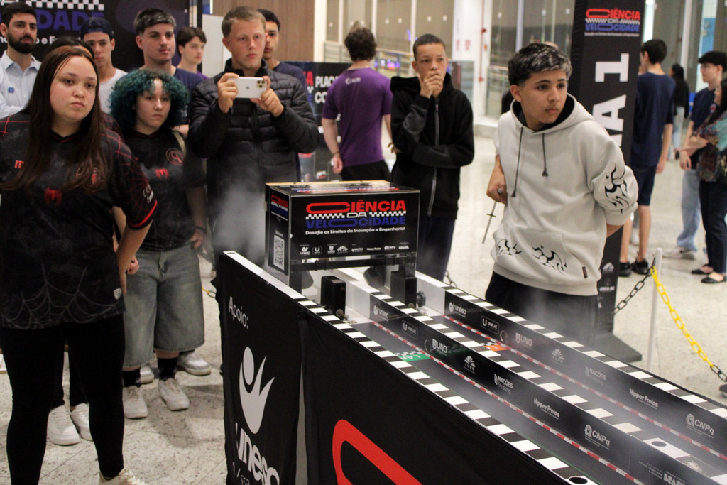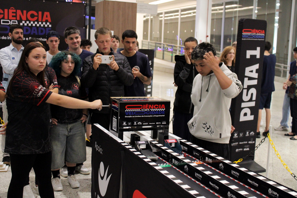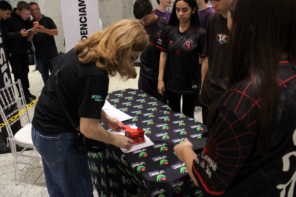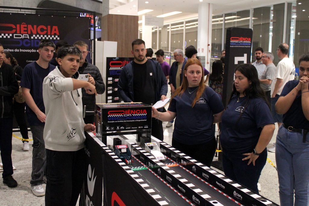 Em segundo lugar ficou a Escola Alfa de Chapecó, e o Colégio Michel de Criciúma conquistou a terceira colocação. A competição científica ocorreu à tarde deste sábado (22/11), no Nações Shopping (Fotos: Décio Batista/Agecom/Unesc)