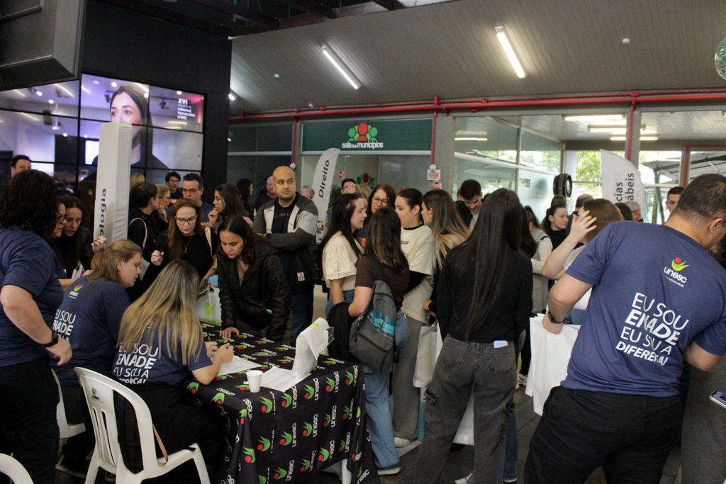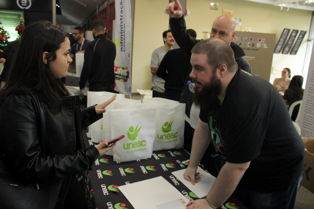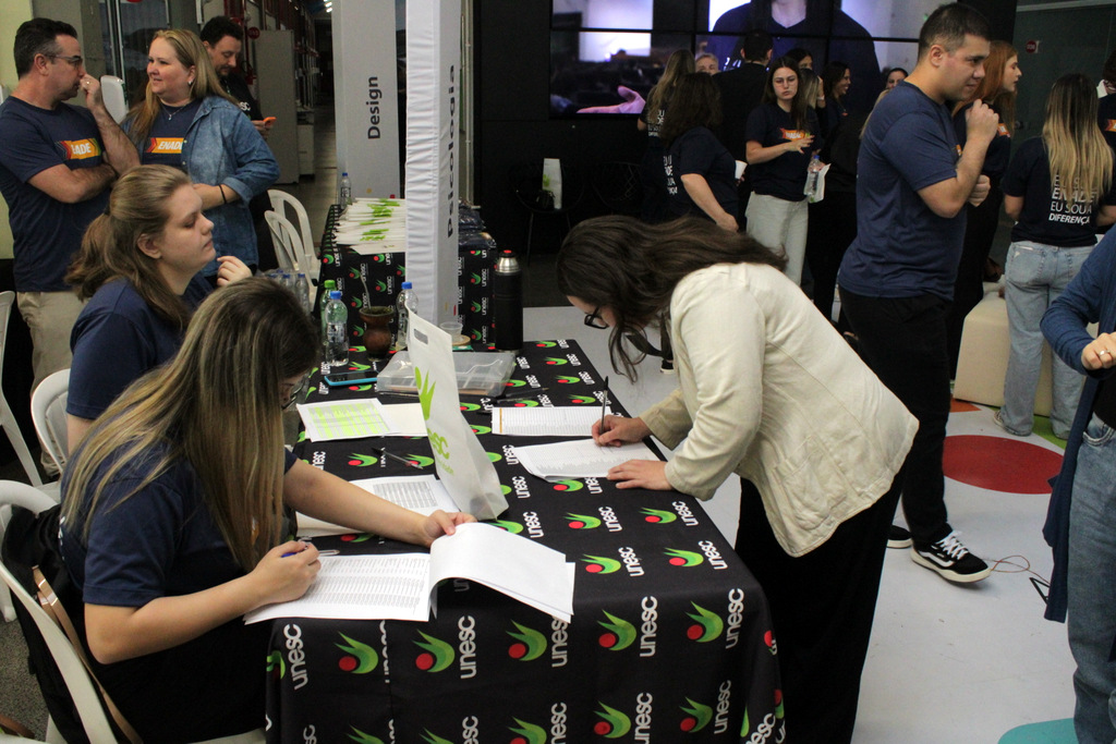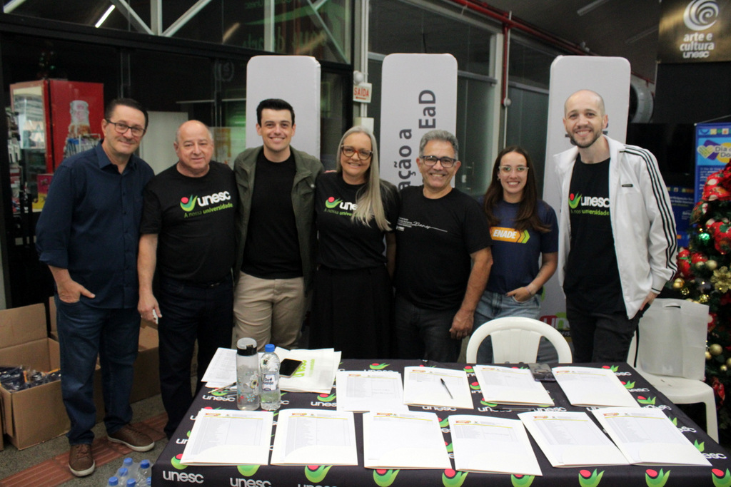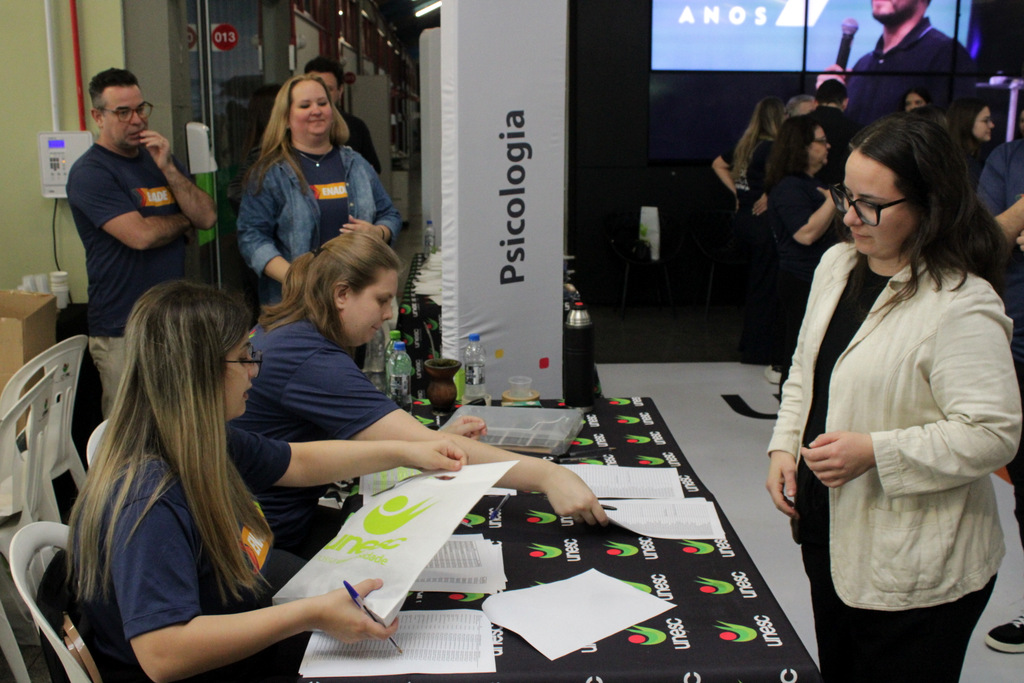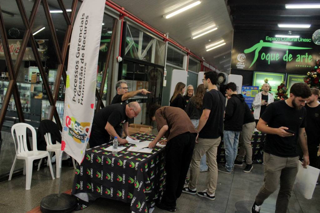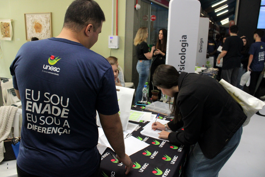 Professores preparam uma recepção calorosa neste domingo (23/11), no hall do Bloco Administrativo, para receber os estudantes de vários cursos (Fotos: Décio Batista/Agecom/Unesc)