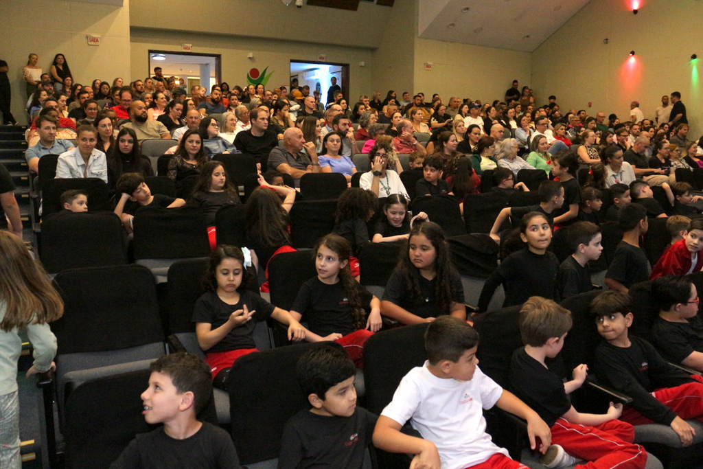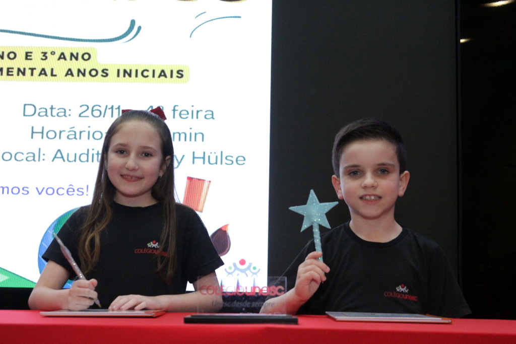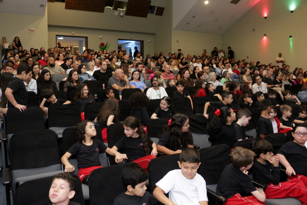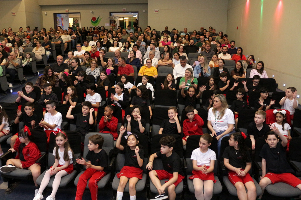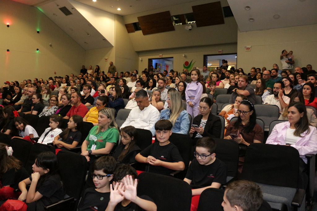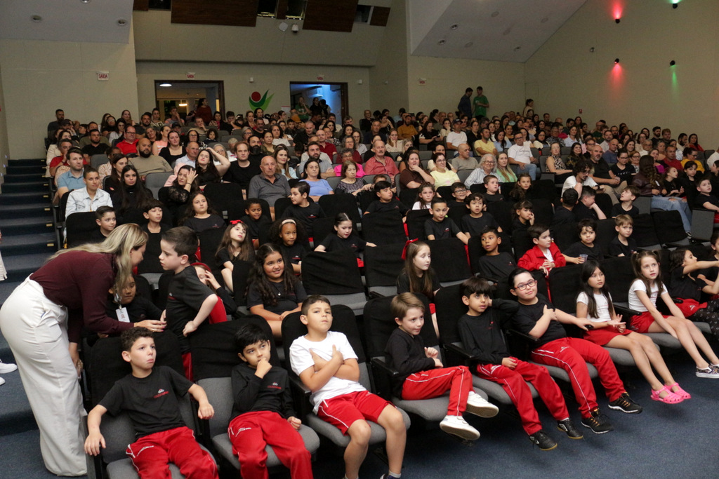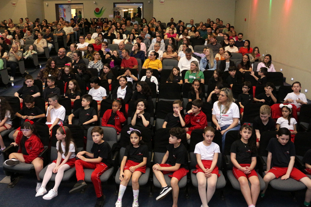 Alunos do 2 e 3º Anos Iniciais foram os protagonistas, nesta noite de quarta-feira (26/11), no palco do auditório Ruy Hülse (Fotos: Décio Batista/Agecom/Unesc)