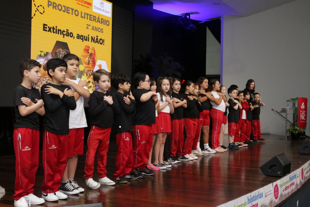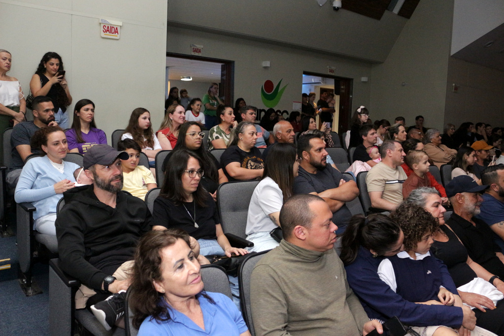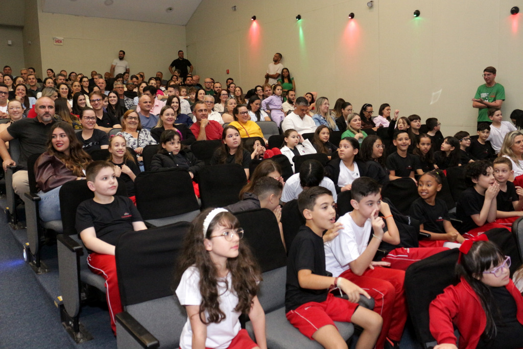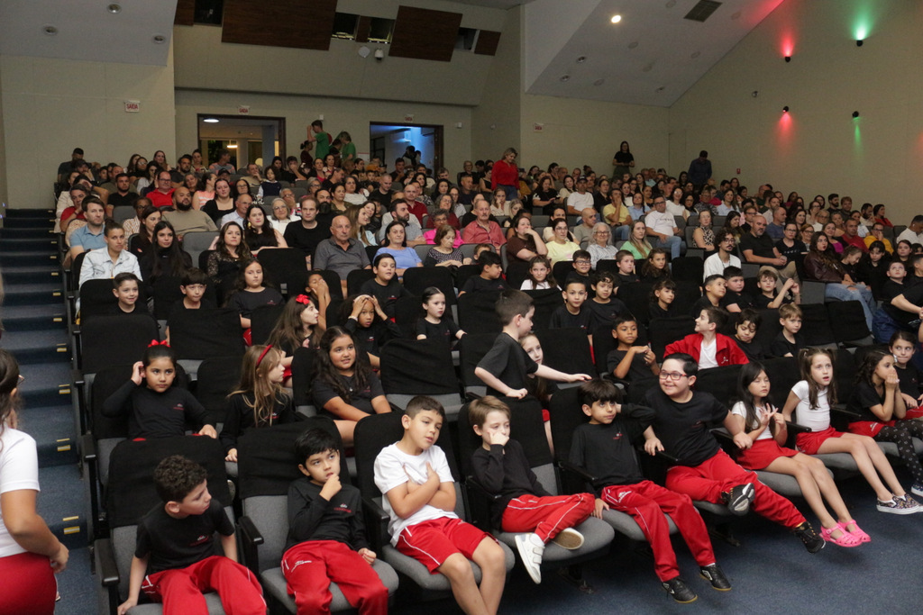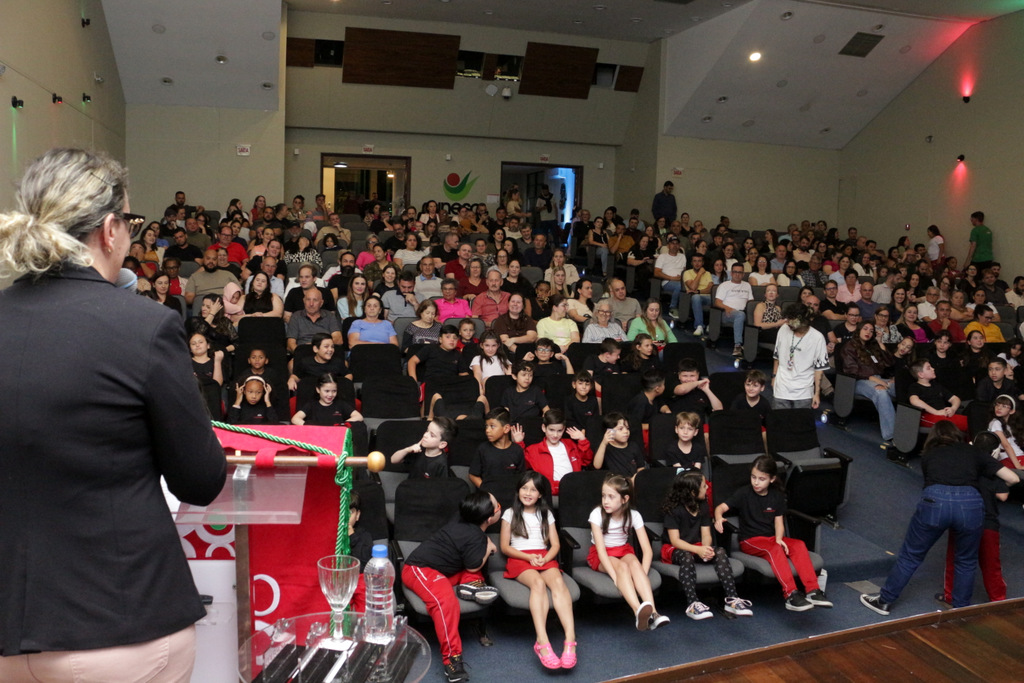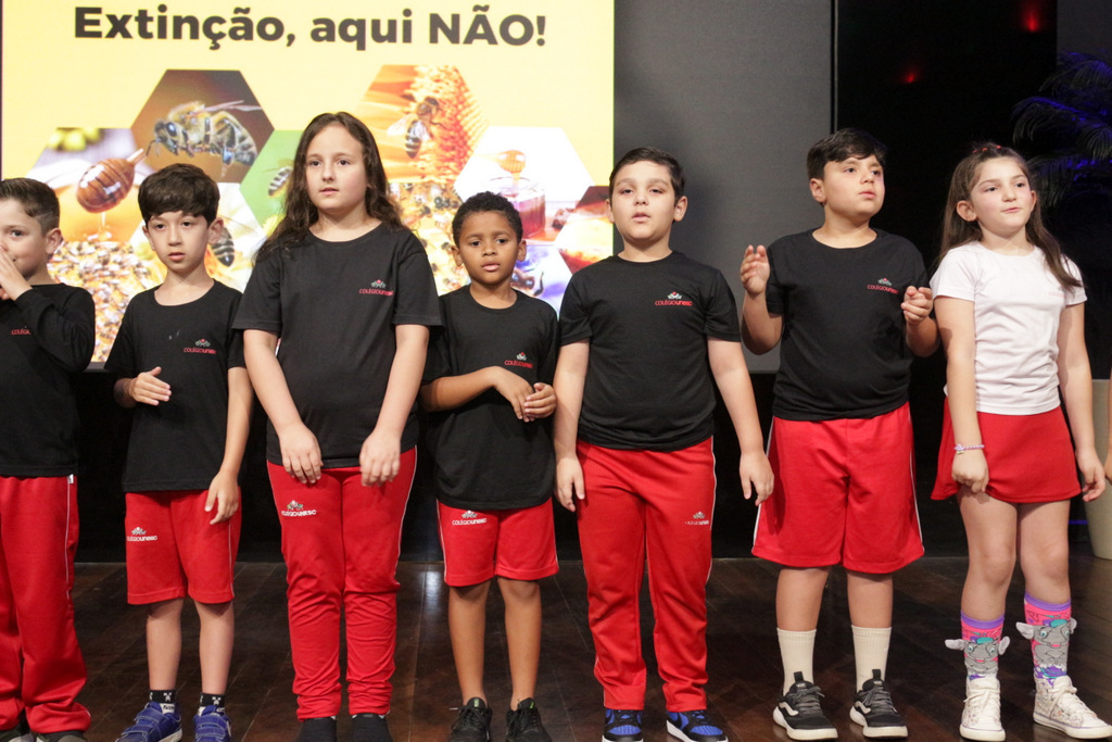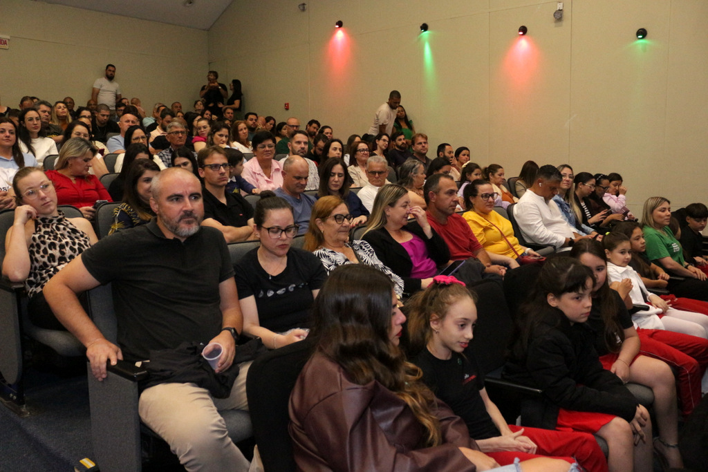 Alunos do 2 e 3º Anos Iniciais foram os protagonistas, nesta noite de quarta-feira (26/11), no palco do auditório Ruy Hülse (Fotos: Décio Batista/Agecom/Unesc)