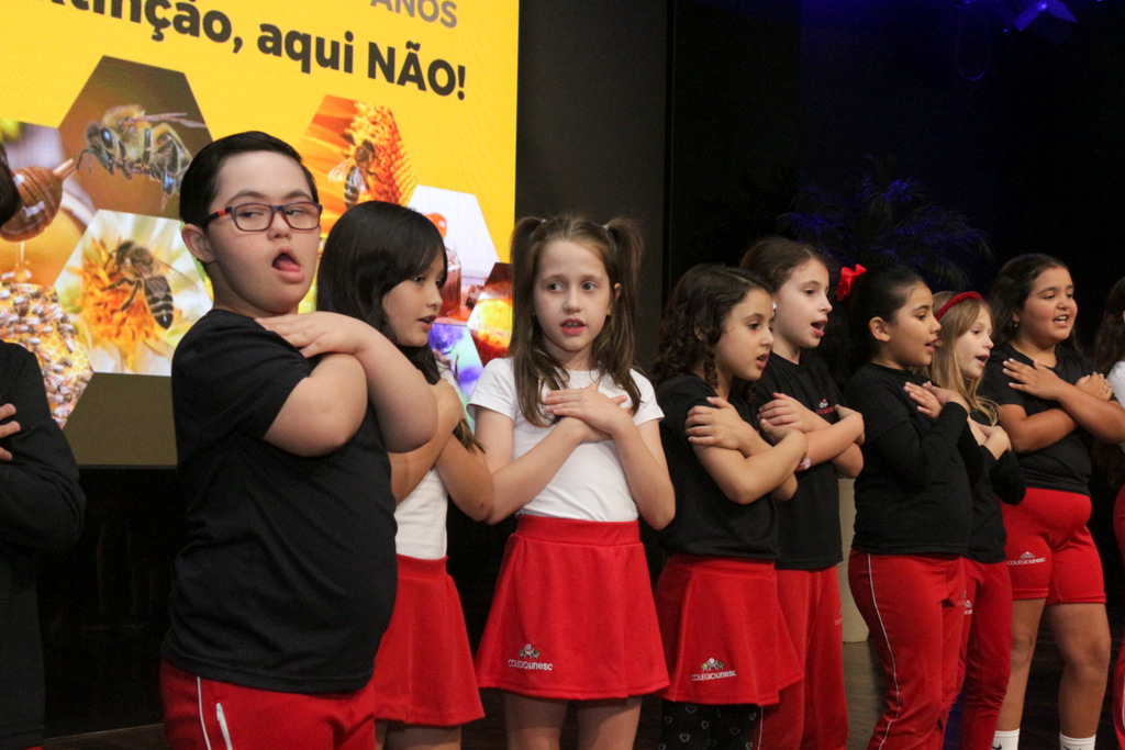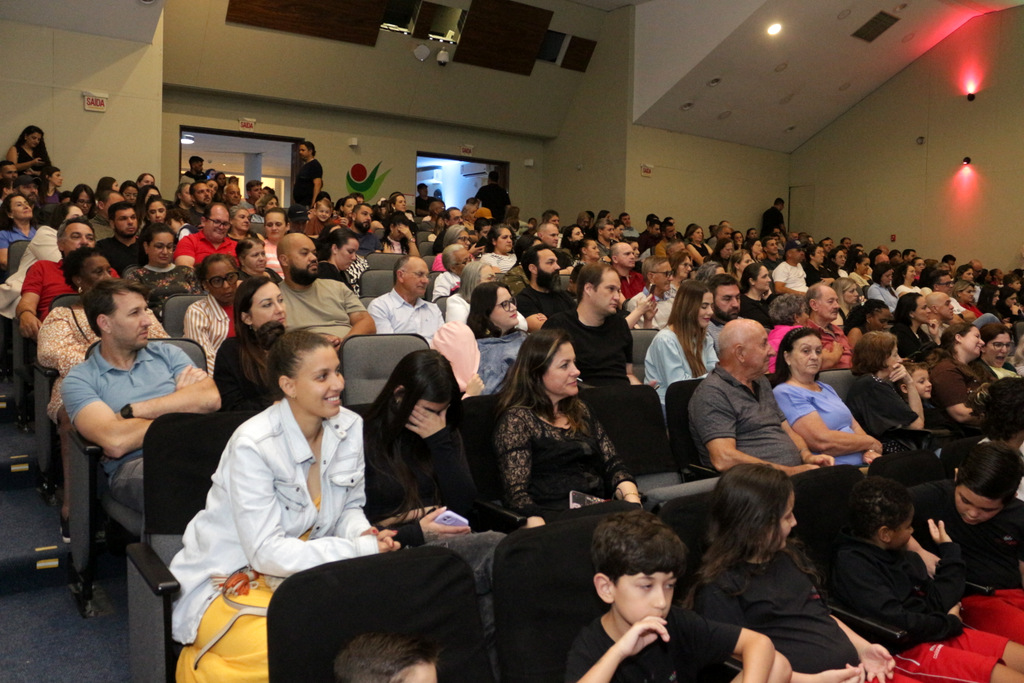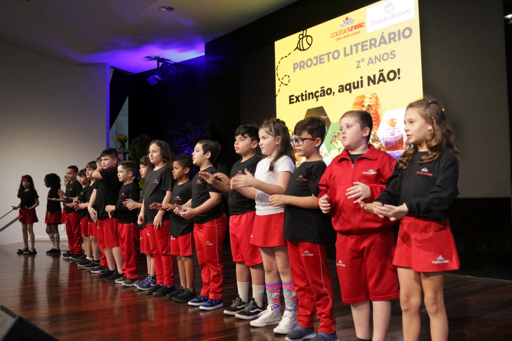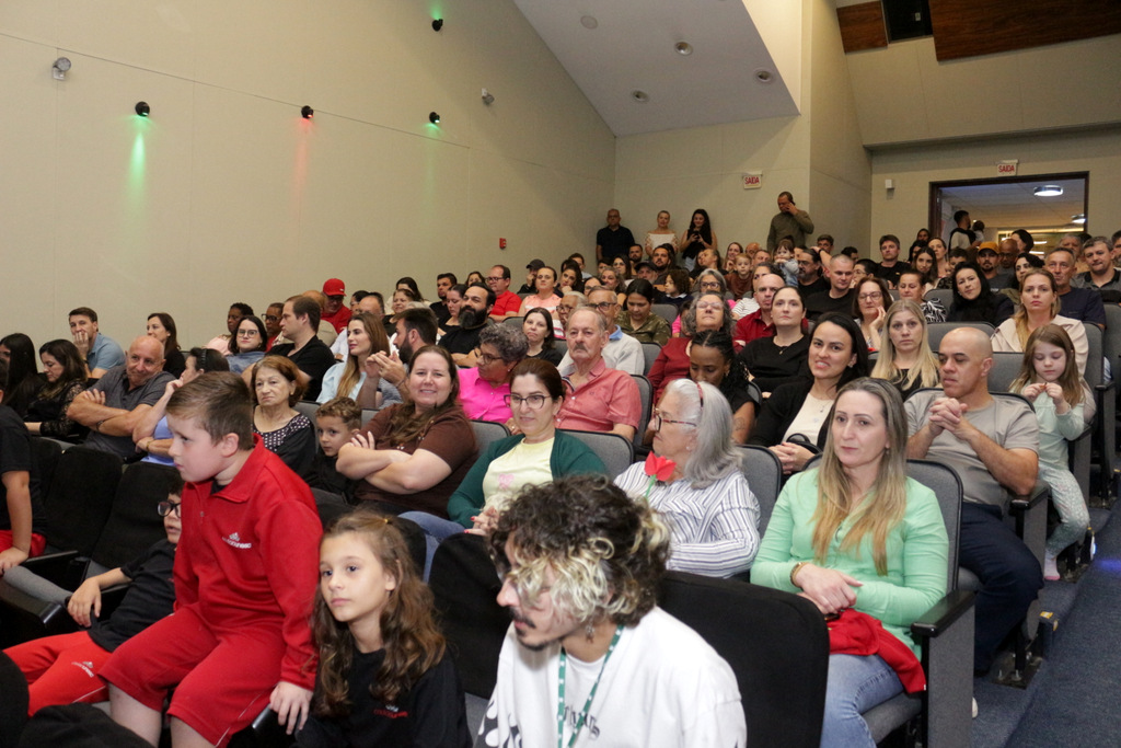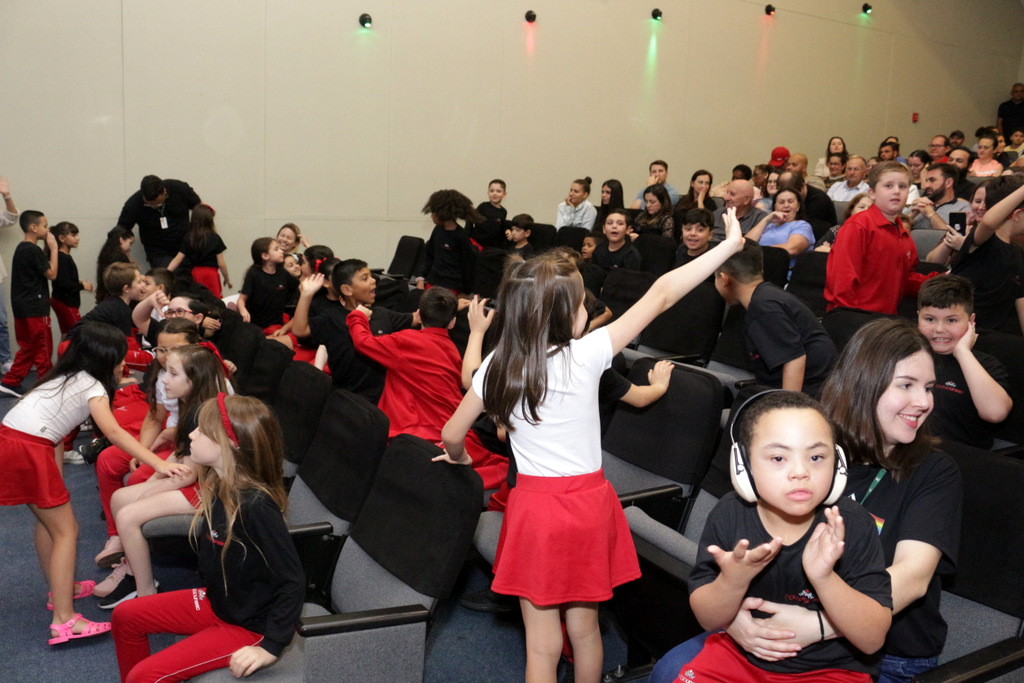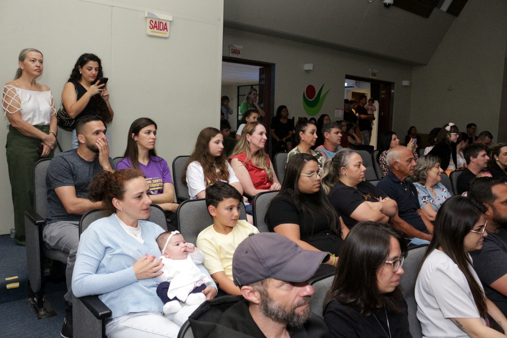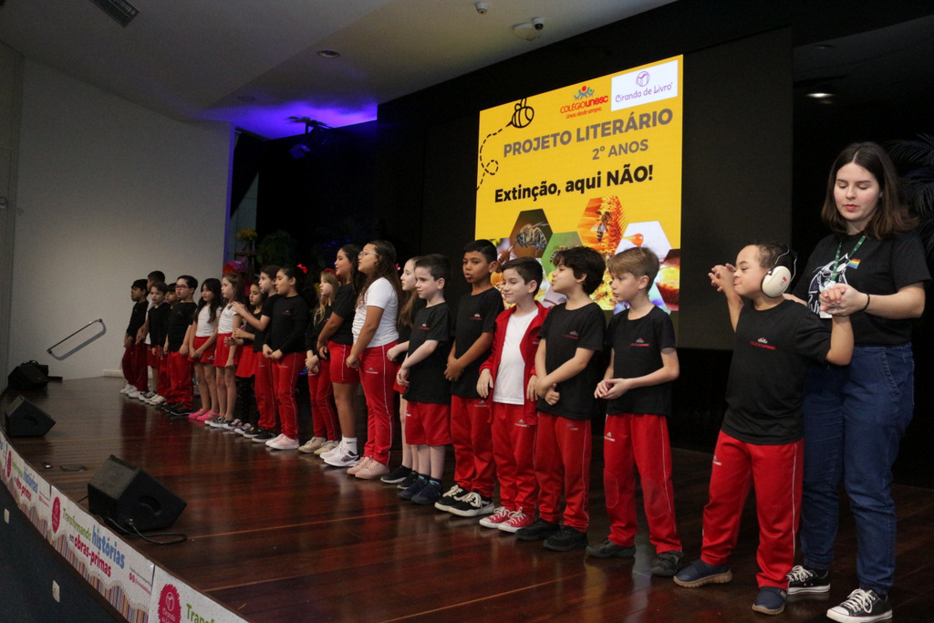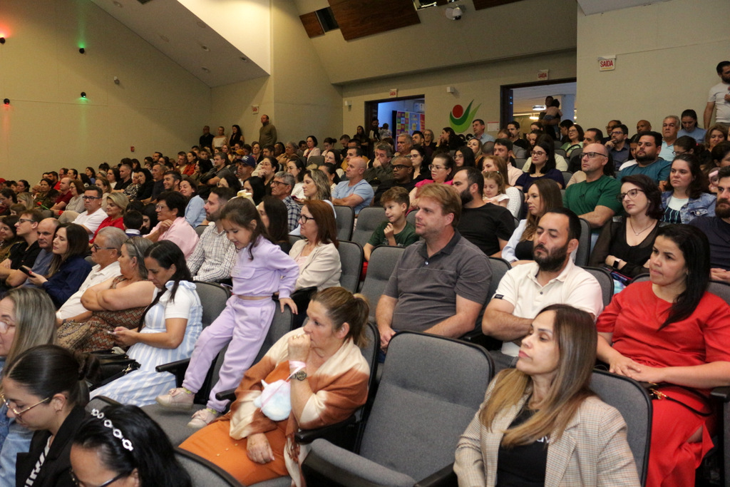 Alunos do 2 e 3º Anos Iniciais foram os protagonistas, nesta noite de quarta-feira (26/11), no palco do auditório Ruy Hülse (Fotos: Décio Batista/Agecom/Unesc)