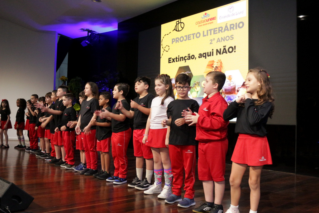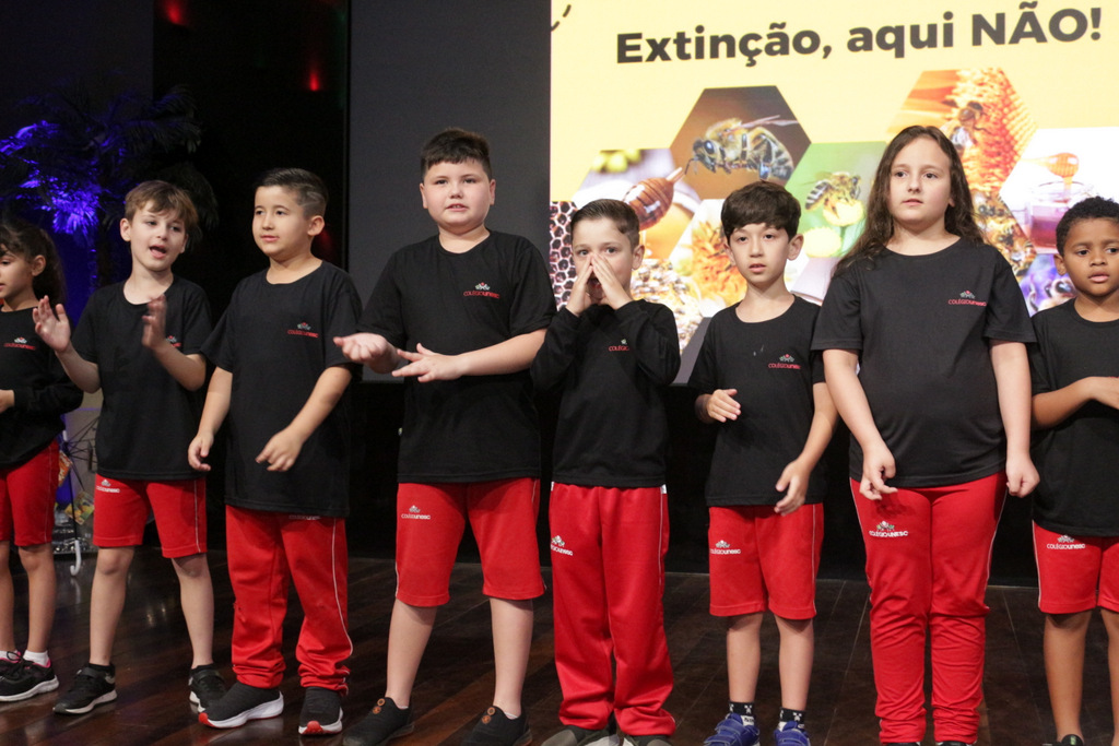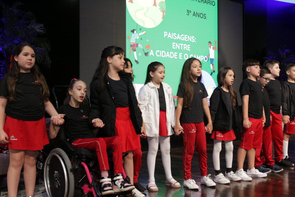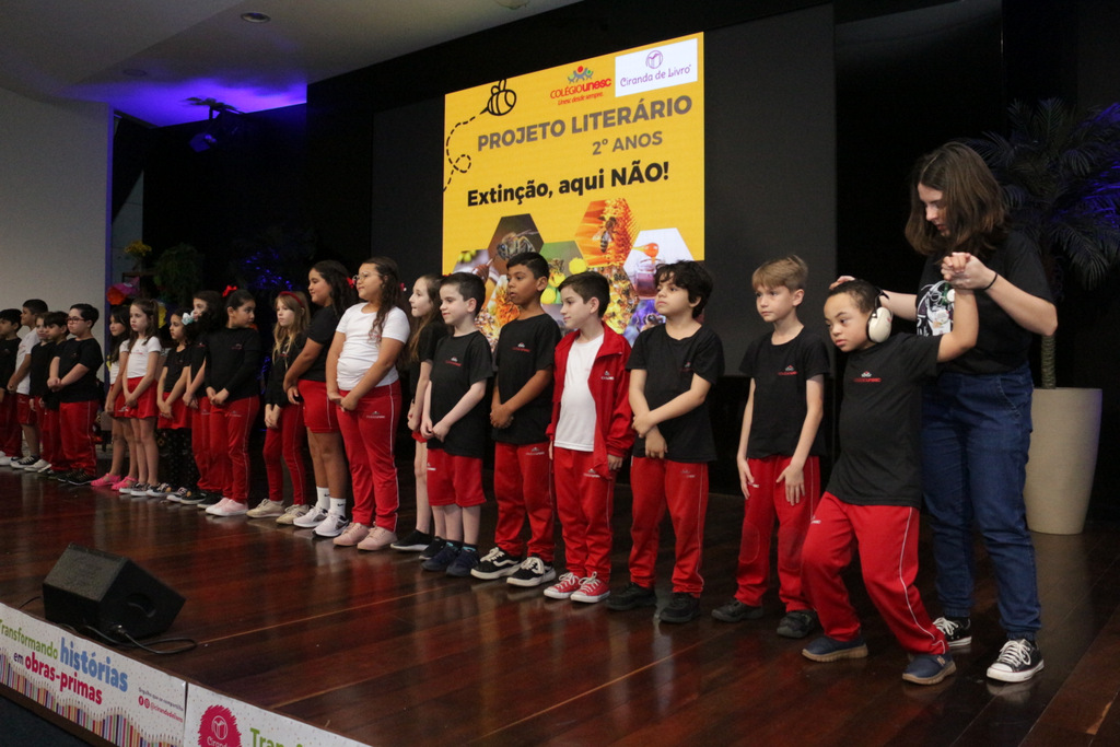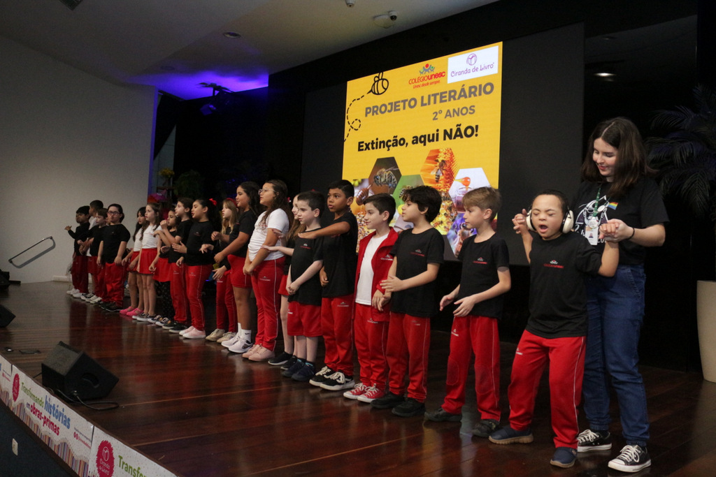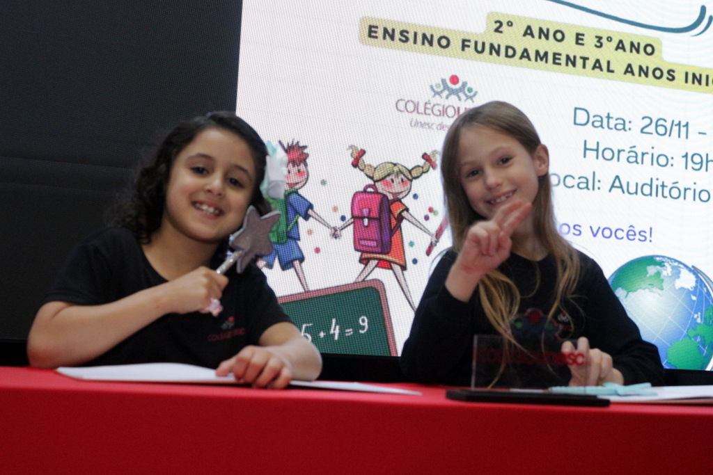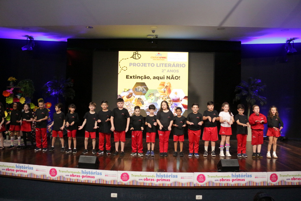 Alunos do 2 e 3º Anos Iniciais foram os protagonistas, nesta noite de quarta-feira (26/11), no palco do auditório Ruy Hülse (Fotos: Décio Batista/Agecom/Unesc)