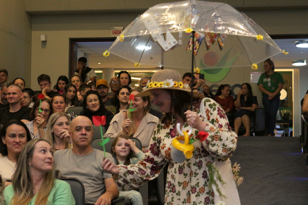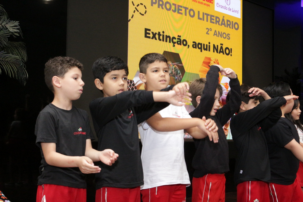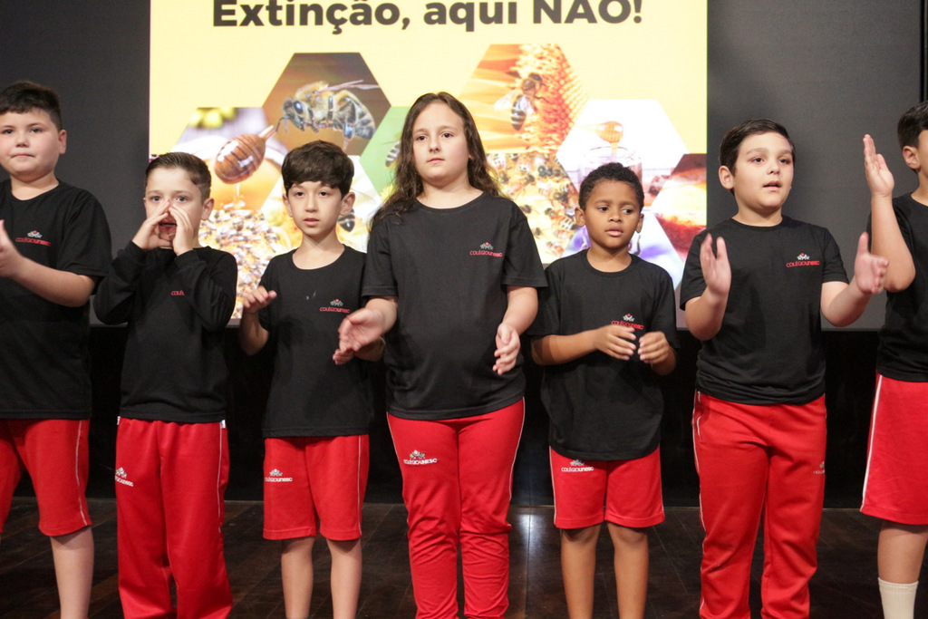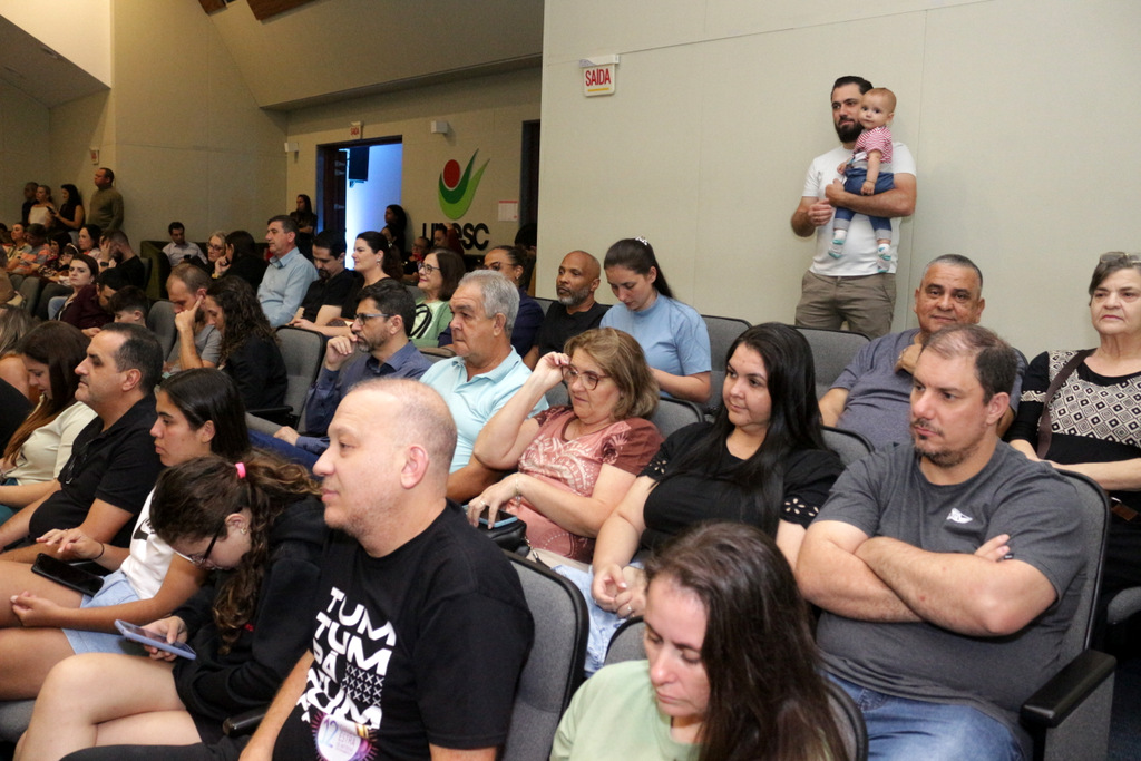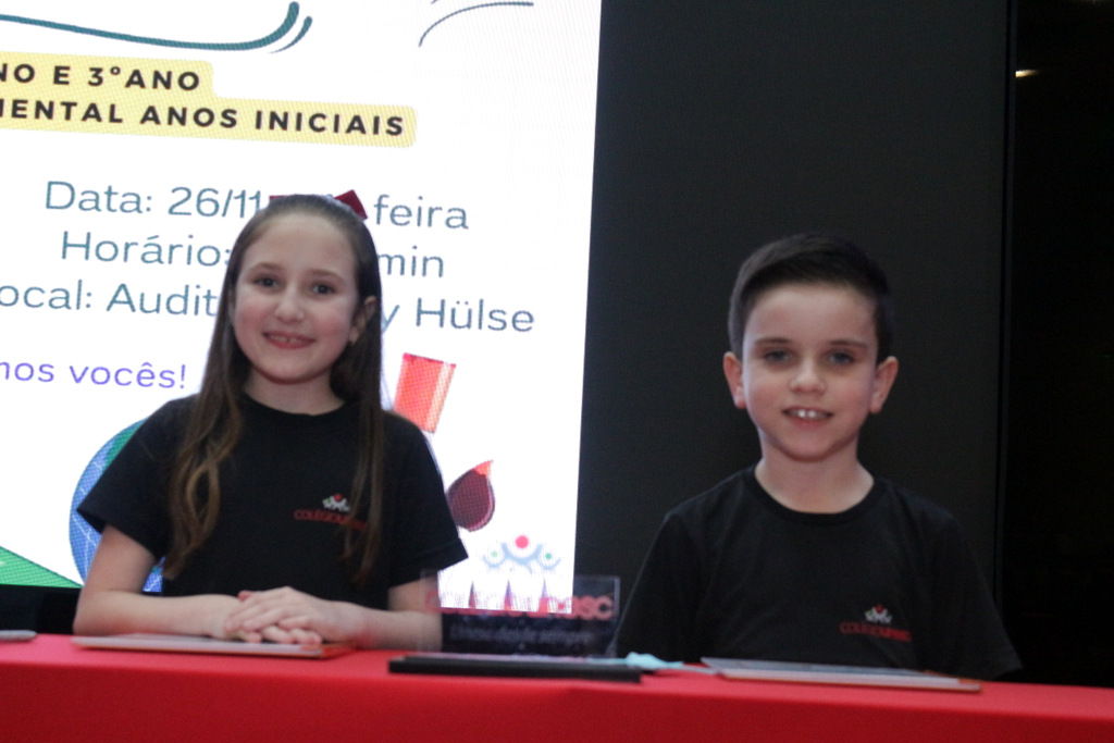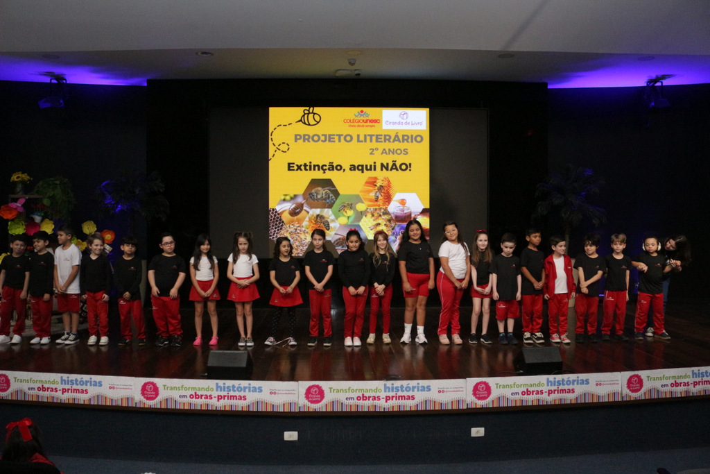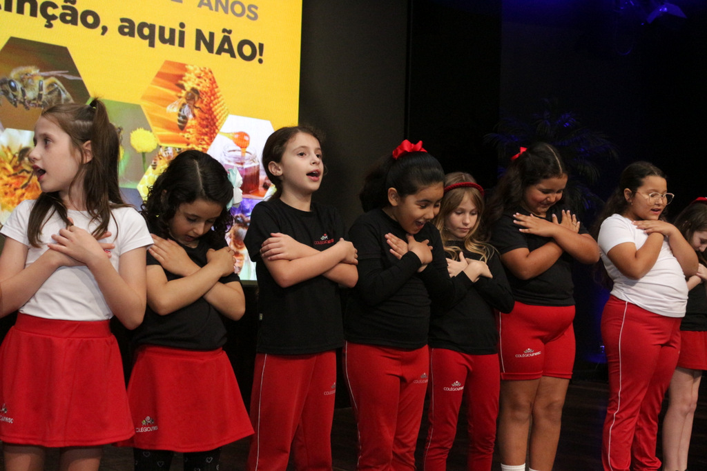 Alunos do 2 e 3º Anos Iniciais foram os protagonistas, nesta noite de quarta-feira (26/11), no palco do auditório Ruy Hülse (Fotos: Décio Batista/Agecom/Unesc)