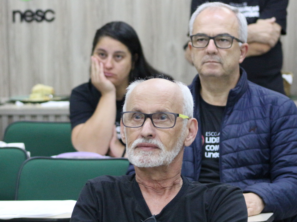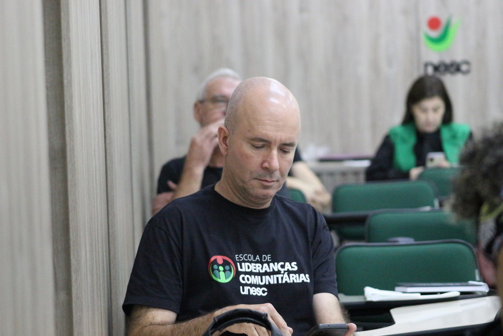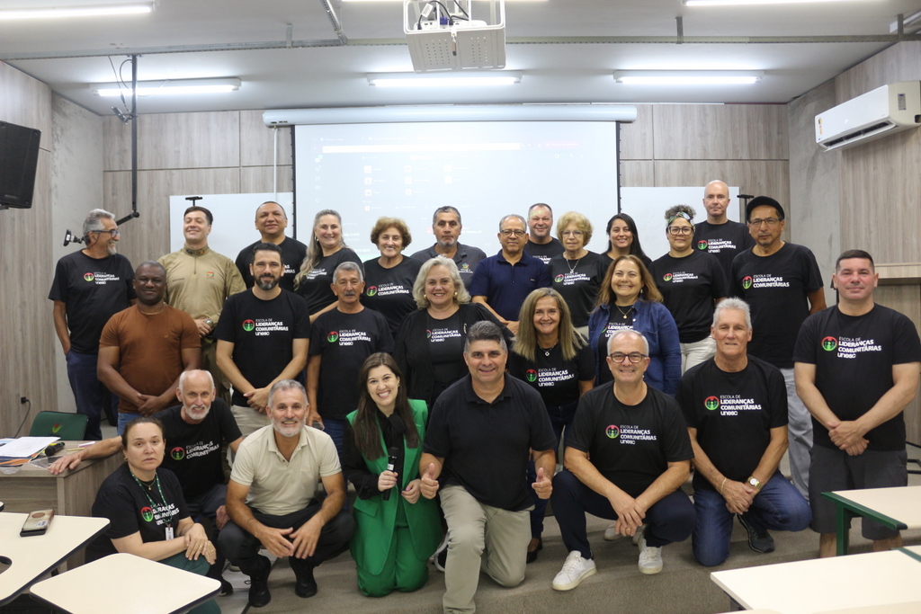 A Escola de Lideranças Comunitárias da Unesc realizou, neste sábado (29/11), o último encontro do ano antes da formatura, marcada para o dia 13 de dezembro, às 9h, no Auditório Ruy Hulse. Cerca de 50 líderes comunitários participam do programa, que ao longo de 2025 promoveu sete oficinas sobre temas essenciais para o desenvolvimento das comunidades.