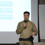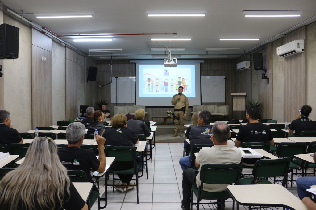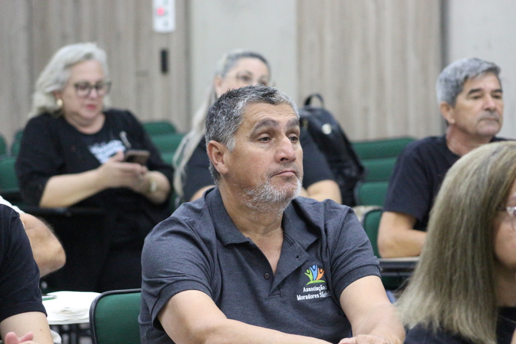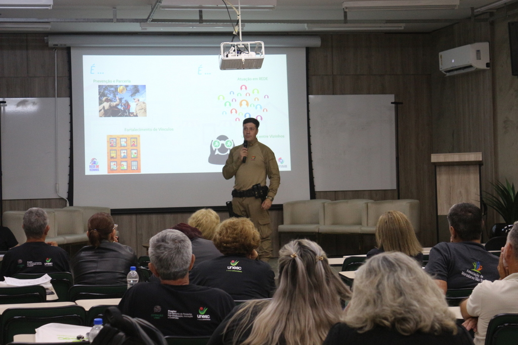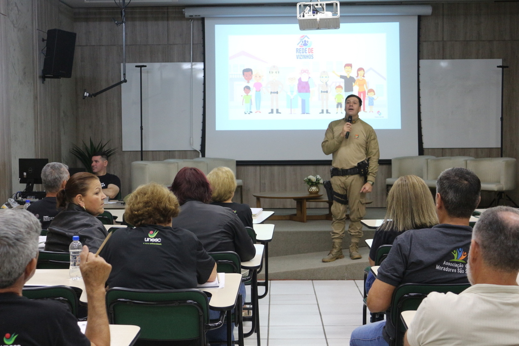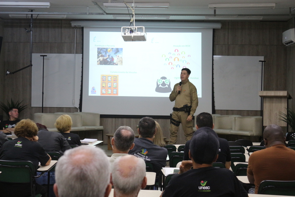 Na sequência, o sargento Machado, da Polícia Militar de Santa Catarina, apresentou a Rede de Vizinhos, projeto que fortalece a segurança nos bairros por meio da cooperação entre moradores e Polícia Militar. A iniciativa estimula a criação de grupos organizados que mantêm comunicação direta com a PM, compartilhando alertas, informações e registros de movimentações suspeitas. O objetivo é ampliar a vigilância natural, prevenir crimes e fortalecer a parceria entre comunidade e polícia.