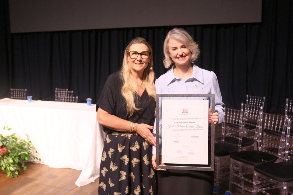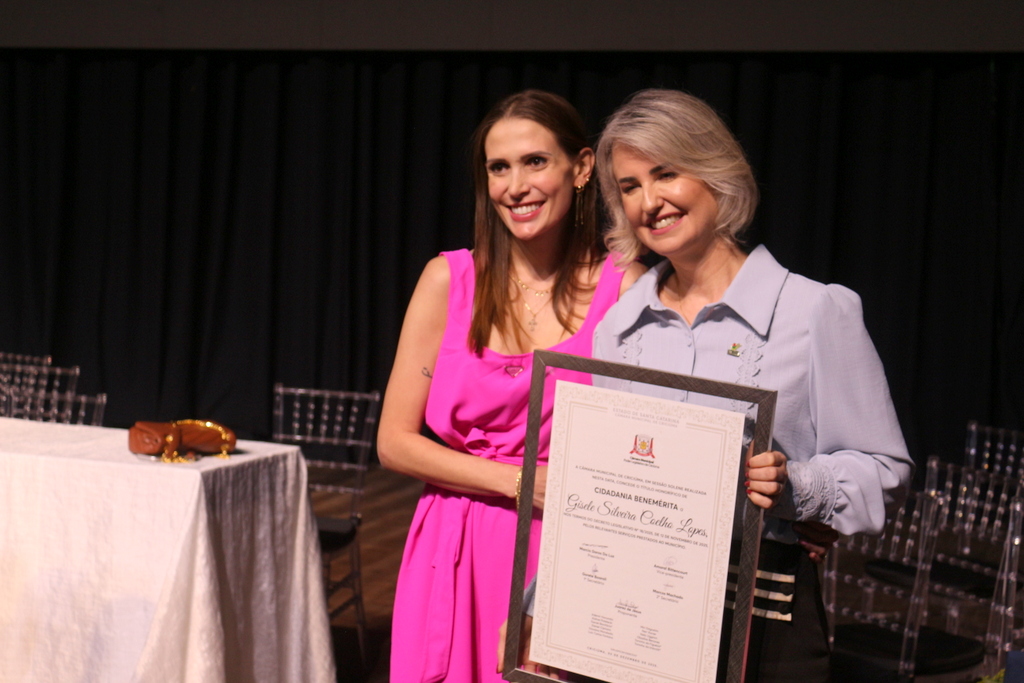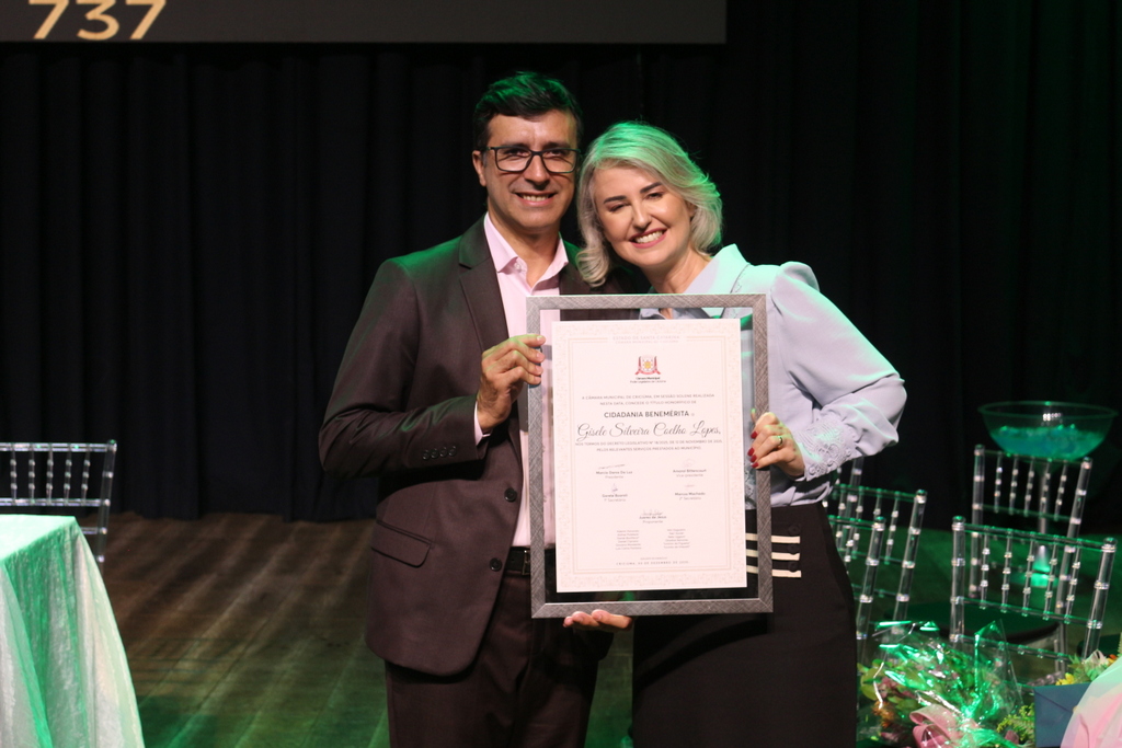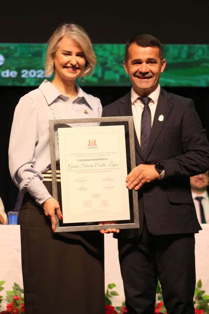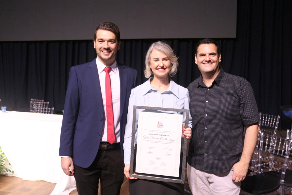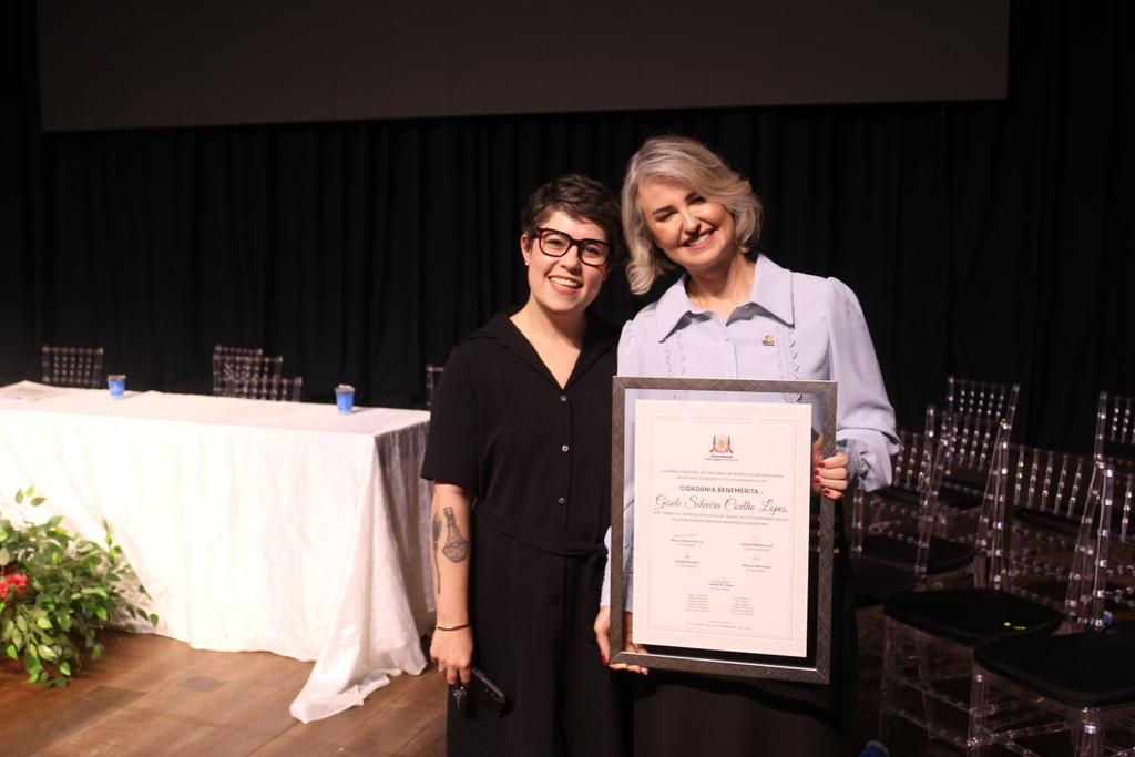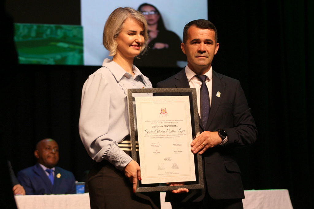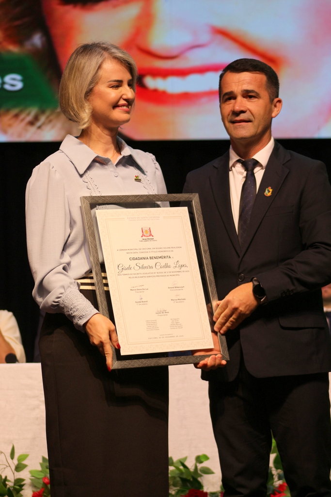“Recebo este título com gratidão e com um compromisso ainda maior de seguir contribuindo com uma Criciúma plural, inovadora e acolhedora”, complementou ela.