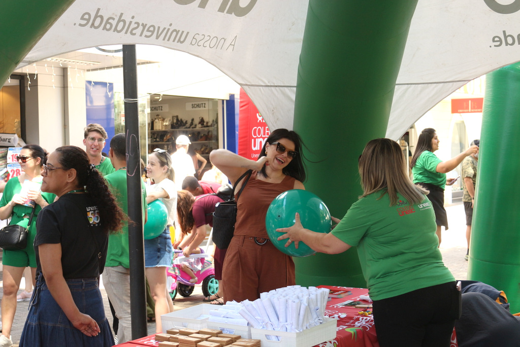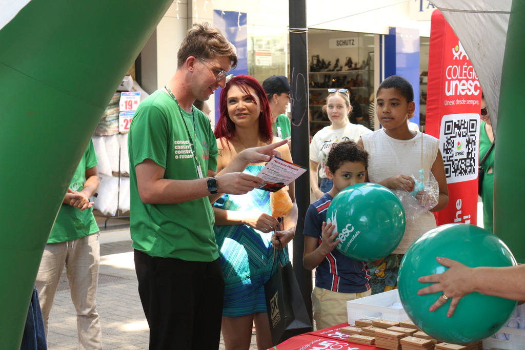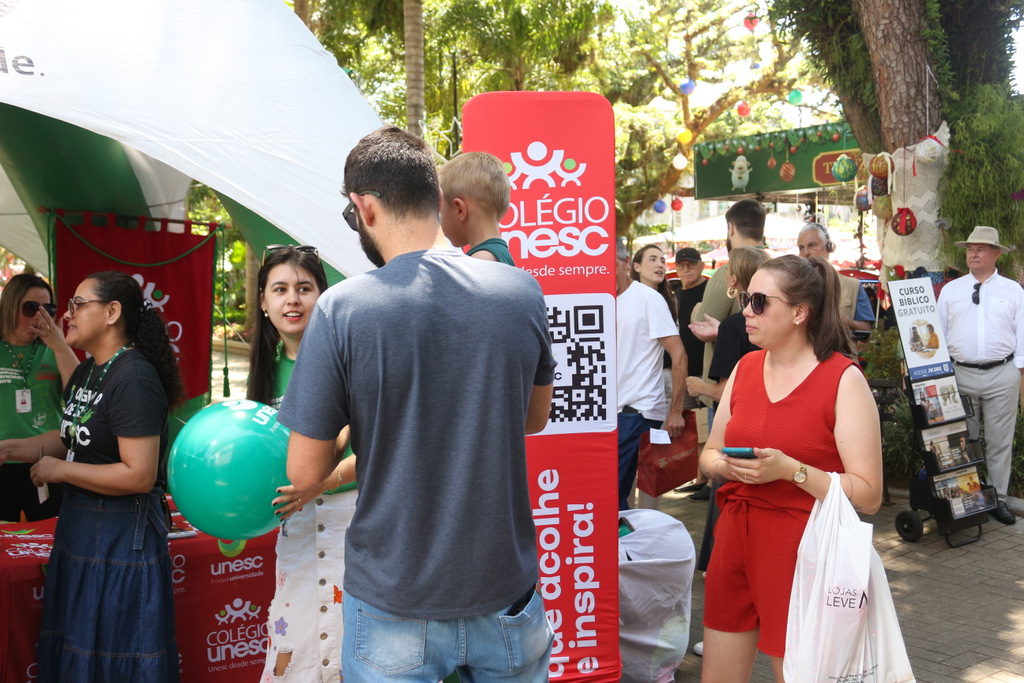 Na manhã deste sábado (13/12), o Colégio Unesc realizou uma ação especial na Praça Nereu Ramos, aproximando-se da comunidade e apresentando tudo o que a instituição oferece em termos de infraestrutura, proposta pedagógica e diferenciais educacionais. A iniciativa teve como objetivo mostrar, de forma prática e acessível, como o Colégio atua na formação integral dos estudantes, desde os primeiros anos até o Ensino Médio.