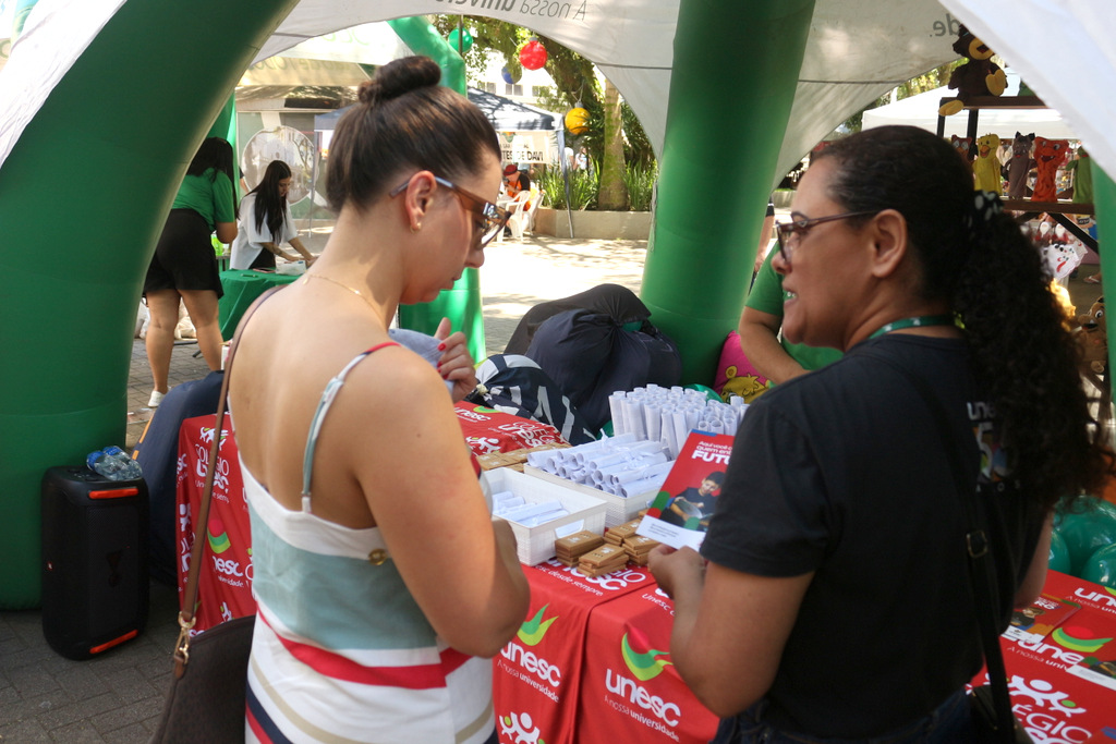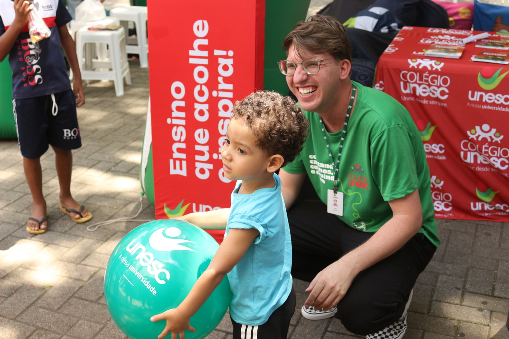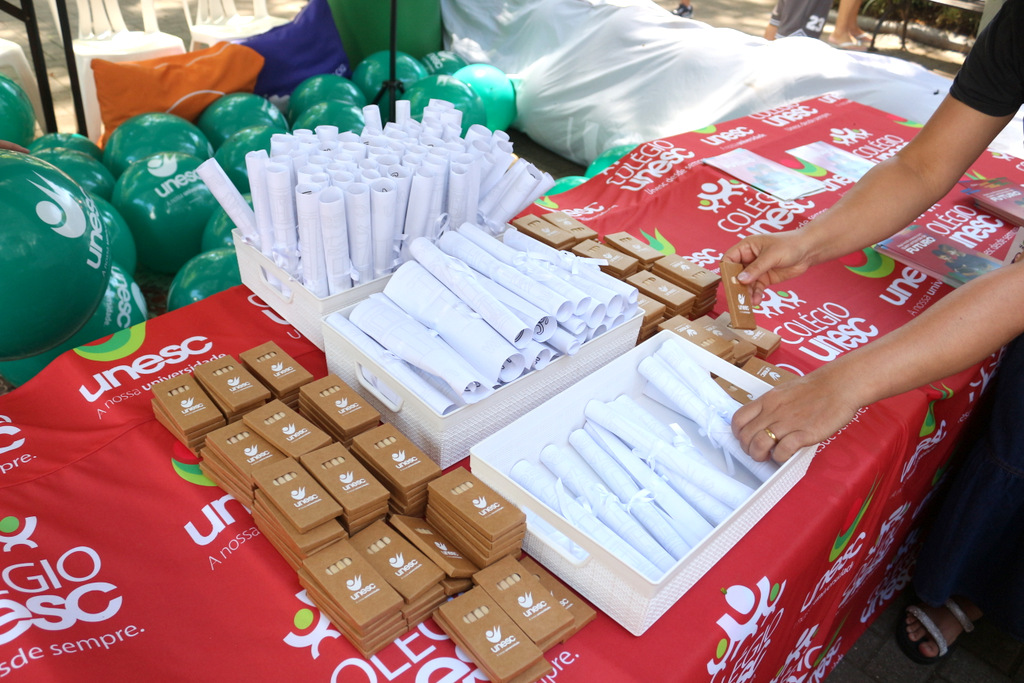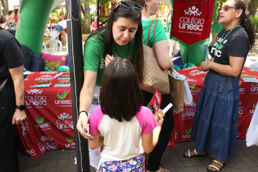 Durante a ação, famílias puderam conhecer mais sobre os espaços, os projetos desenvolvidos e a metodologia de ensino do Colégio Unesc, que valoriza o desenvolvimento acadêmico, social e humano dos alunos. Parte da equipe esclareceu dúvidas e compartilhou informações sobre o dia a dia escolar e as oportunidades oferecidas pela instituição. As crianças ganharam bolas, desenhos e lápis para colorir.