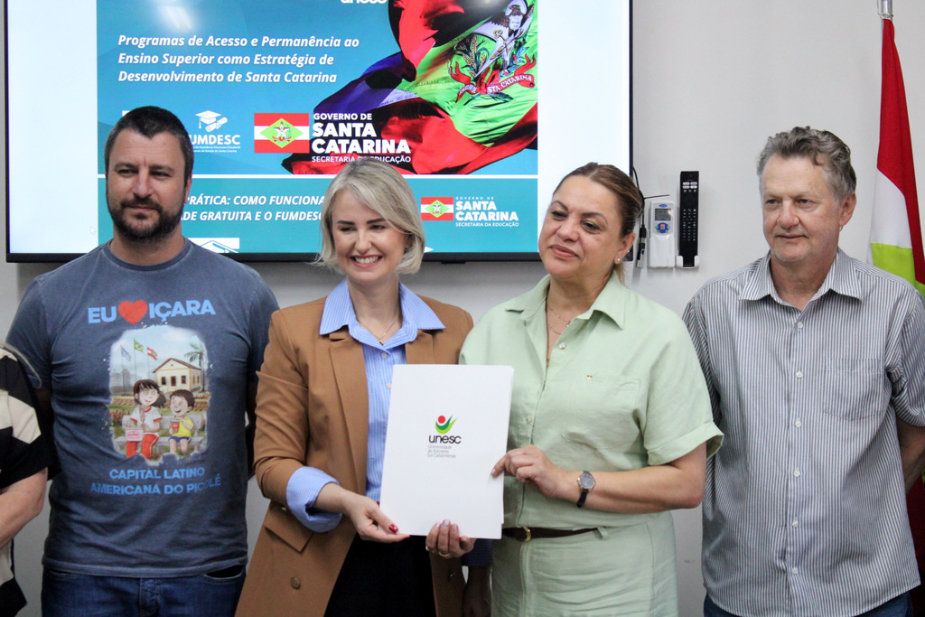 No ato da assinatura do termo a prefeita de Içara, Dalvania Cardoso, ressaltou a relevância do acordo para o município. “Firmamos este termo para que Içara possa receber os profissionais egressos da Unesc beneficiados pelo Universidade Gratuita. A partir do próximo ano, esses profissionais poderão desenvolver projetos, prestar serviços e contribuir diretamente com os programas municipais, fortalecendo ações em benefício da comunidade”, afirmou.
