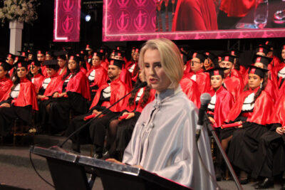 Em seu pronunciamento, Gisele destacou que ao longo da formação os novos graduados aprenderam que aplicar a lei exige técnica, mas fazer justiça exige consciência ética. “Exige escuta. Exige empatia. Exige coragem para defender direitos mesmo quando isso não é confortável. exige lembrar, todos os dias, que o direito não existe para servir ao poder, mas para proteger pessoas”, salientou.