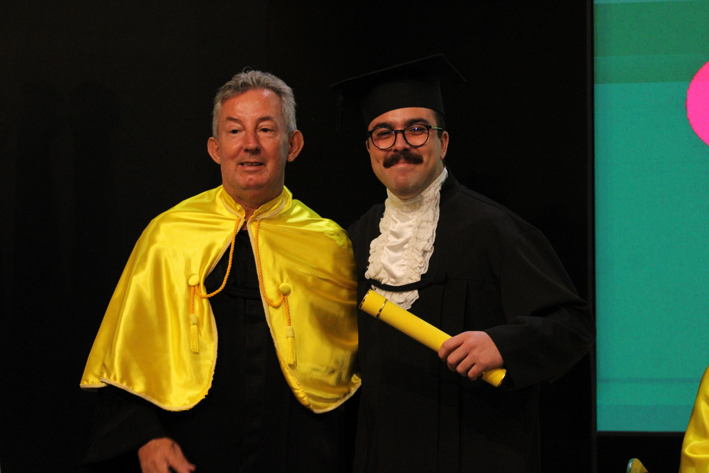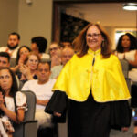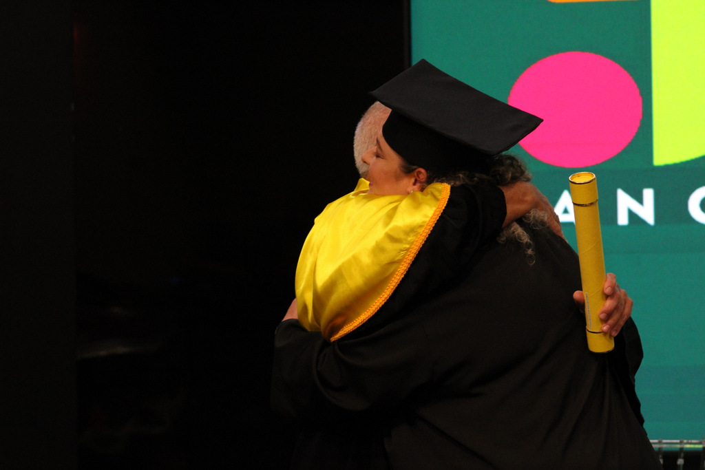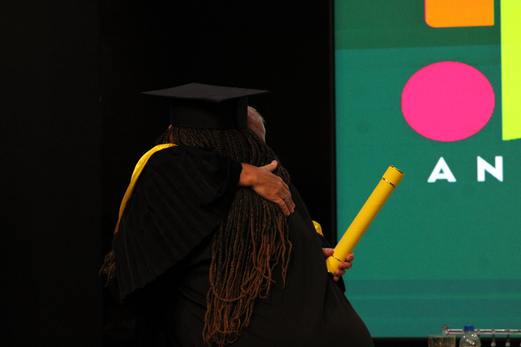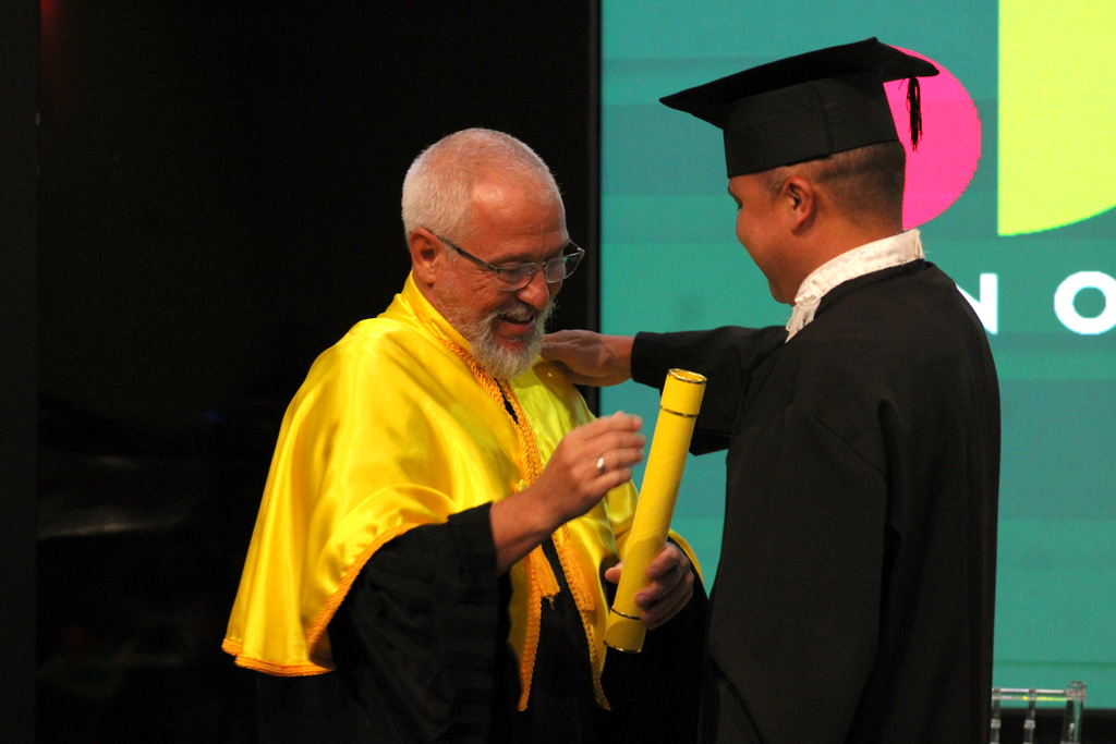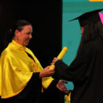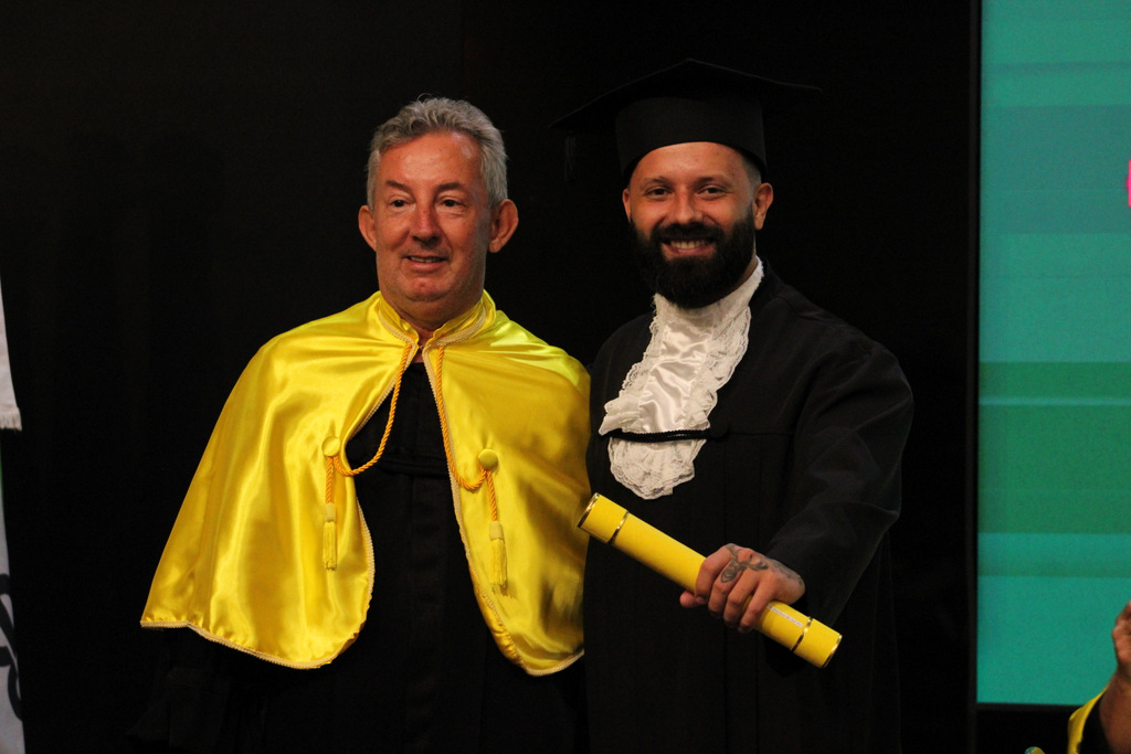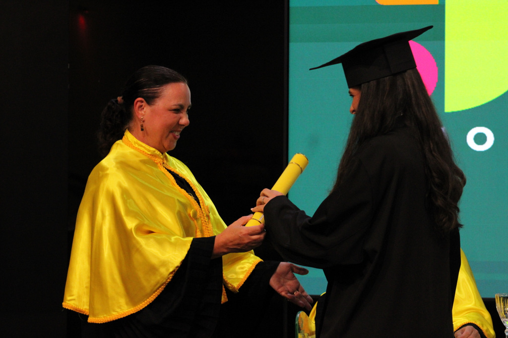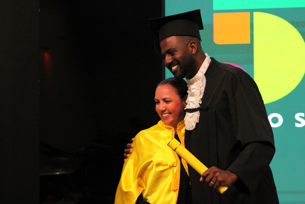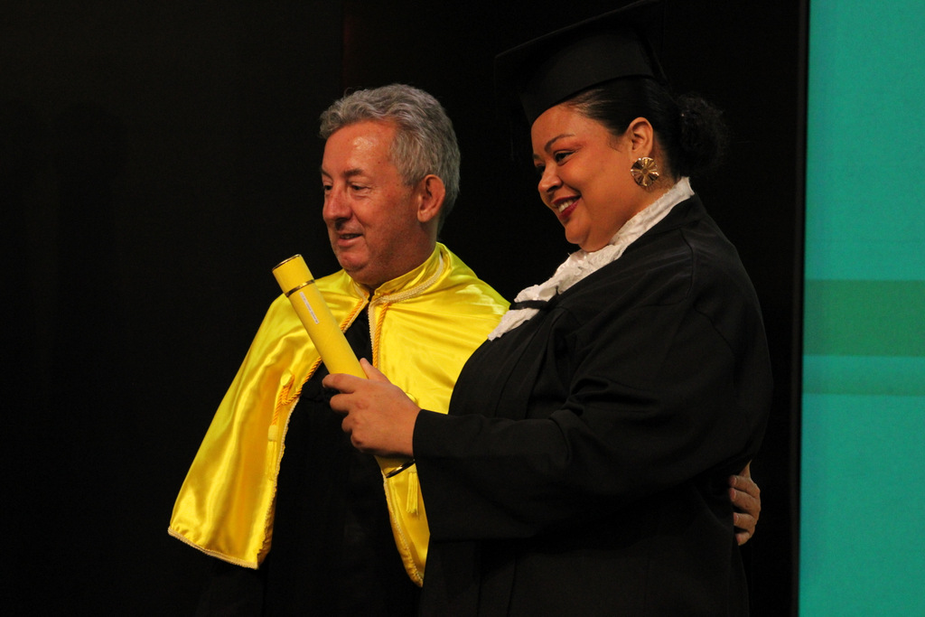 Após a outorga coletiva de grau, foi realizada a imposição dos capelos pela pró-reitora e a entrega individual dos certificados pelos coordenadores de cada curso.