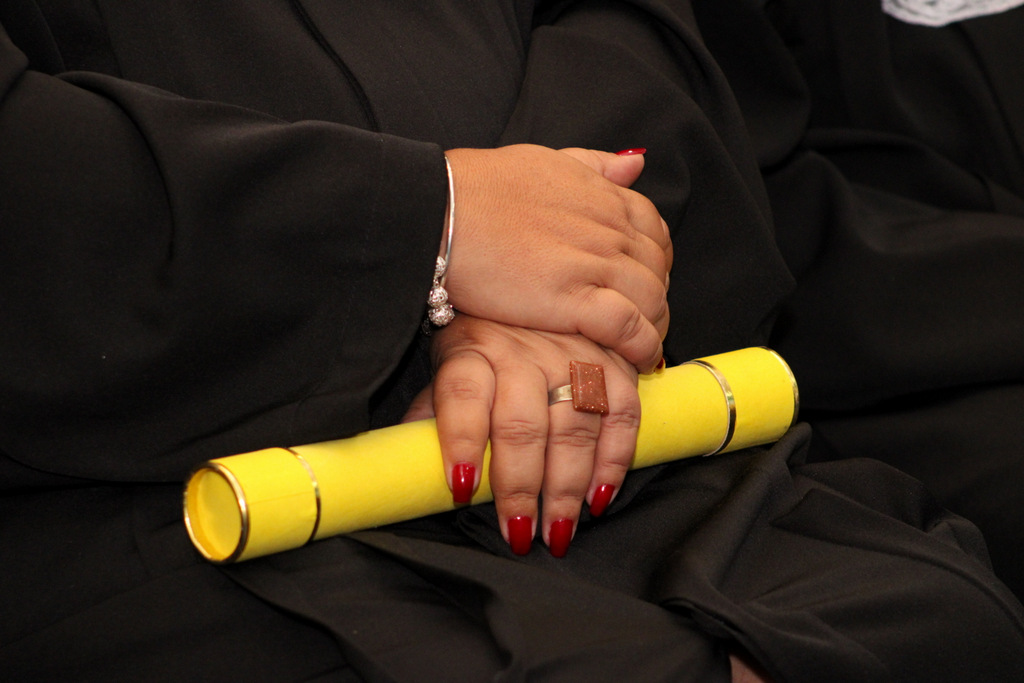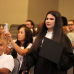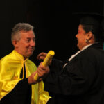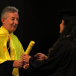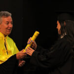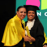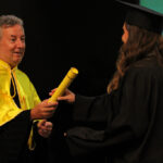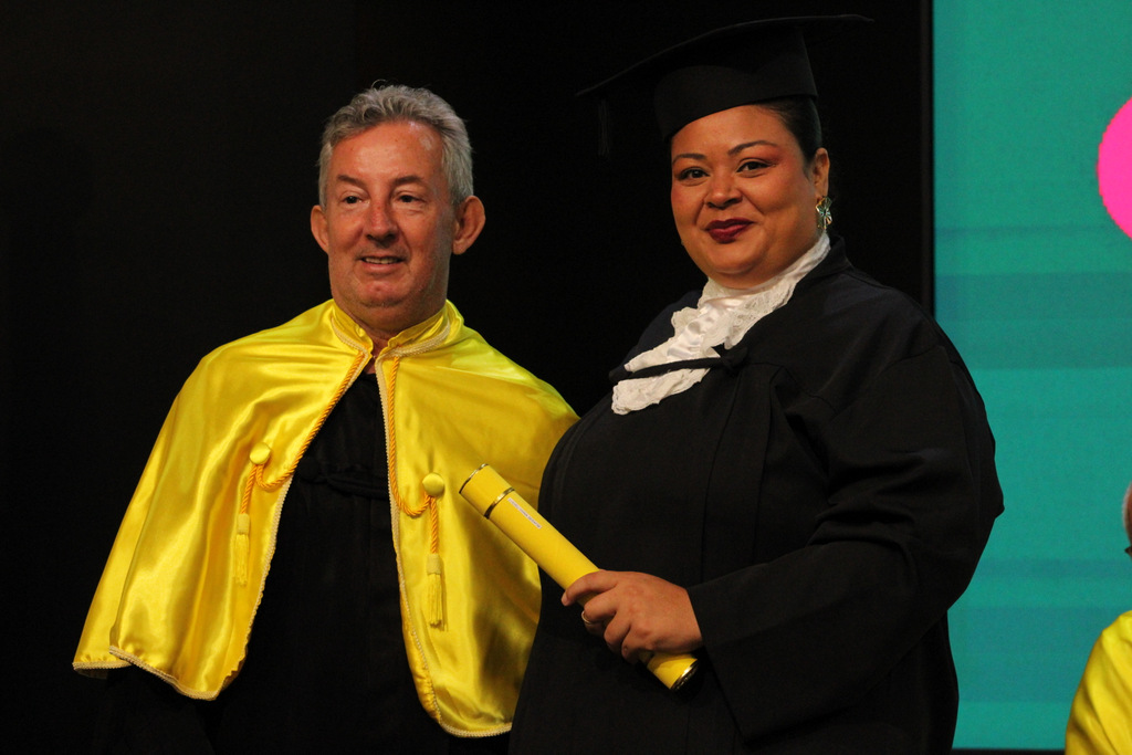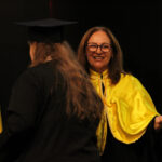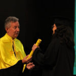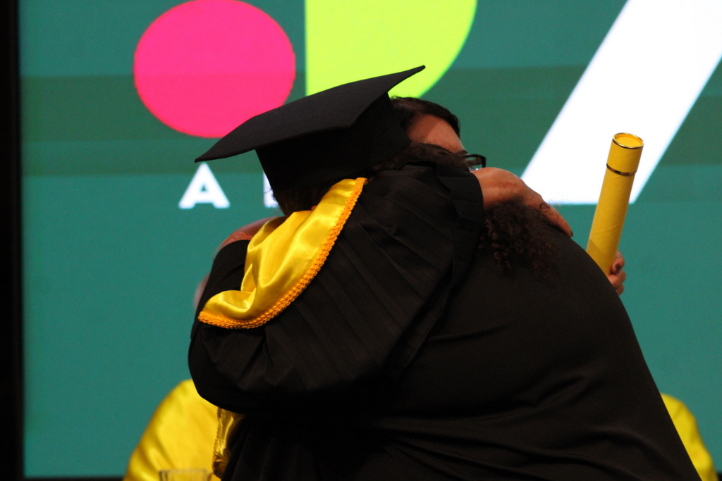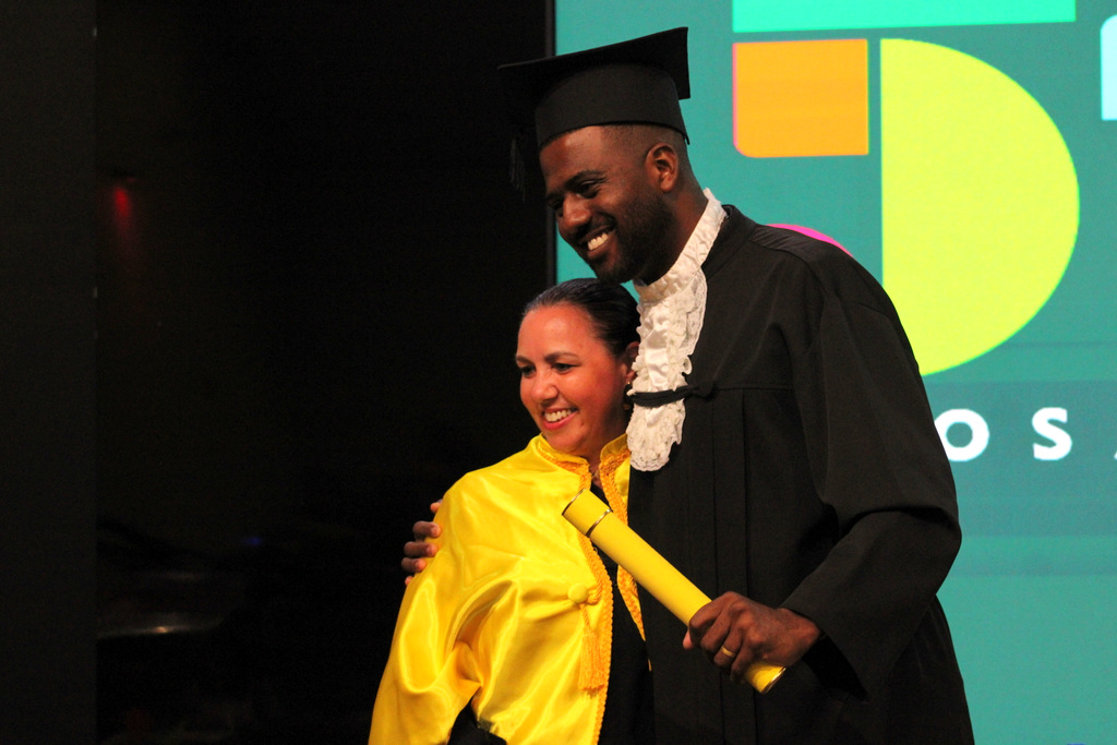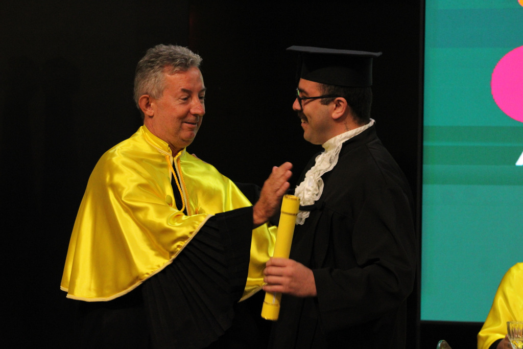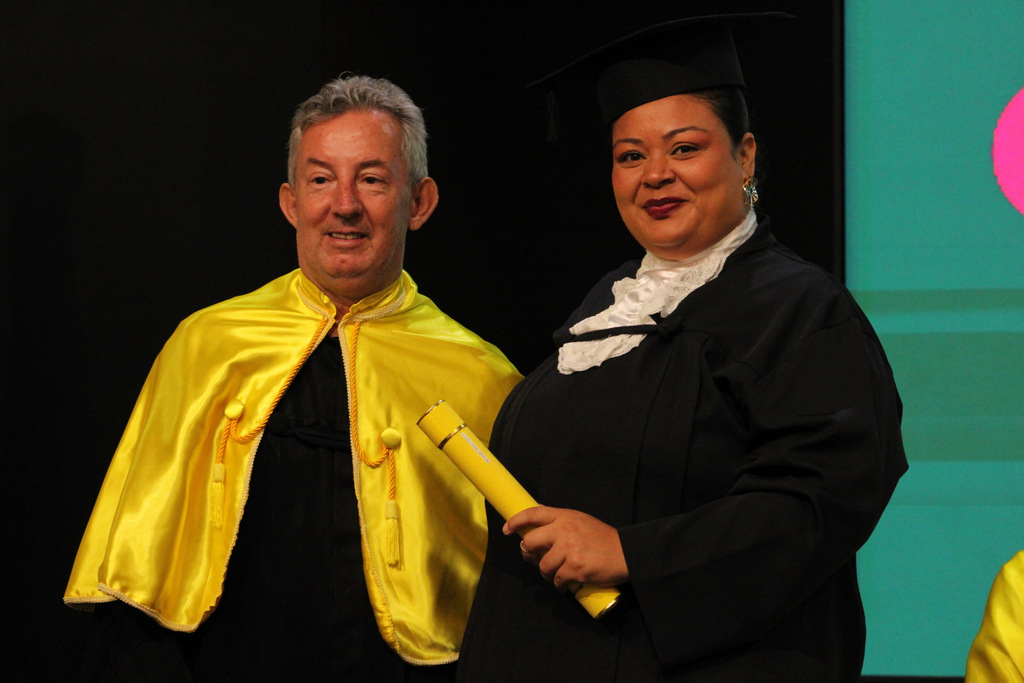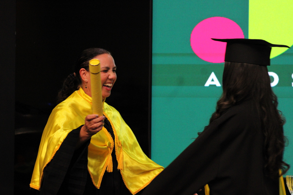 Após a outorga coletiva de grau, foi realizada a imposição dos capelos pela pró-reitora e a entrega individual dos certificados pelos coordenadores de cada curso.