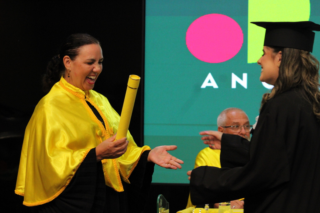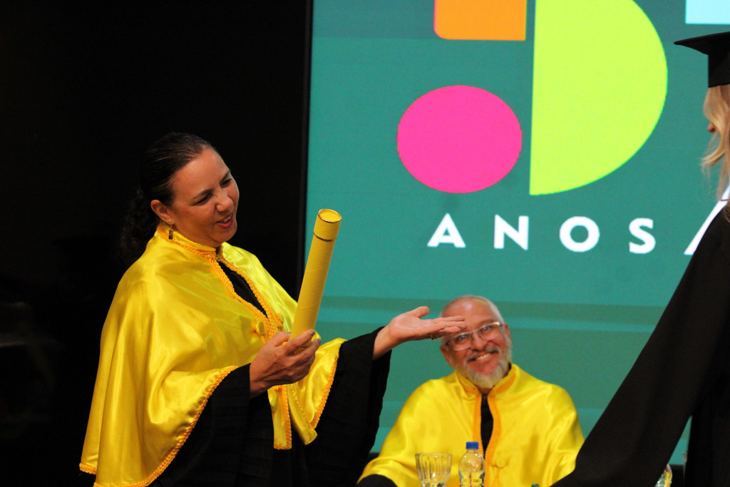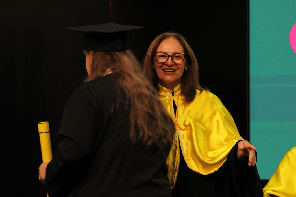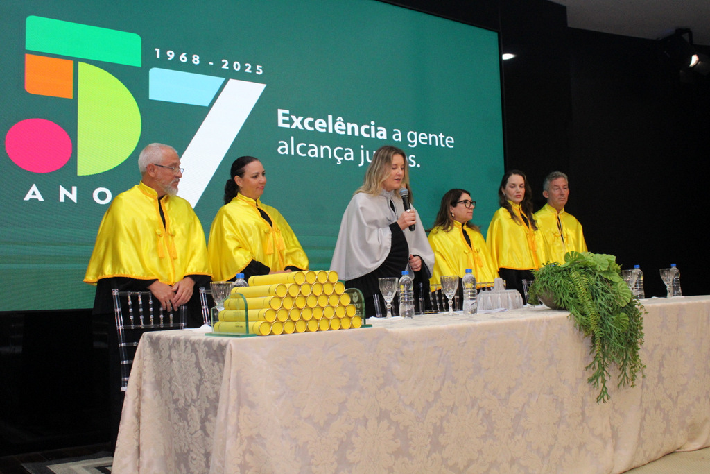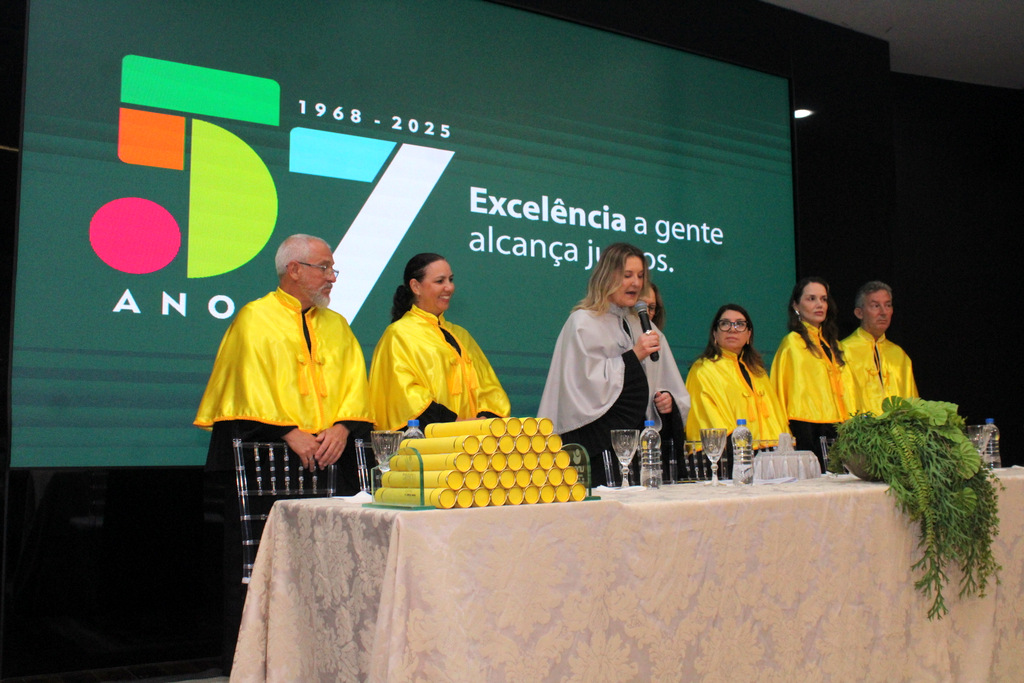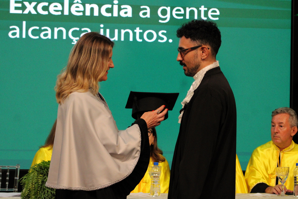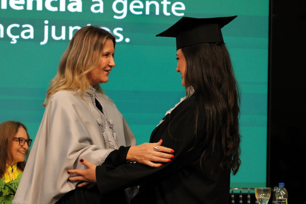 Na visão da pró-reitora Graziela, a noite é histórica para cada um dos presentes, mas, especialmente, para os mais novos graduados. “Vocês não estão apenas concluindo uma graduação, mas entrando em uma nova fase de suas vidas; uma etapa repleta de possibilidades, desafios e conquistas. Deixaram para trás a condição de acadêmicos para se transformarem em profissionais formados, aptos a desempenhar um papel transformador por onde quer que atuem”, destacou em seu pronunciamento.