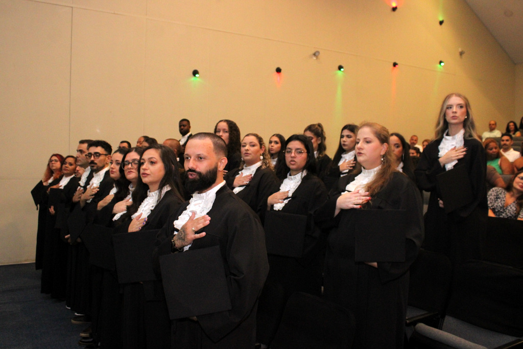 O ato oficial teve início com o juramento dos novos profissionais. A graduanda Francine Cardoso conduziu o juramento para os cursos de Bacharelado e Licenciatura em História, enquanto Isabely Gonçalves Silva liderou o compromisso solene dos licenciandos, reafirmando o dever ético com o ensino e a sociedade.