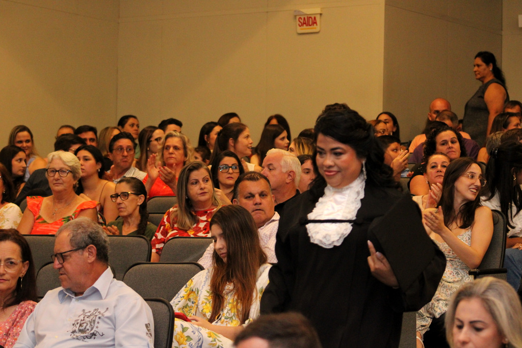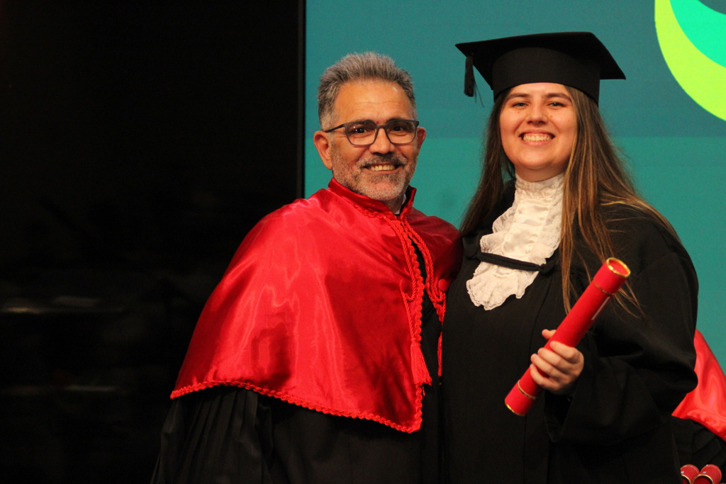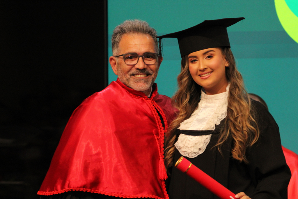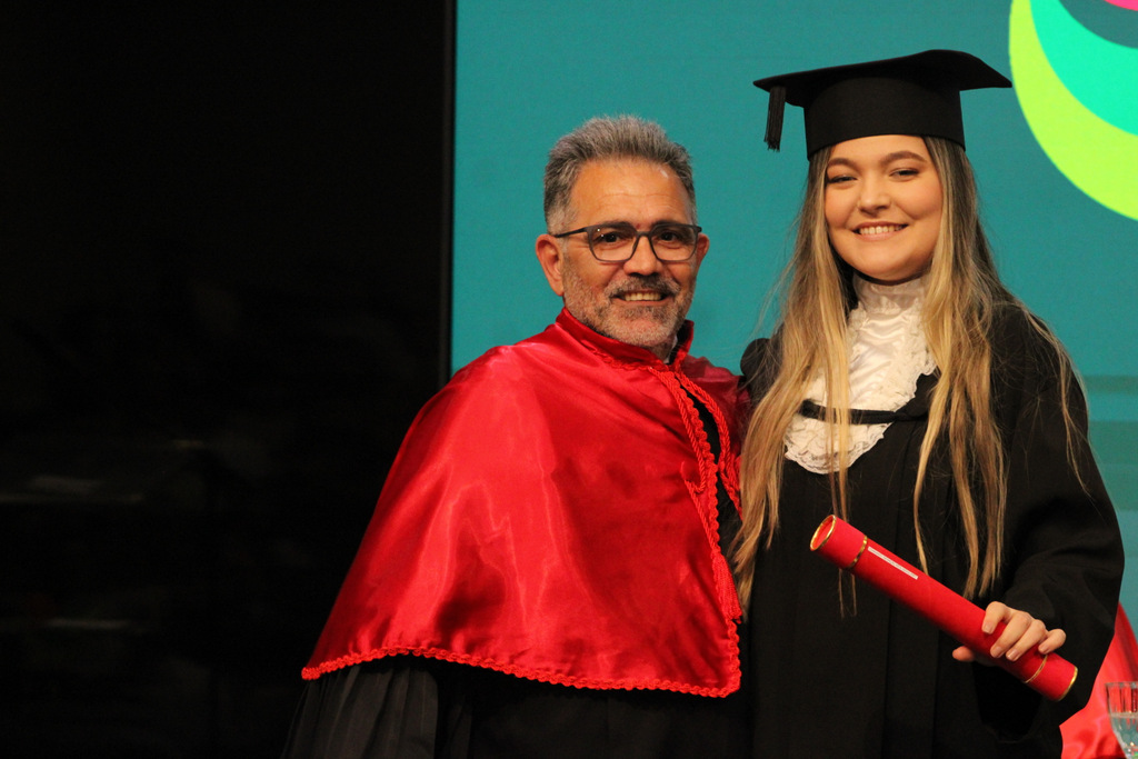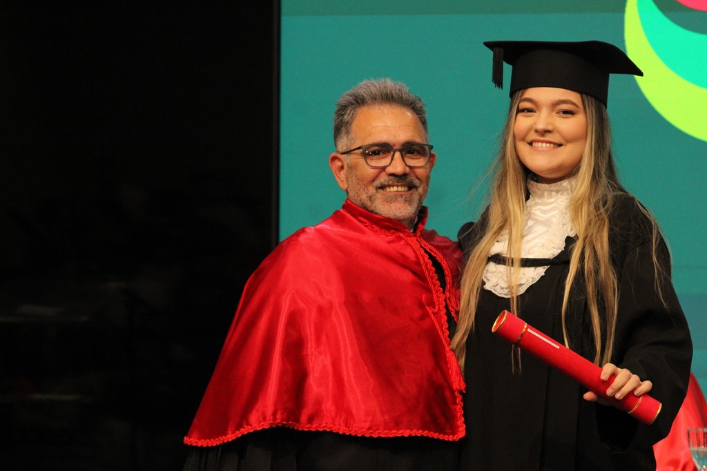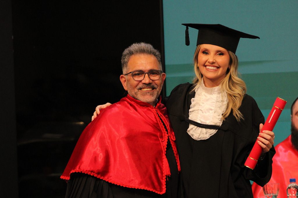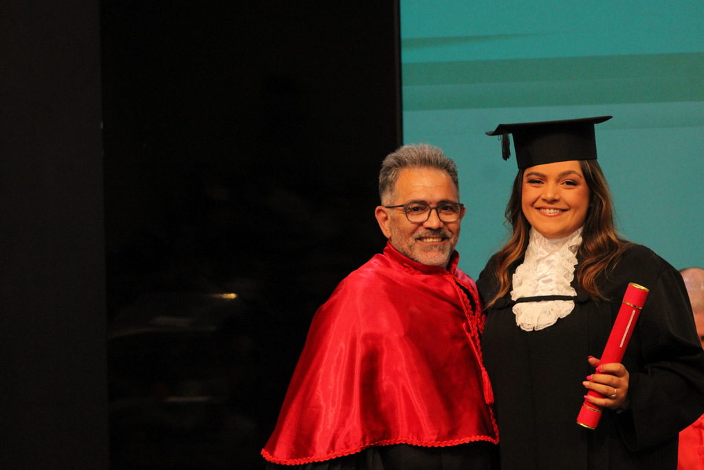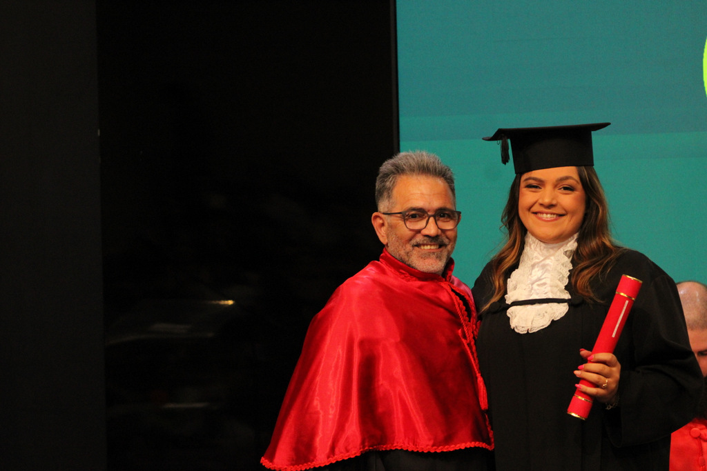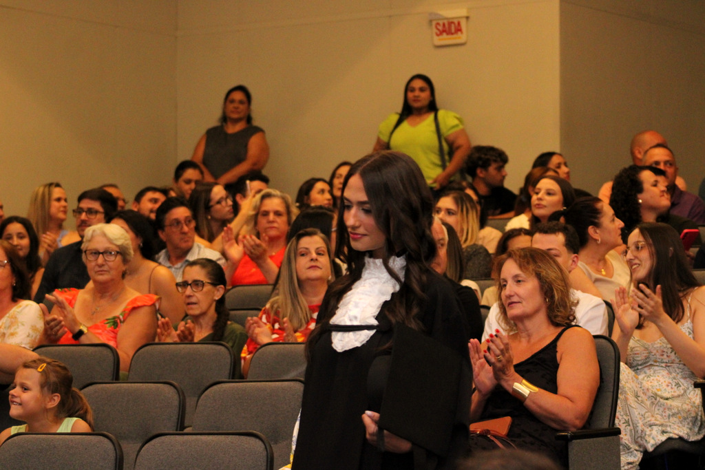 “Meus queridos formandos, nesta noite vocês não estão apenas concluindo uma graduação, mas entrando em uma nova fase de suas vidas, uma etapa repleta de possibilidades, desafios e conquistas. Deixaram para trás a condição de acadêmicos para se transformarem em profissionais aptos a desempenhar um papel transformador por onde quer que atuem. Vocês são agora mais do que especialistas: são líderes, gestores, economistas e administradores; acima de tudo, são agentes de mudança. Todos venceram desafios que exigiram mais do que conhecimento técnico; foi necessário um equilíbrio entre disciplina, empenho e, às vezes, até renúncia. Por isso, recebam hoje não apenas um diploma, mas também o reconhecimento de todo o esforço que investiram para alcançarem este dia”, parabenizou a pró-reitora.