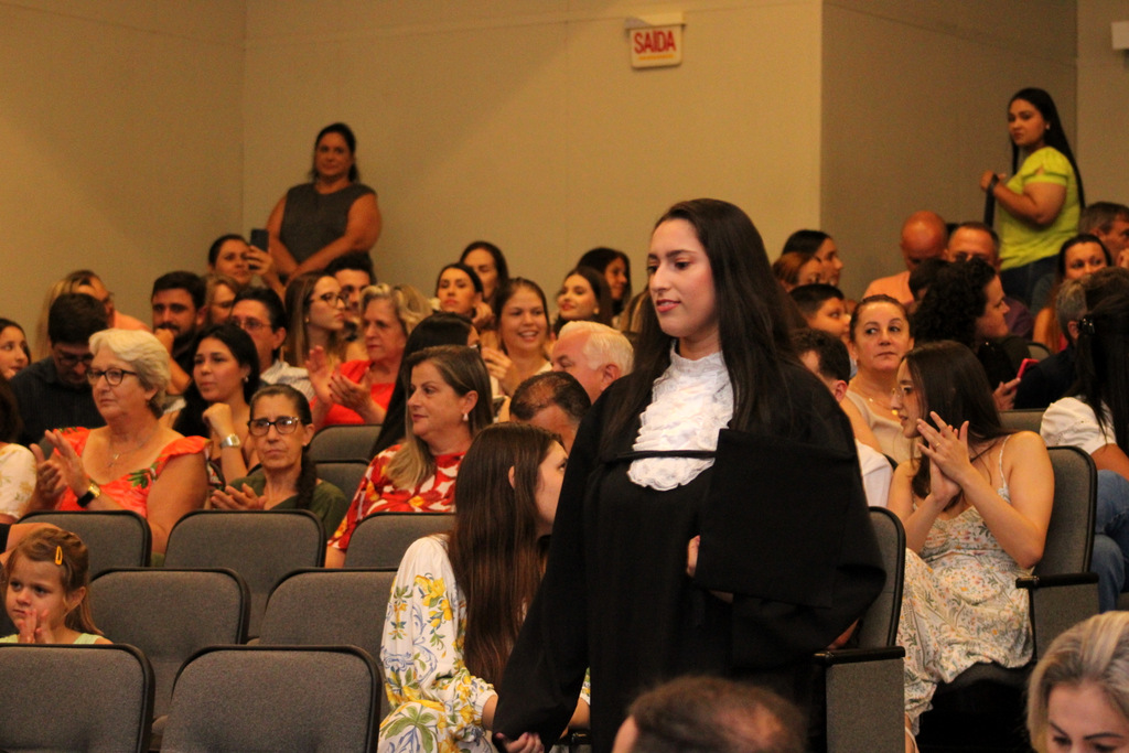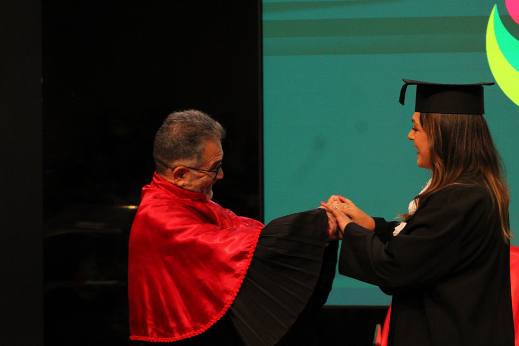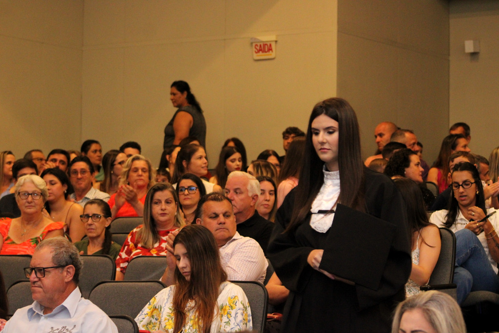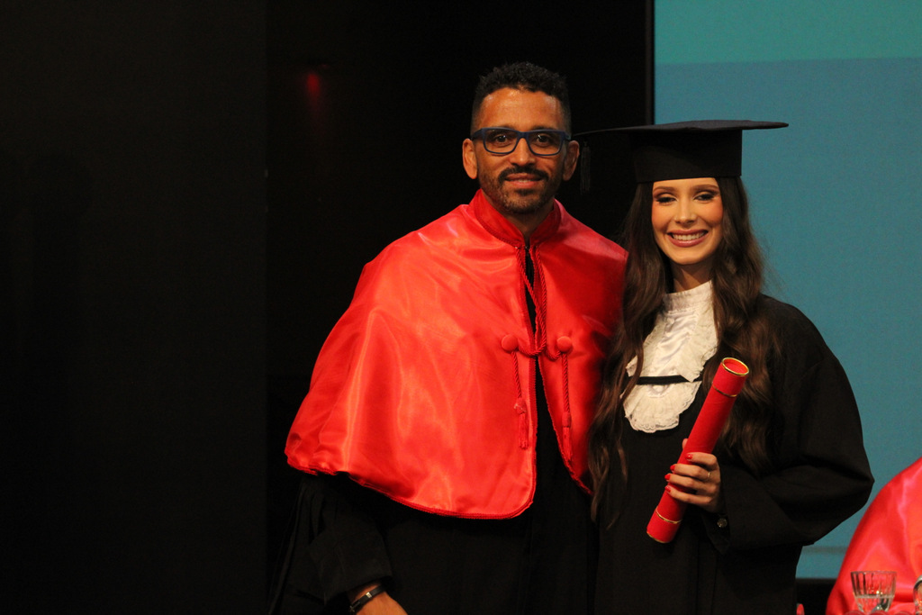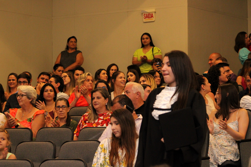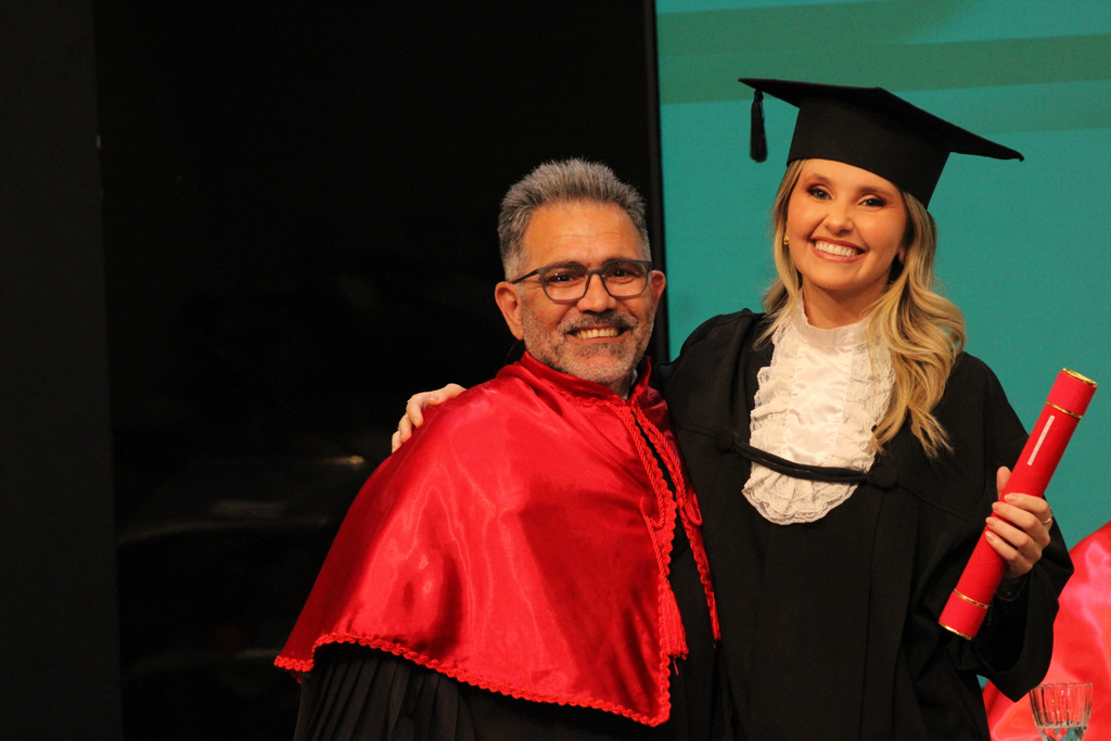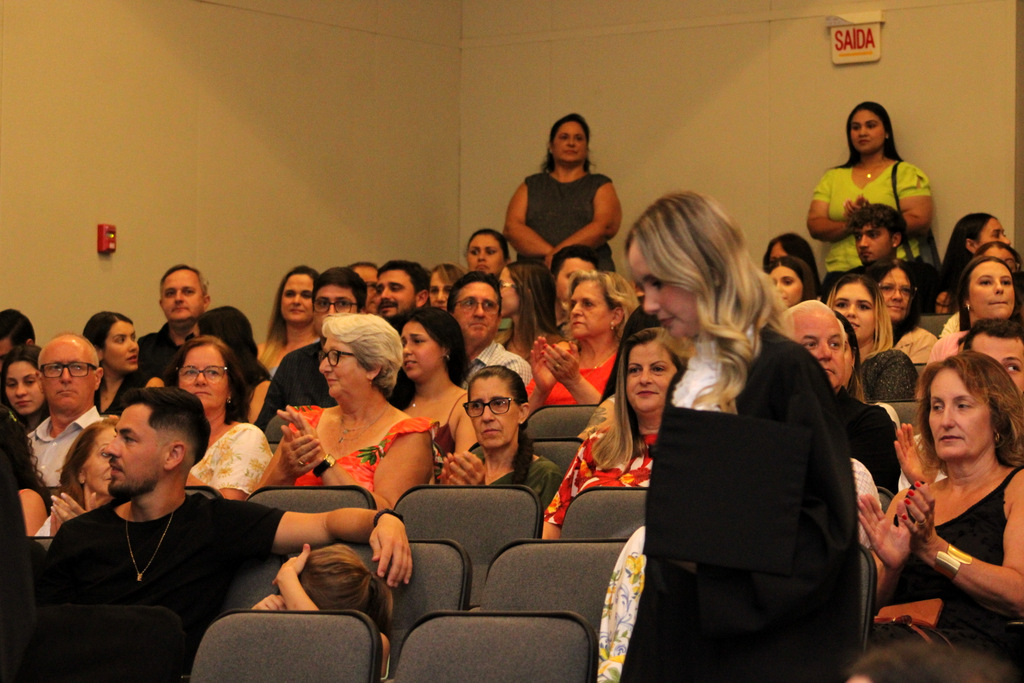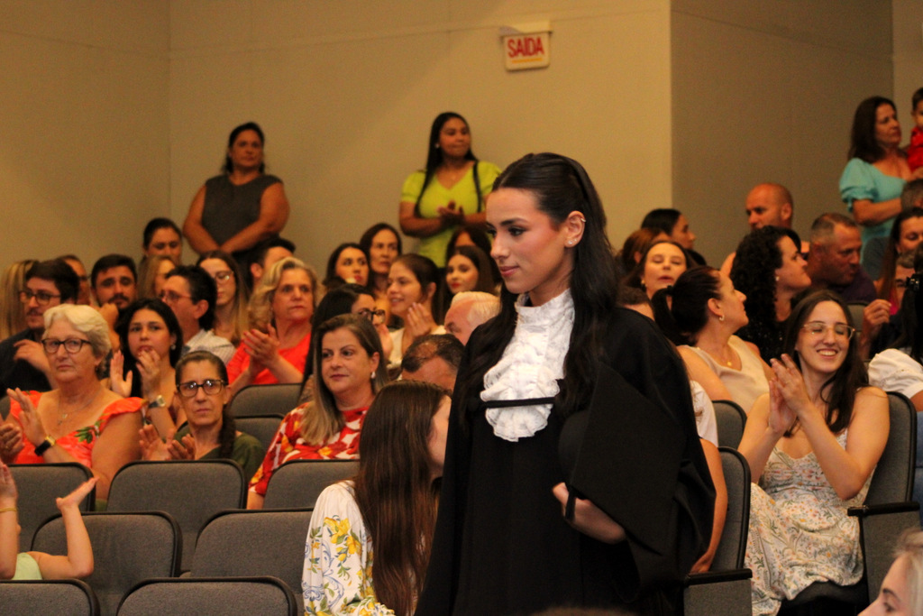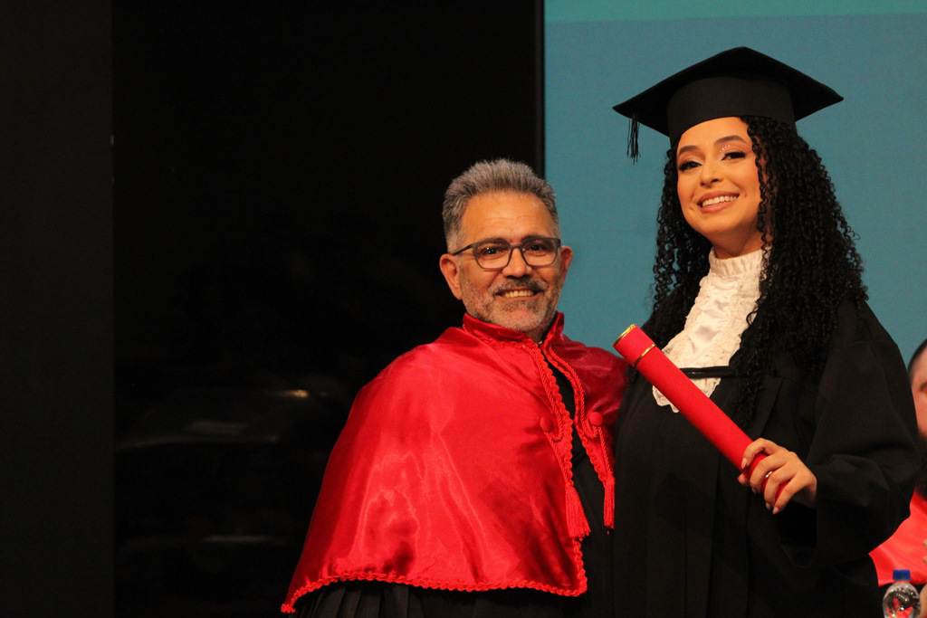 “Meus queridos formandos, nesta noite vocês não estão apenas concluindo uma graduação, mas entrando em uma nova fase de suas vidas, uma etapa repleta de possibilidades, desafios e conquistas. Deixaram para trás a condição de acadêmicos para se transformarem em profissionais aptos a desempenhar um papel transformador por onde quer que atuem. Vocês são agora mais do que especialistas: são líderes, gestores, economistas e administradores; acima de tudo, são agentes de mudança. Todos venceram desafios que exigiram mais do que conhecimento técnico; foi necessário um equilíbrio entre disciplina, empenho e, às vezes, até renúncia. Por isso, recebam hoje não apenas um diploma, mas também o reconhecimento de todo o esforço que investiram para alcançarem este dia”, parabenizou a pró-reitora.