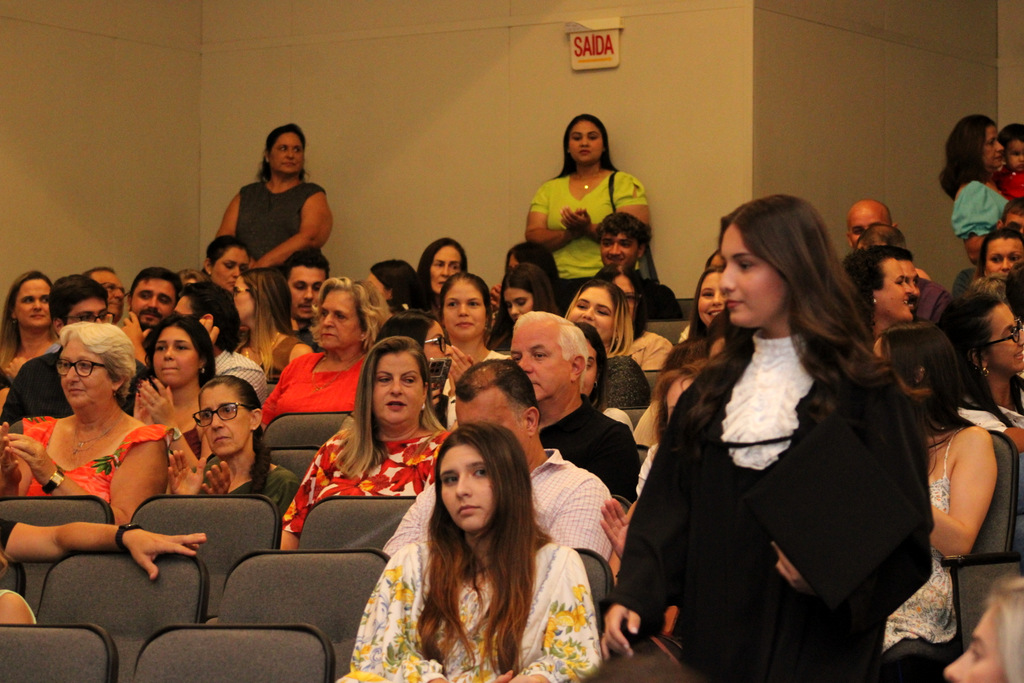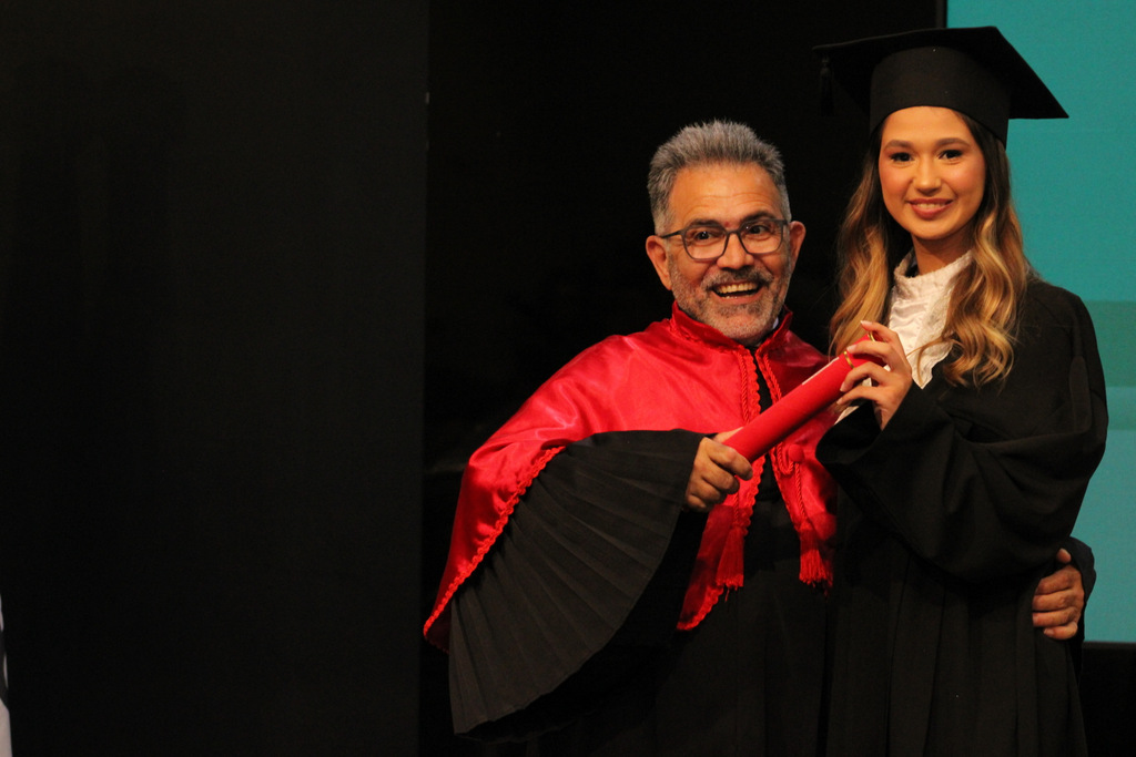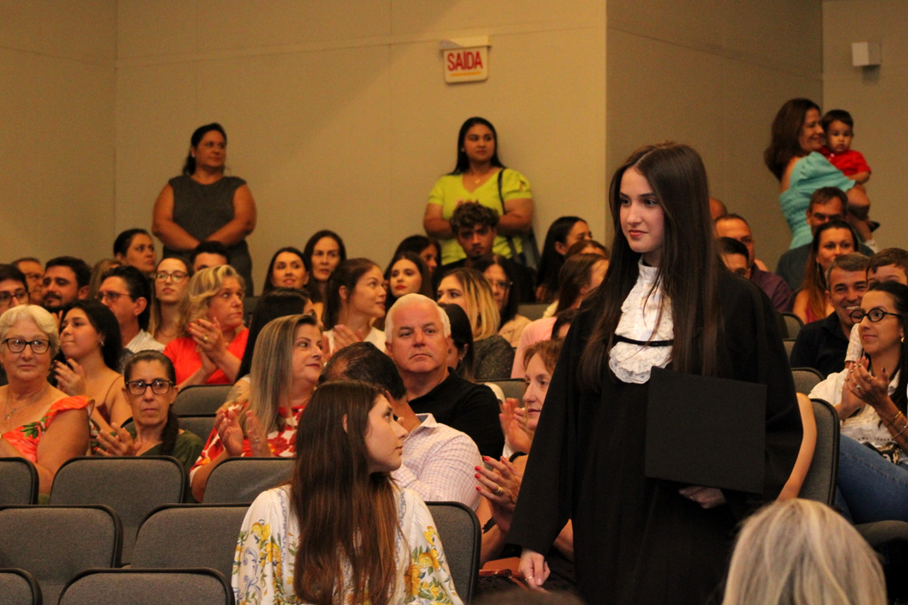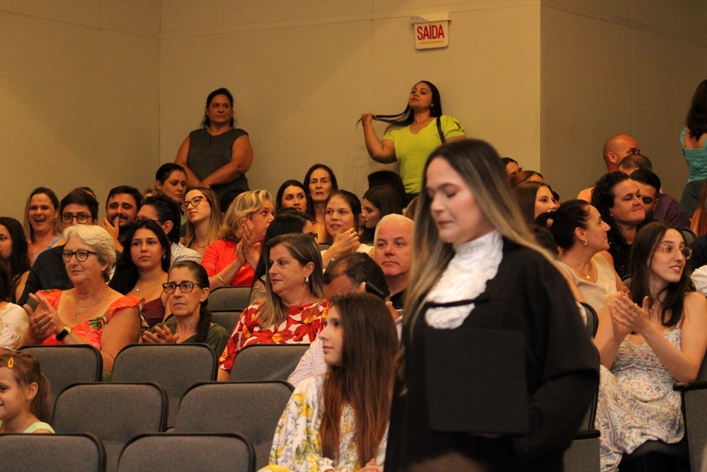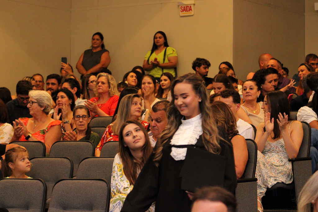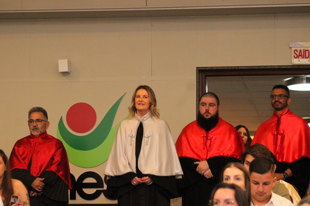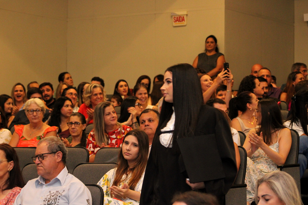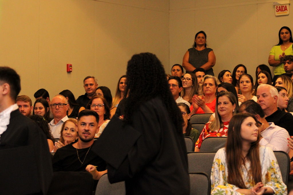 “Meus queridos formandos, nesta noite vocês não estão apenas concluindo uma graduação, mas entrando em uma nova fase de suas vidas, uma etapa repleta de possibilidades, desafios e conquistas. Deixaram para trás a condição de acadêmicos para se transformarem em profissionais aptos a desempenhar um papel transformador por onde quer que atuem. Vocês são agora mais do que especialistas: são líderes, gestores, economistas e administradores; acima de tudo, são agentes de mudança. Todos venceram desafios que exigiram mais do que conhecimento técnico; foi necessário um equilíbrio entre disciplina, empenho e, às vezes, até renúncia. Por isso, recebam hoje não apenas um diploma, mas também o reconhecimento de todo o esforço que investiram para alcançarem este dia”, parabenizou a pró-reitora.