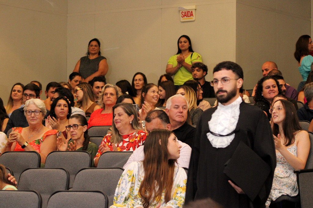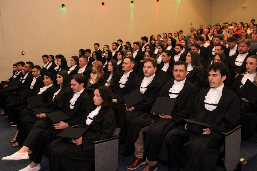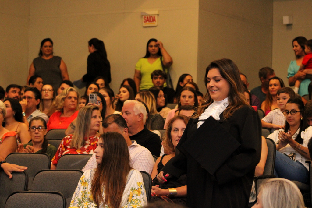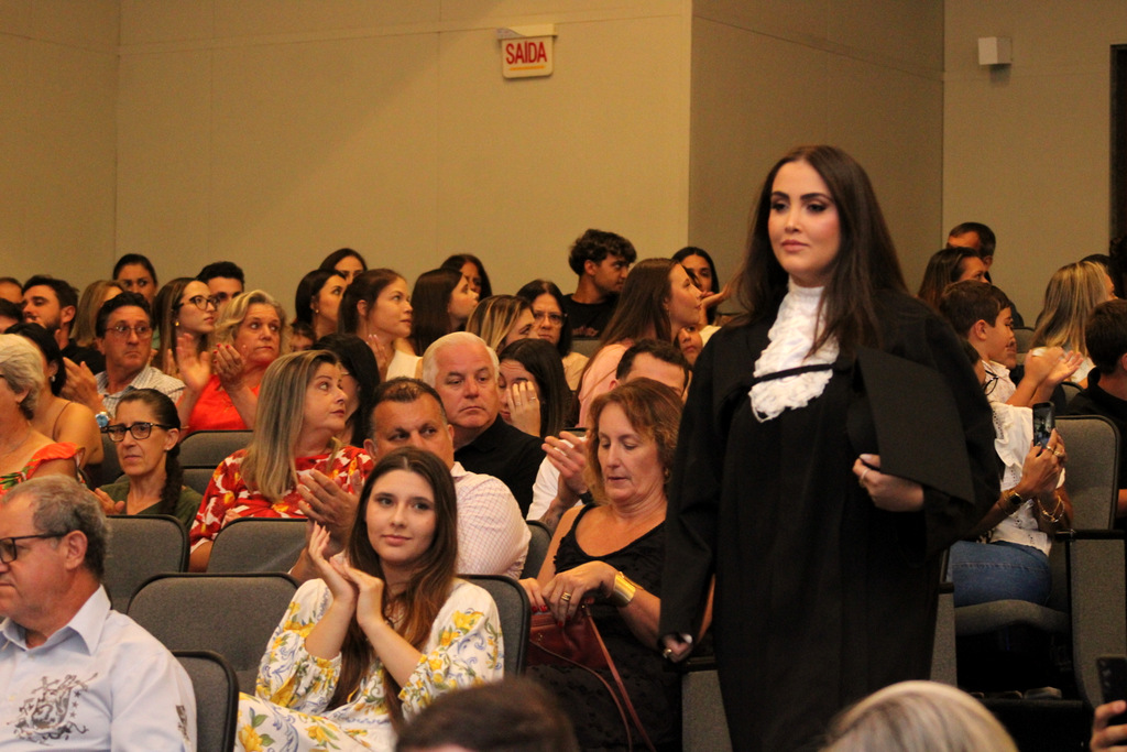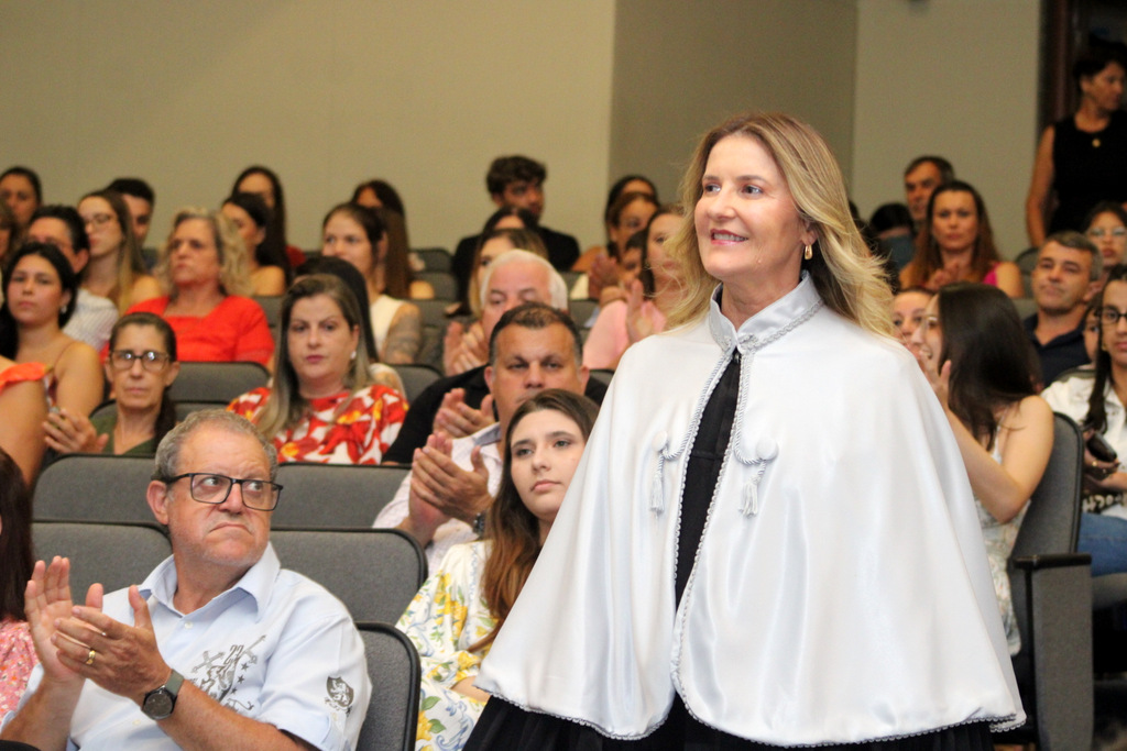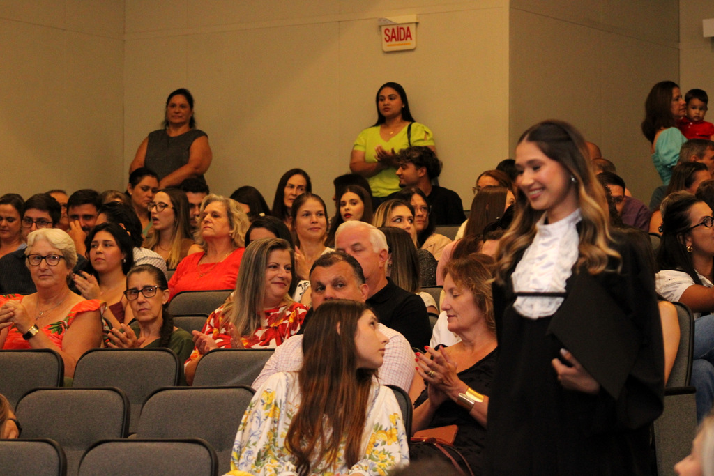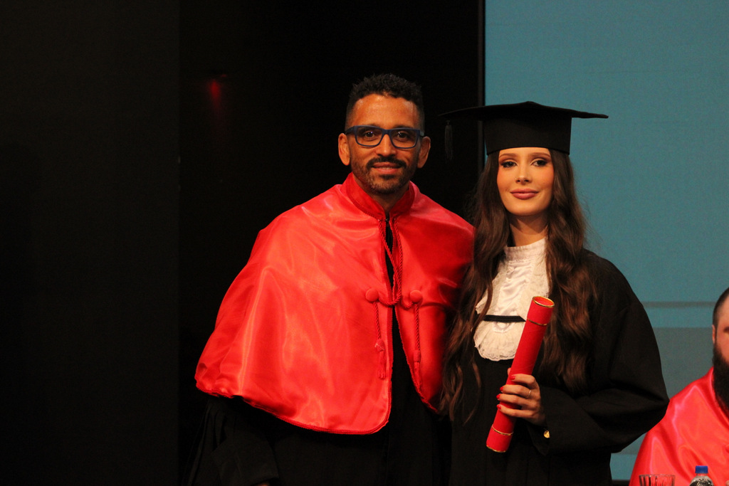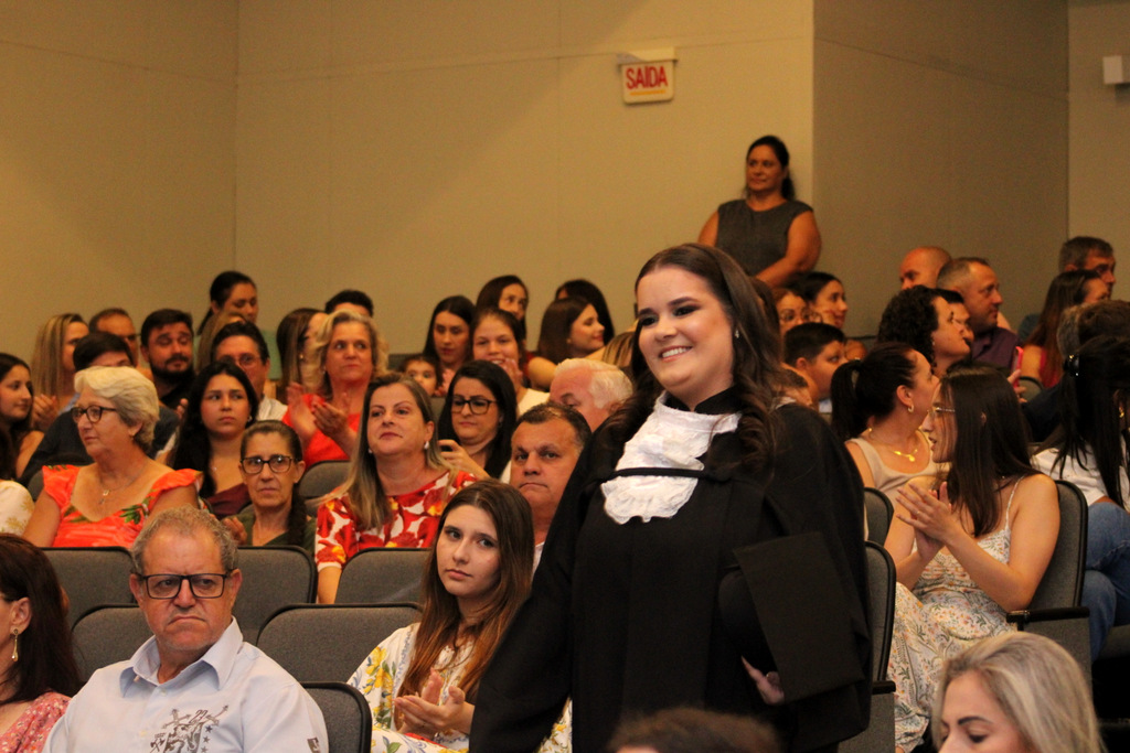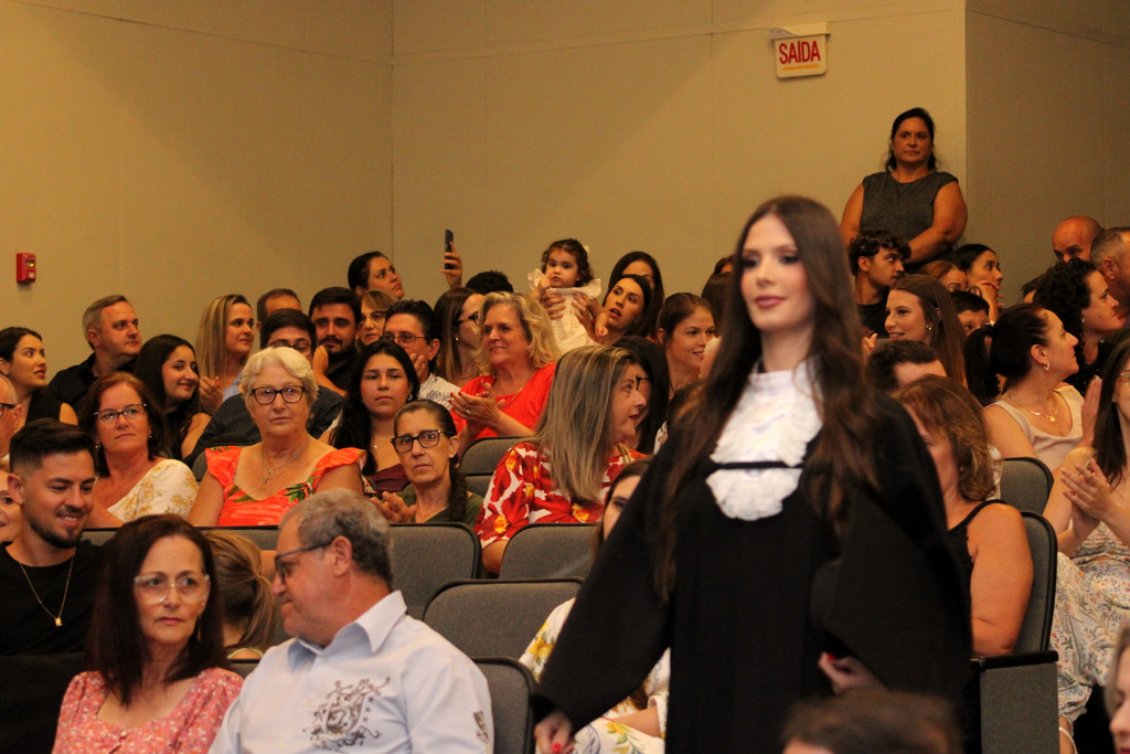 “Meus queridos formandos, nesta noite vocês não estão apenas concluindo uma graduação, mas entrando em uma nova fase de suas vidas, uma etapa repleta de possibilidades, desafios e conquistas. Deixaram para trás a condição de acadêmicos para se transformarem em profissionais aptos a desempenhar um papel transformador por onde quer que atuem. Vocês são agora mais do que especialistas: são líderes, gestores, economistas e administradores; acima de tudo, são agentes de mudança. Todos venceram desafios que exigiram mais do que conhecimento técnico; foi necessário um equilíbrio entre disciplina, empenho e, às vezes, até renúncia. Por isso, recebam hoje não apenas um diploma, mas também o reconhecimento de todo o esforço que investiram para alcançarem este dia”, parabenizou a pró-reitora.