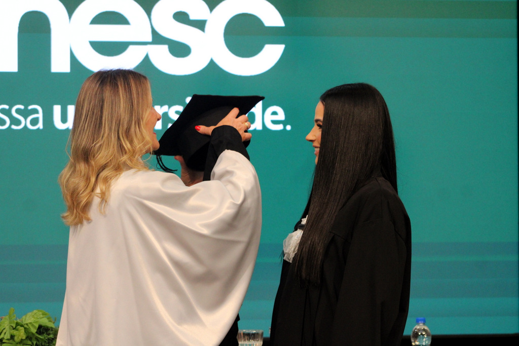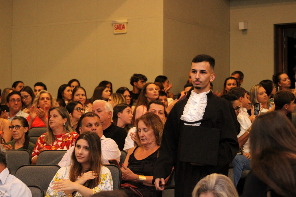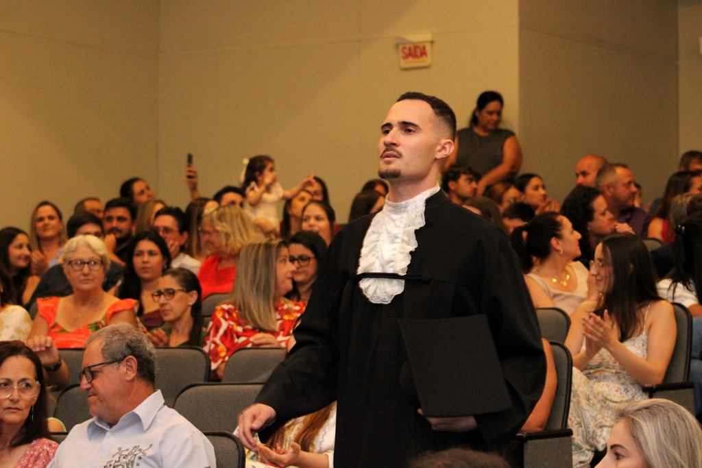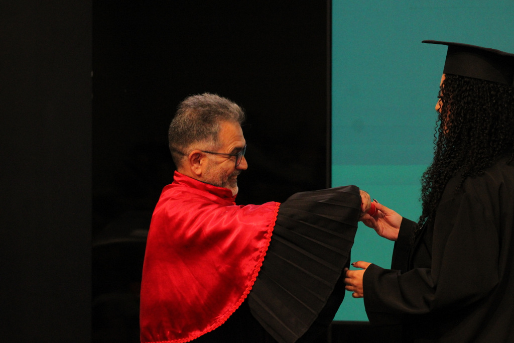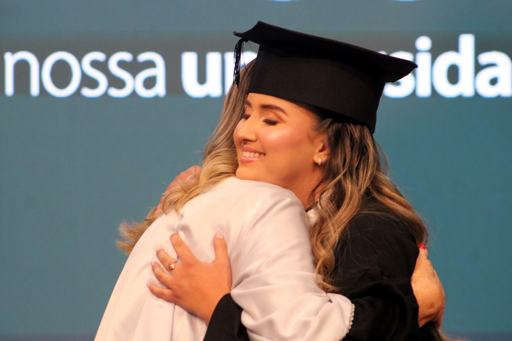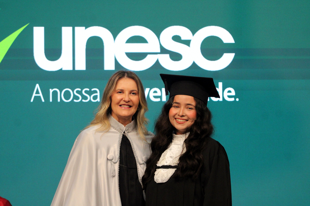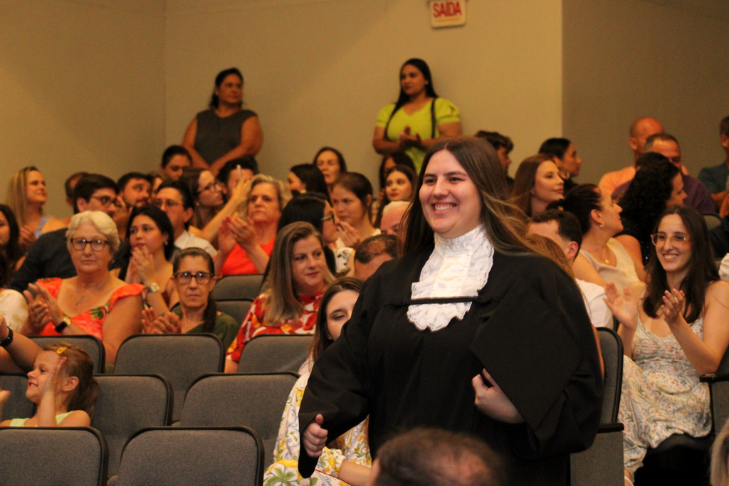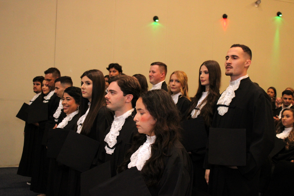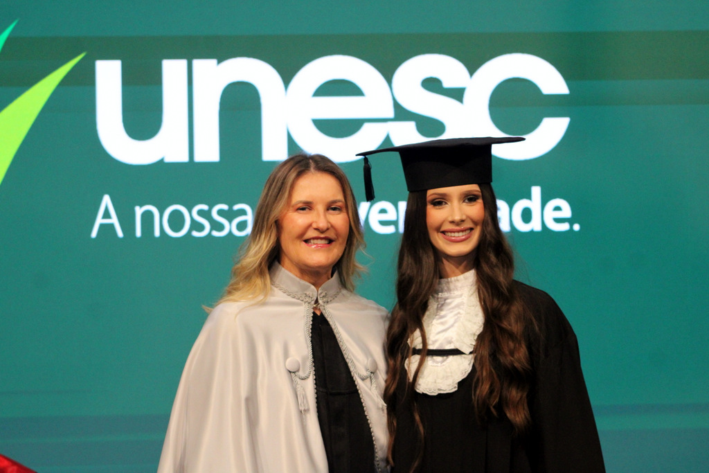 “Meus queridos formandos, nesta noite vocês não estão apenas concluindo uma graduação, mas entrando em uma nova fase de suas vidas, uma etapa repleta de possibilidades, desafios e conquistas. Deixaram para trás a condição de acadêmicos para se transformarem em profissionais aptos a desempenhar um papel transformador por onde quer que atuem. Vocês são agora mais do que especialistas: são líderes, gestores, economistas e administradores; acima de tudo, são agentes de mudança. Todos venceram desafios que exigiram mais do que conhecimento técnico; foi necessário um equilíbrio entre disciplina, empenho e, às vezes, até renúncia. Por isso, recebam hoje não apenas um diploma, mas também o reconhecimento de todo o esforço que investiram para alcançarem este dia”, parabenizou a pró-reitora.