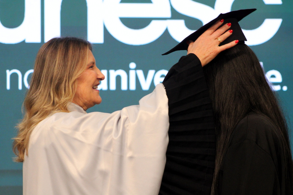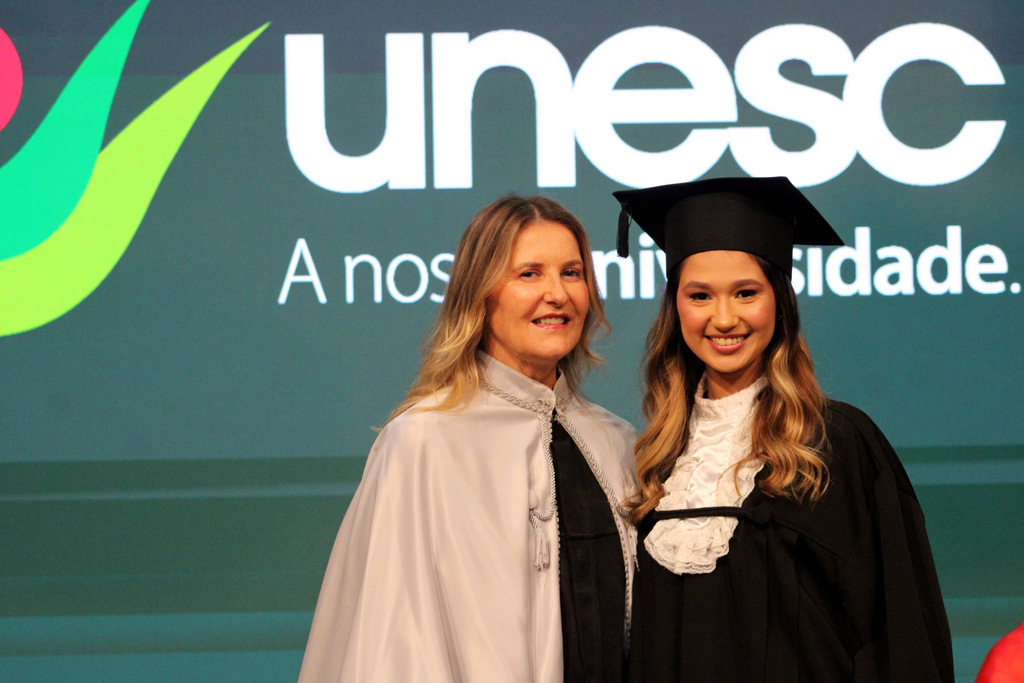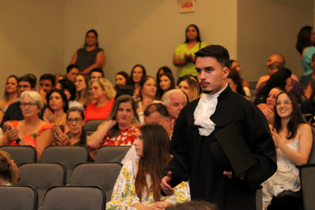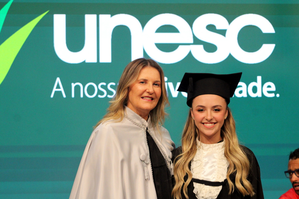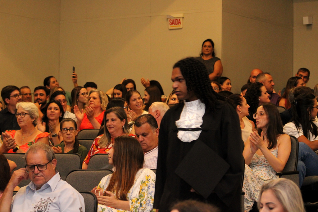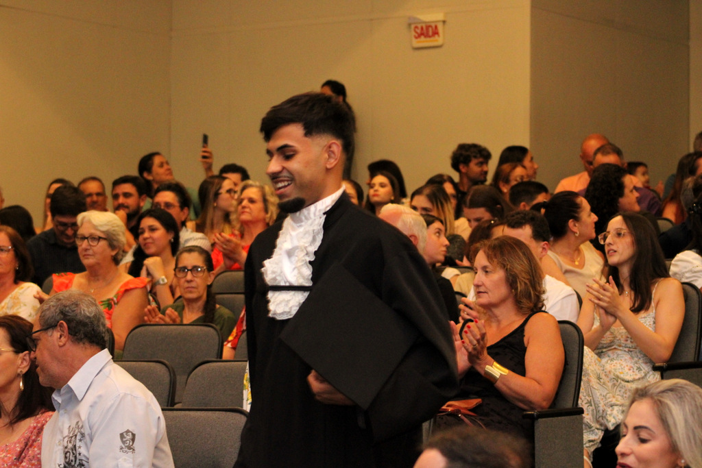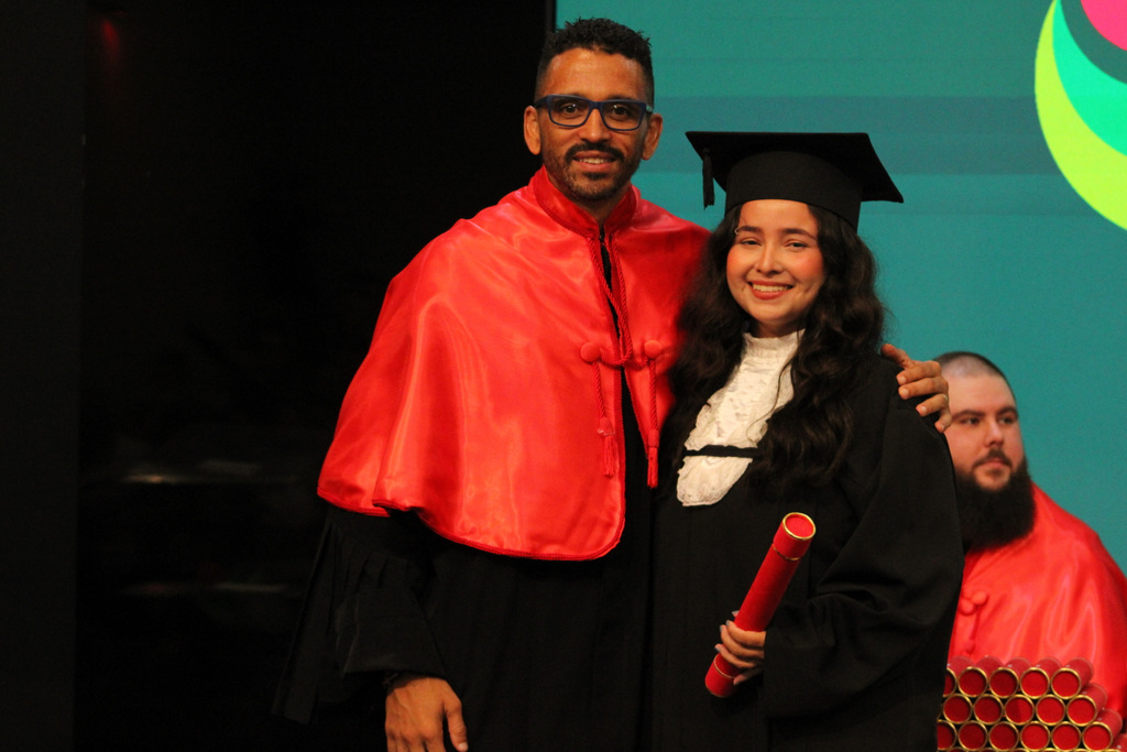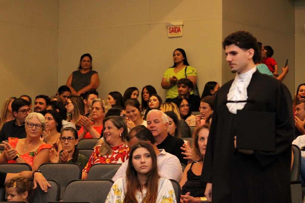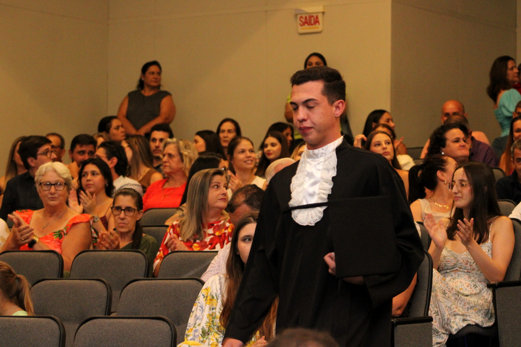 “Meus queridos formandos, nesta noite vocês não estão apenas concluindo uma graduação, mas entrando em uma nova fase de suas vidas, uma etapa repleta de possibilidades, desafios e conquistas. Deixaram para trás a condição de acadêmicos para se transformarem em profissionais aptos a desempenhar um papel transformador por onde quer que atuem. Vocês são agora mais do que especialistas: são líderes, gestores, economistas e administradores; acima de tudo, são agentes de mudança. Todos venceram desafios que exigiram mais do que conhecimento técnico; foi necessário um equilíbrio entre disciplina, empenho e, às vezes, até renúncia. Por isso, recebam hoje não apenas um diploma, mas também o reconhecimento de todo o esforço que investiram para alcançarem este dia”, parabenizou a pró-reitora.