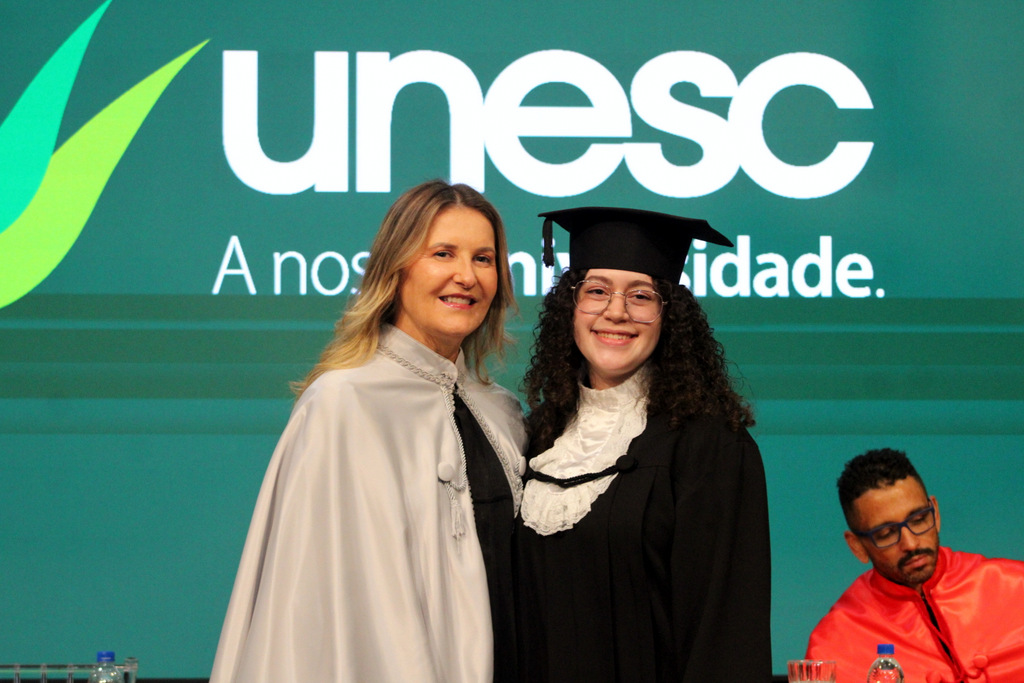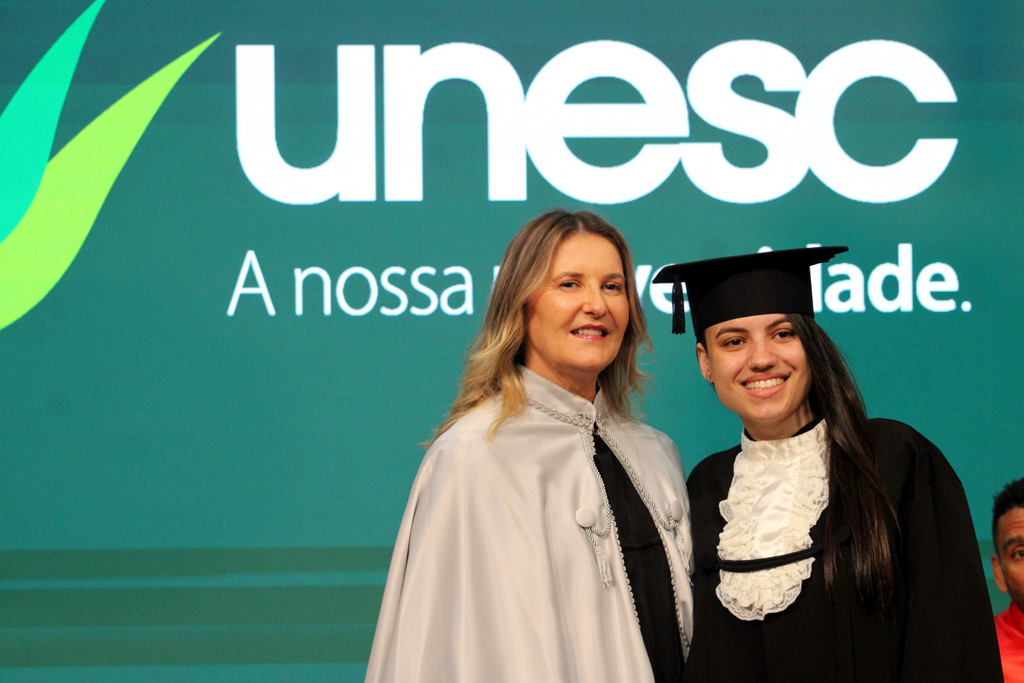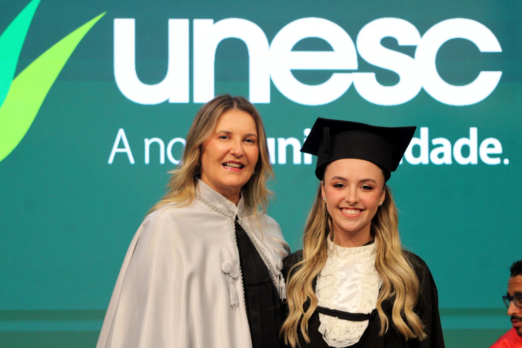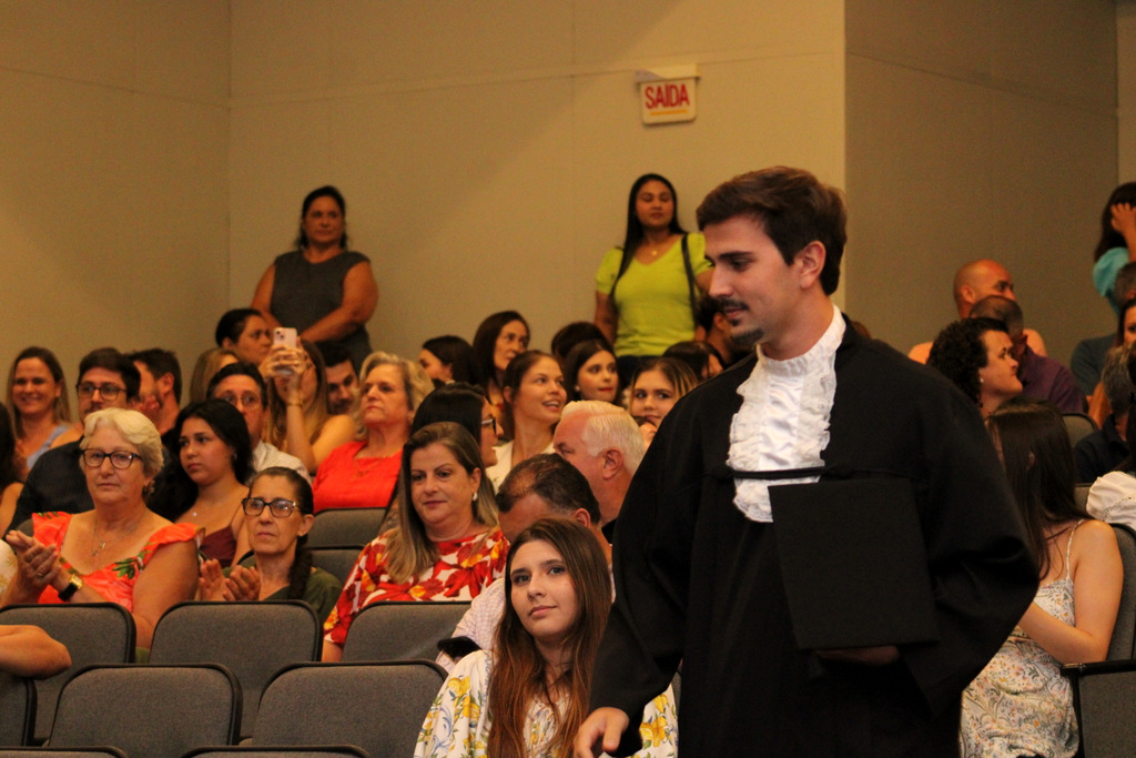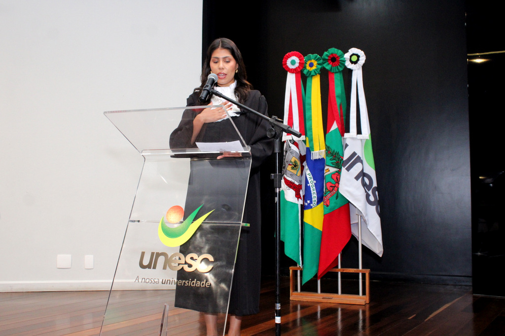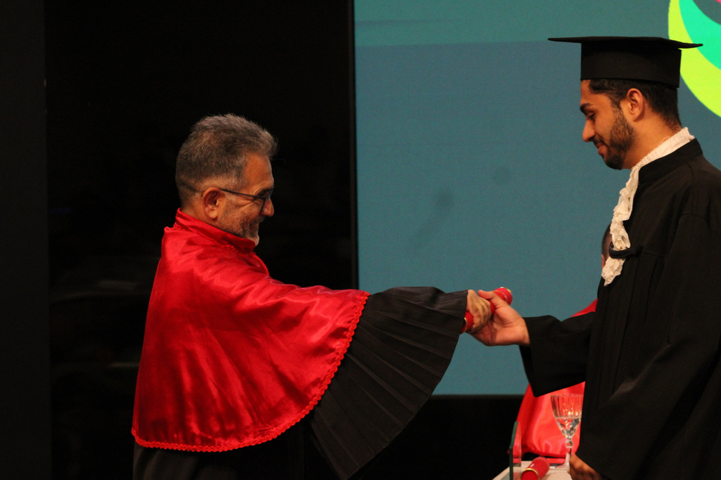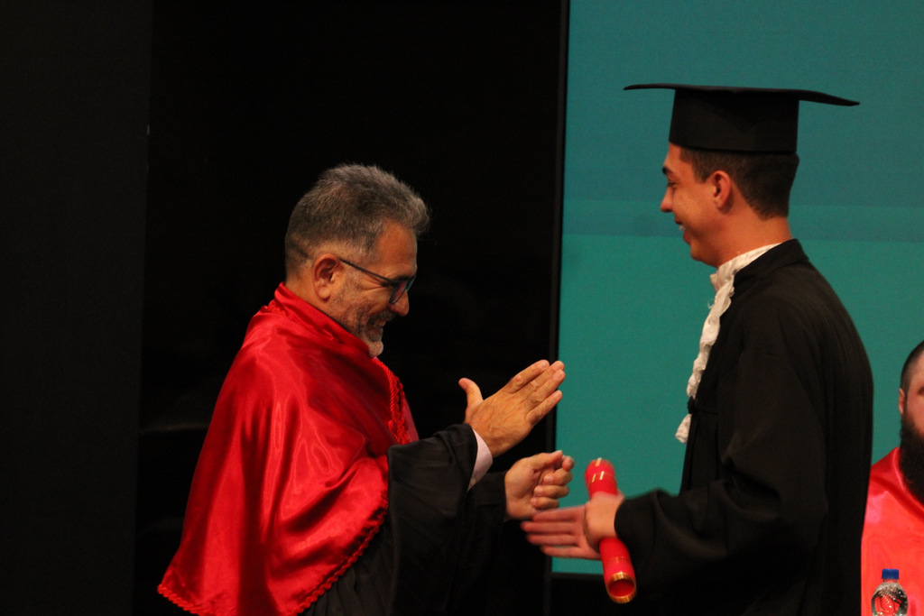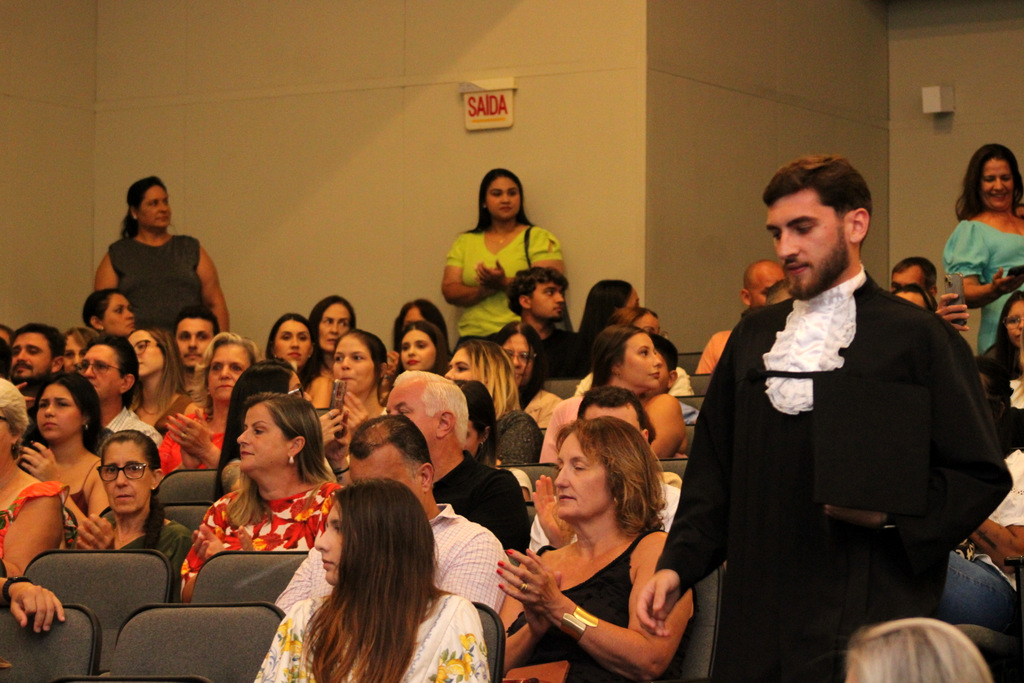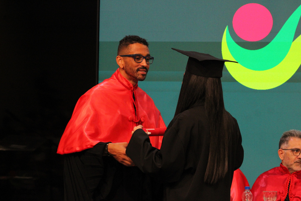 “Meus queridos formandos, nesta noite vocês não estão apenas concluindo uma graduação, mas entrando em uma nova fase de suas vidas, uma etapa repleta de possibilidades, desafios e conquistas. Deixaram para trás a condição de acadêmicos para se transformarem em profissionais aptos a desempenhar um papel transformador por onde quer que atuem. Vocês são agora mais do que especialistas: são líderes, gestores, economistas e administradores; acima de tudo, são agentes de mudança. Todos venceram desafios que exigiram mais do que conhecimento técnico; foi necessário um equilíbrio entre disciplina, empenho e, às vezes, até renúncia. Por isso, recebam hoje não apenas um diploma, mas também o reconhecimento de todo o esforço que investiram para alcançarem este dia”, parabenizou a pró-reitora.