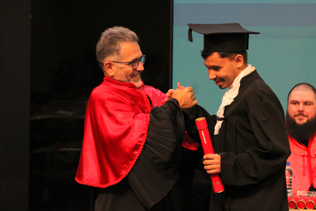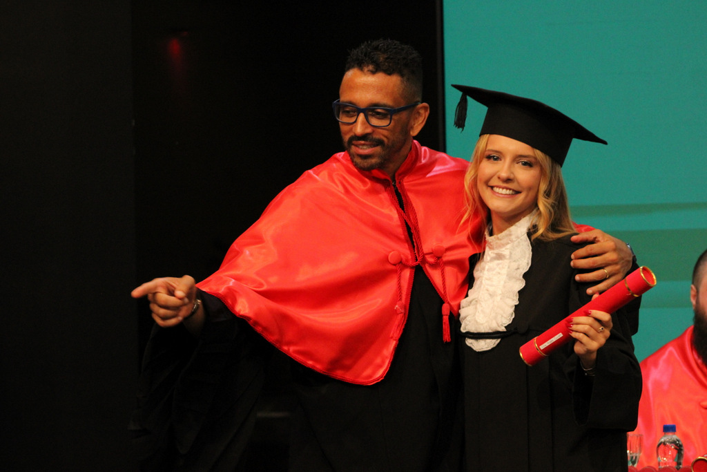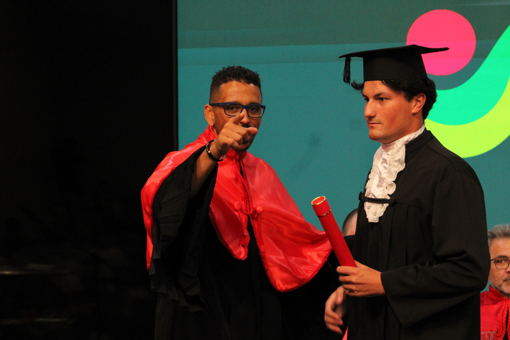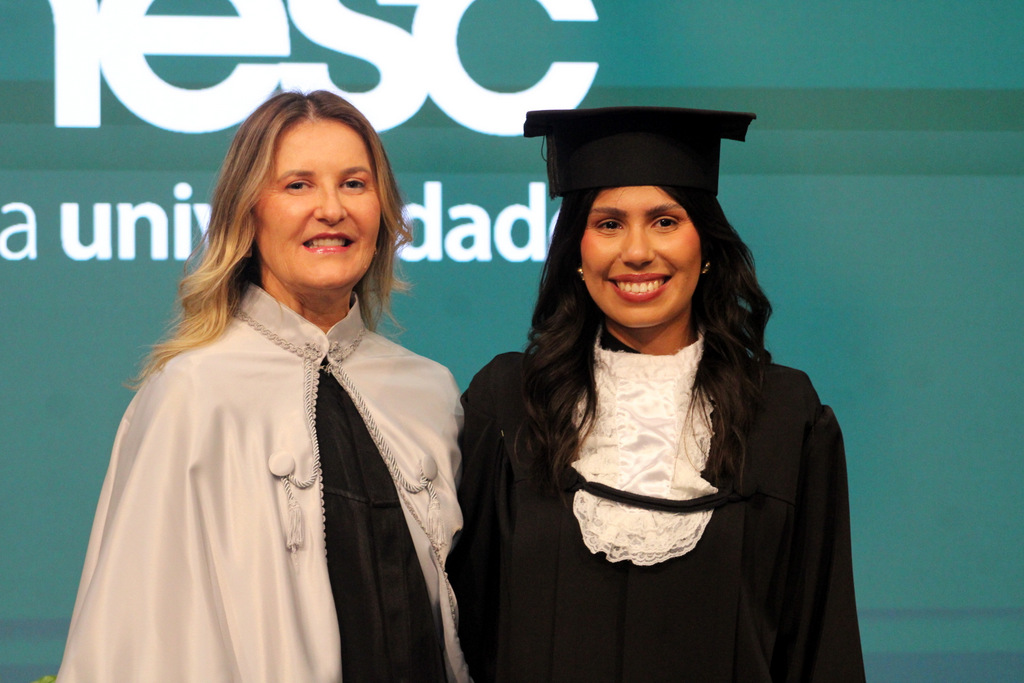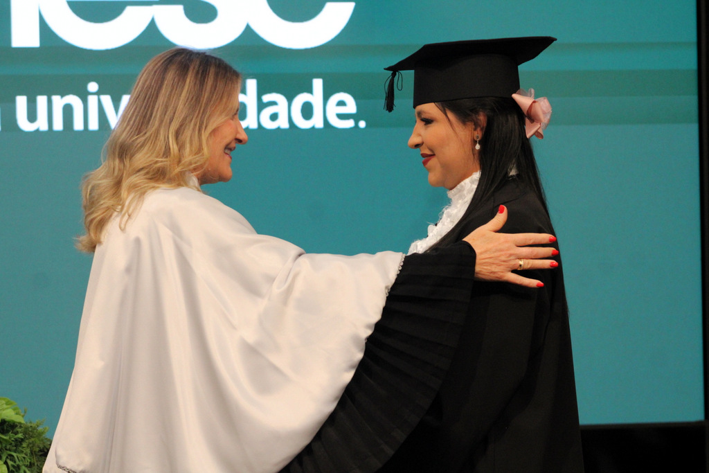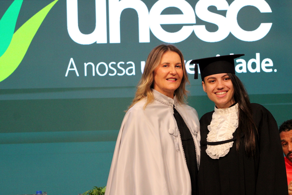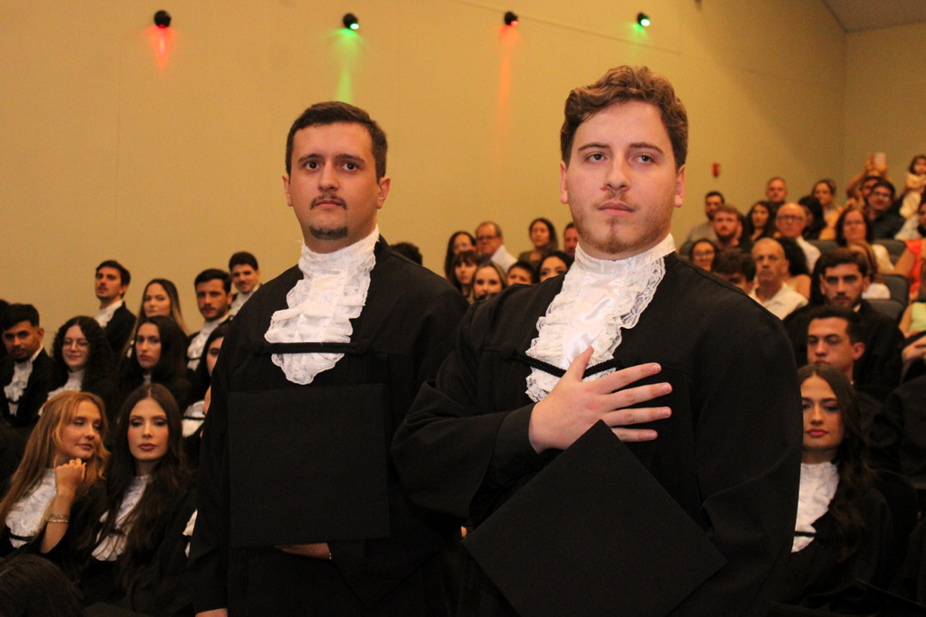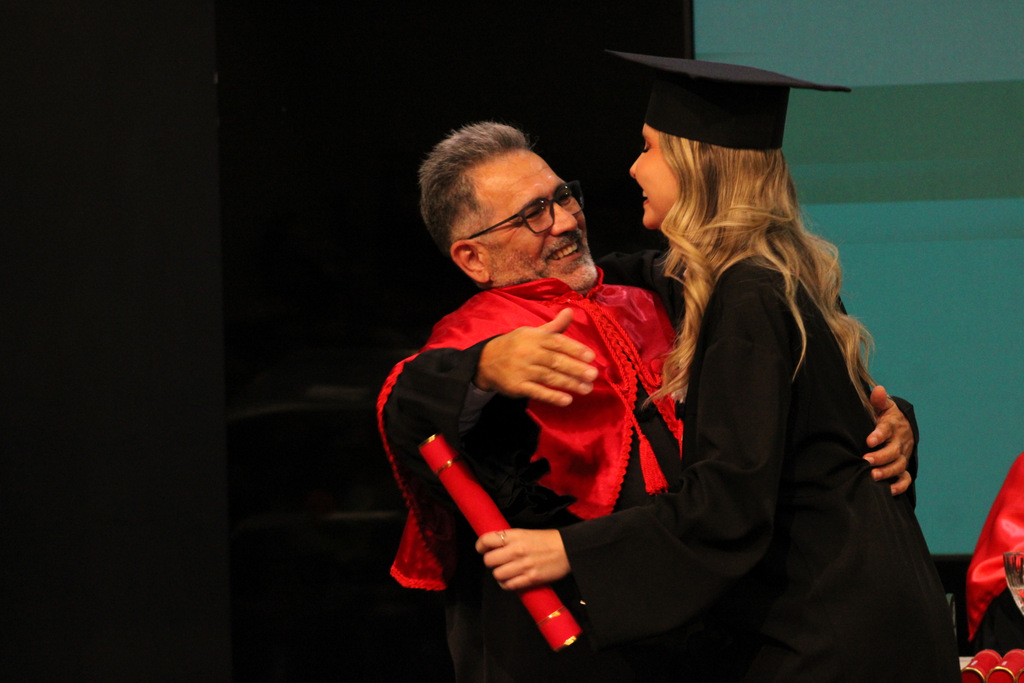 “Meus queridos formandos, nesta noite vocês não estão apenas concluindo uma graduação, mas entrando em uma nova fase de suas vidas, uma etapa repleta de possibilidades, desafios e conquistas. Deixaram para trás a condição de acadêmicos para se transformarem em profissionais aptos a desempenhar um papel transformador por onde quer que atuem. Vocês são agora mais do que especialistas: são líderes, gestores, economistas e administradores; acima de tudo, são agentes de mudança. Todos venceram desafios que exigiram mais do que conhecimento técnico; foi necessário um equilíbrio entre disciplina, empenho e, às vezes, até renúncia. Por isso, recebam hoje não apenas um diploma, mas também o reconhecimento de todo o esforço que investiram para alcançarem este dia”, parabenizou a pró-reitora.