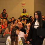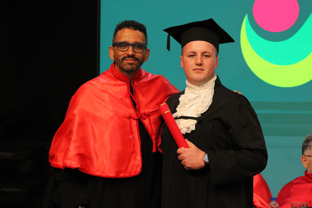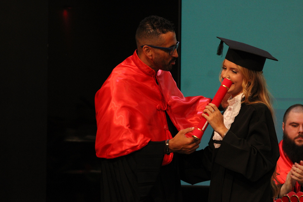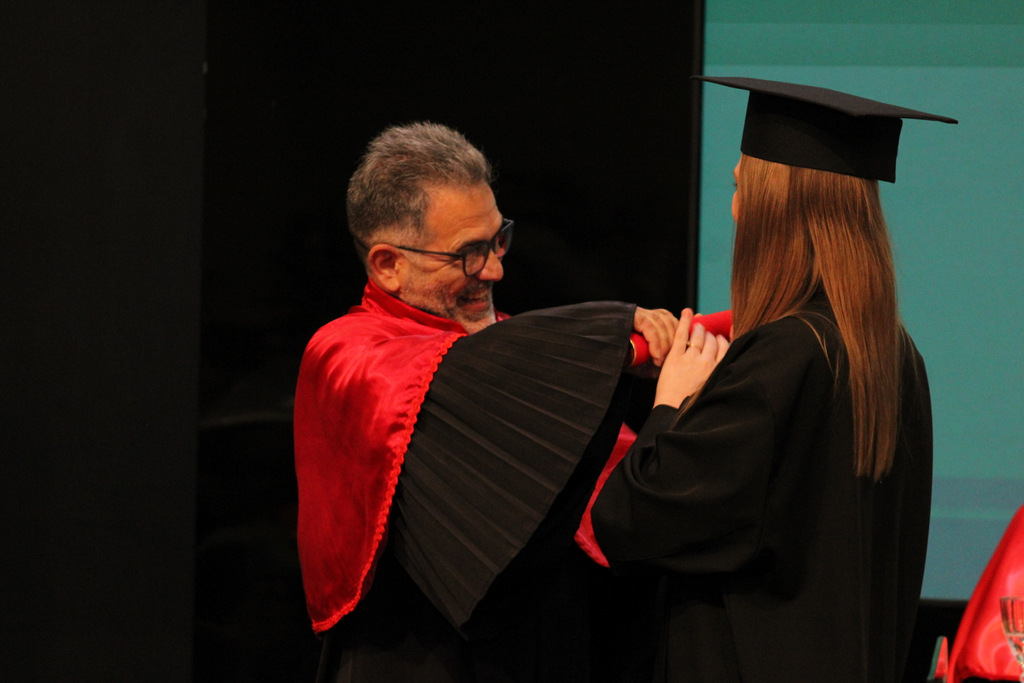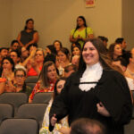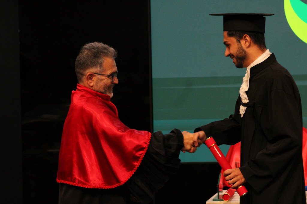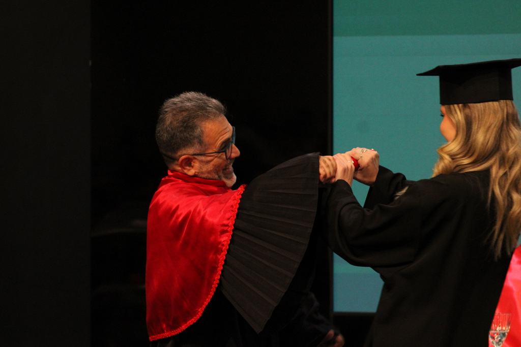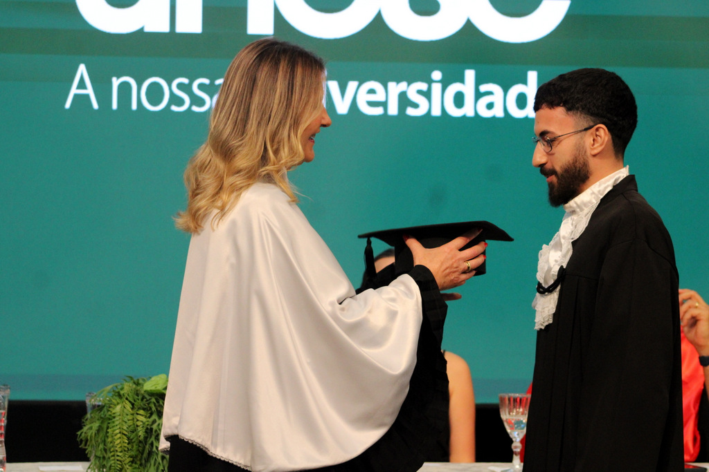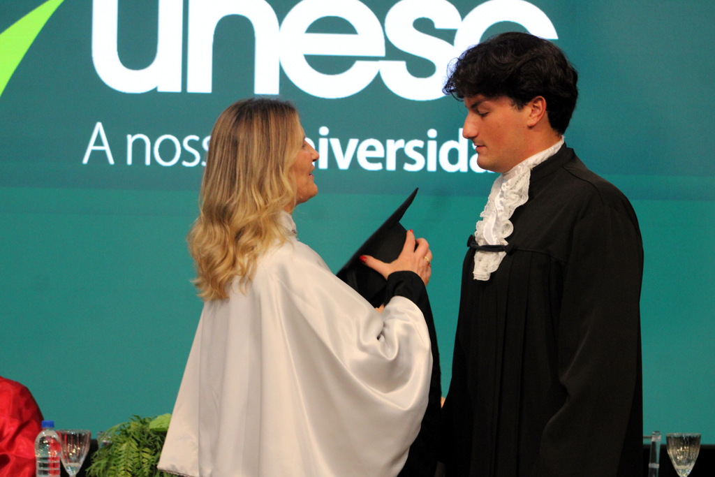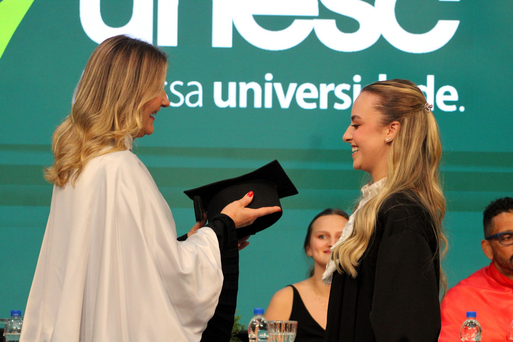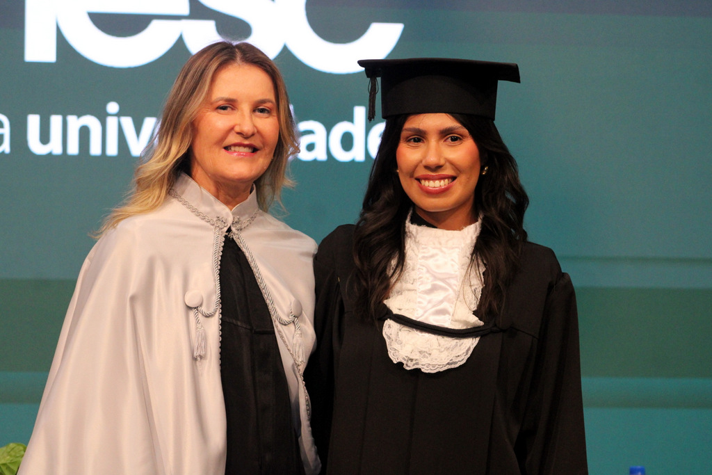 “Meus queridos formandos, nesta noite vocês não estão apenas concluindo uma graduação, mas entrando em uma nova fase de suas vidas, uma etapa repleta de possibilidades, desafios e conquistas. Deixaram para trás a condição de acadêmicos para se transformarem em profissionais aptos a desempenhar um papel transformador por onde quer que atuem. Vocês são agora mais do que especialistas: são líderes, gestores, economistas e administradores; acima de tudo, são agentes de mudança. Todos venceram desafios que exigiram mais do que conhecimento técnico; foi necessário um equilíbrio entre disciplina, empenho e, às vezes, até renúncia. Por isso, recebam hoje não apenas um diploma, mas também o reconhecimento de todo o esforço que investiram para alcançarem este dia”, parabenizou a pró-reitora.