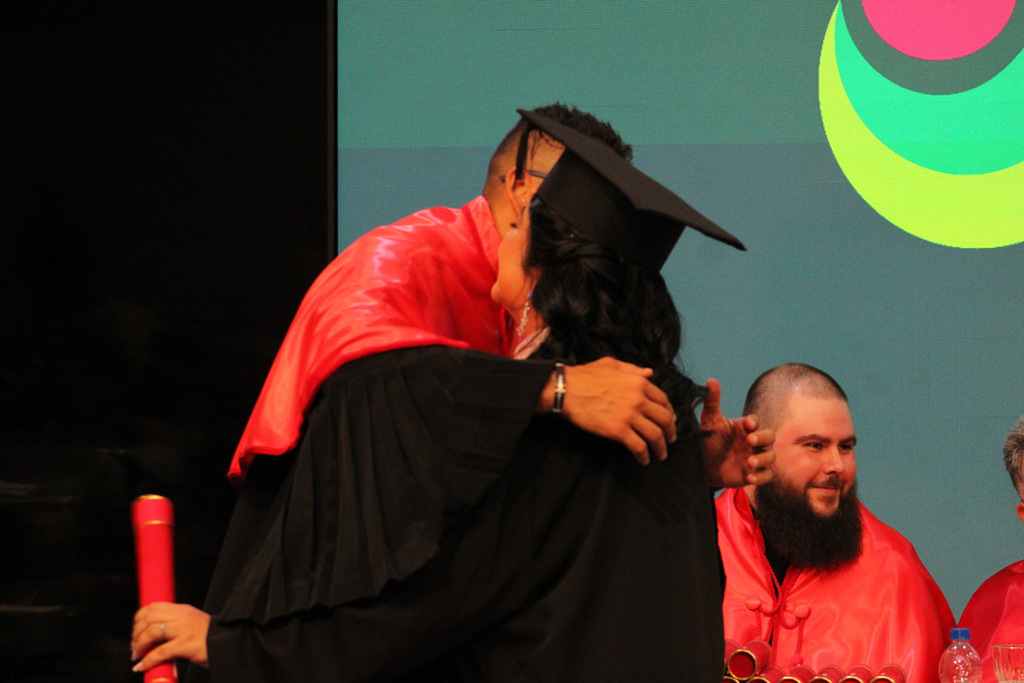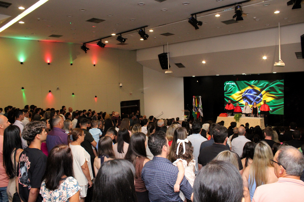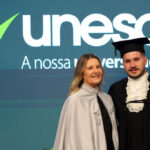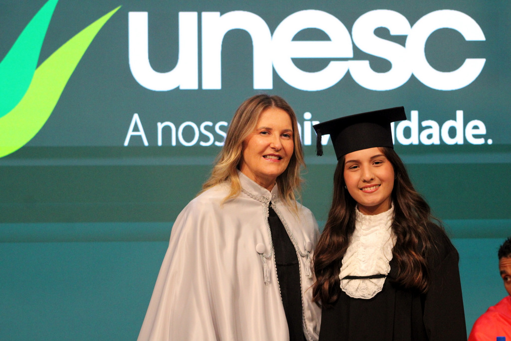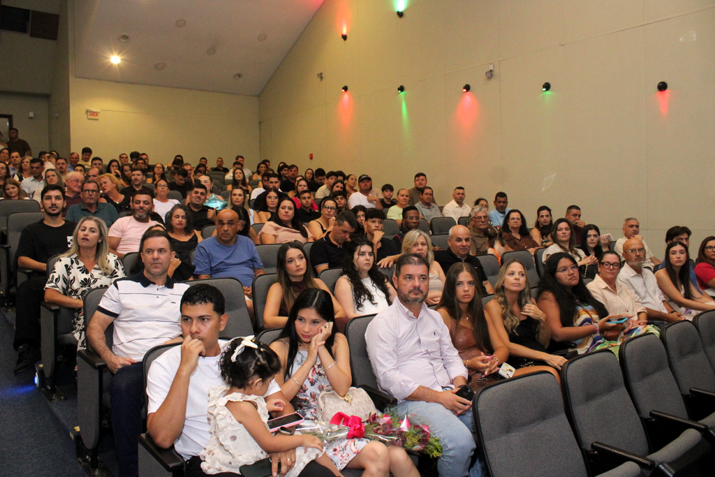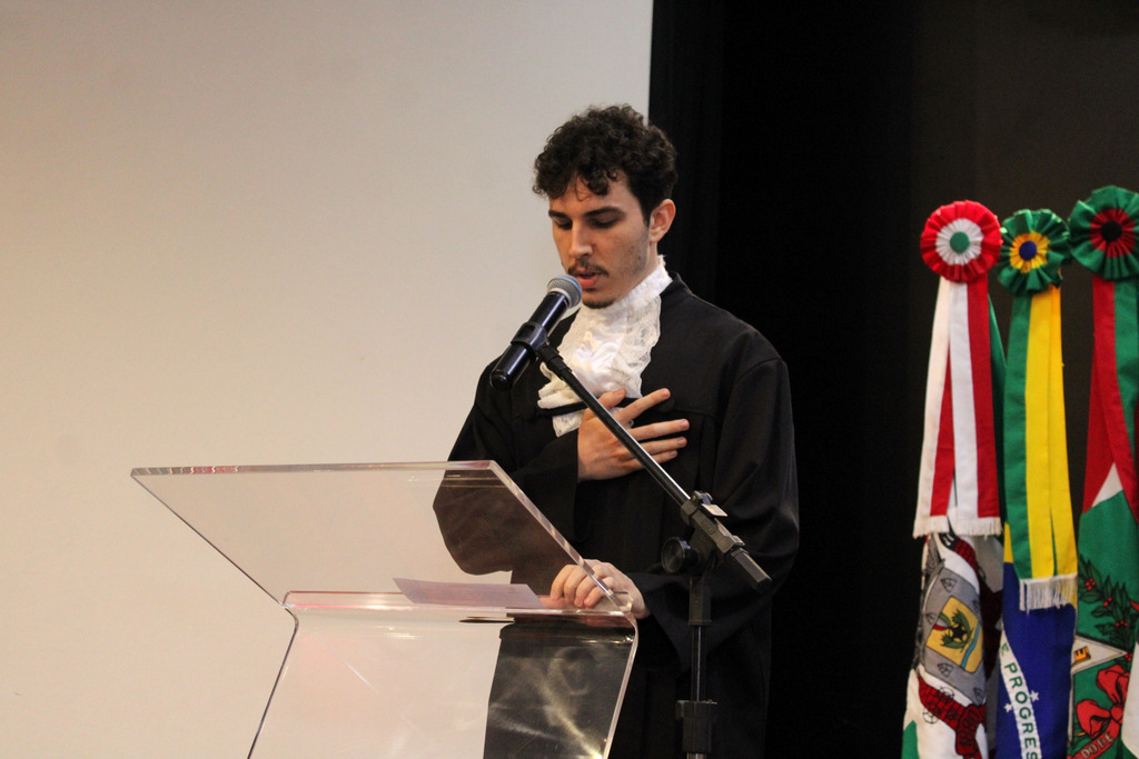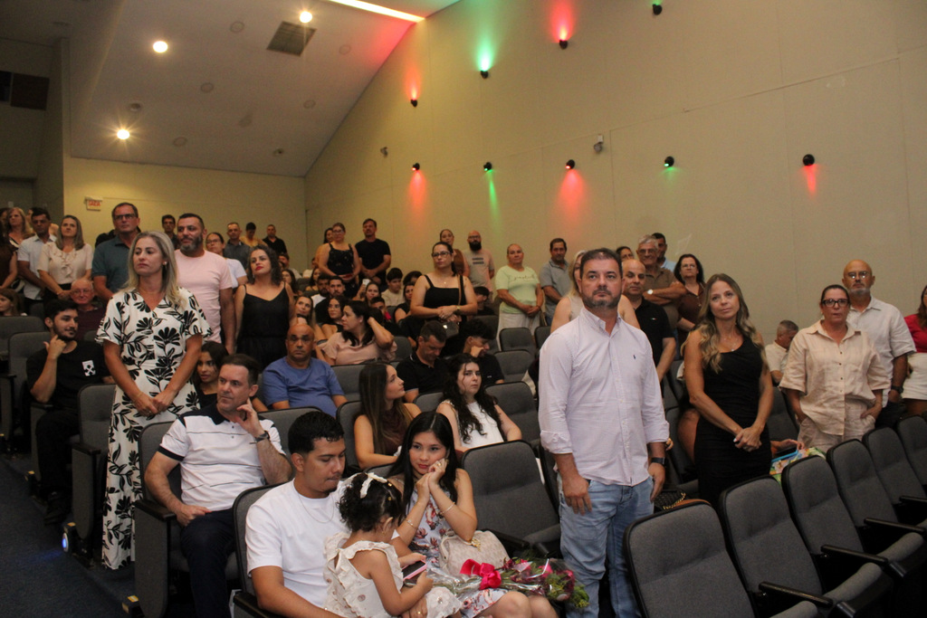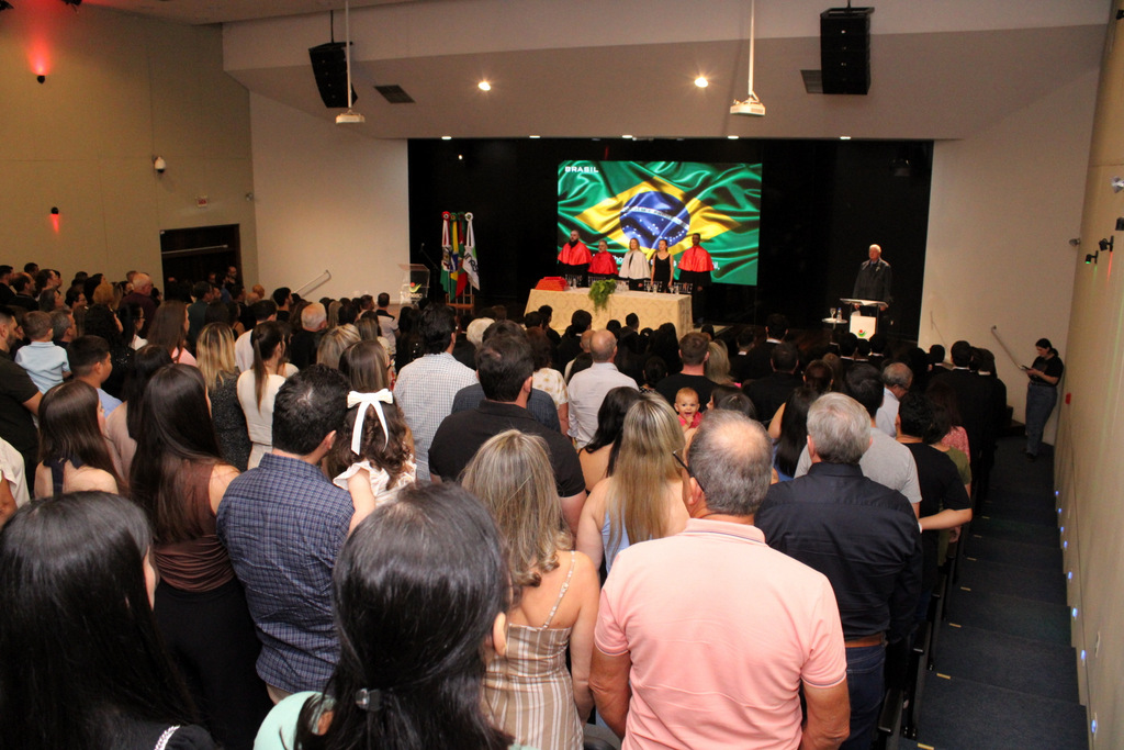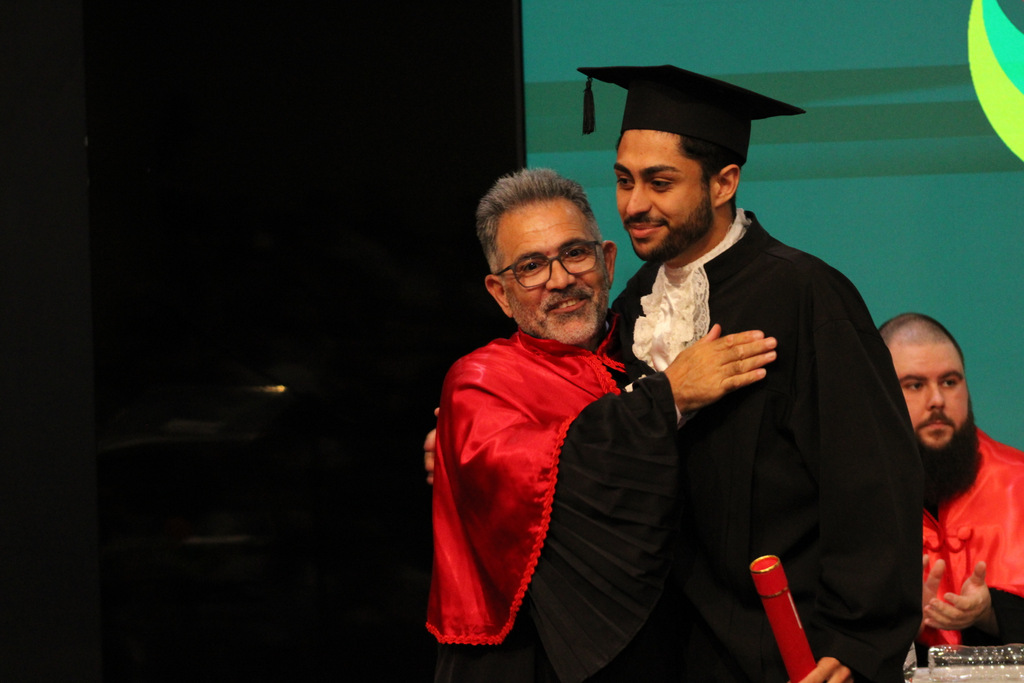Antes de encerrar o evento, o cerimonialista Laênio Ghisi reservou um momento de profunda sensibilidade dedicado aos pais e mães presentes. Em todas as suas sessões de colação de grau, a Unesc reitera que o apoio familiar é o pilar fundamental para o sucesso acadêmico, descrevendo a conquista do diploma como uma vitória compartilhada entre todos os familiares.