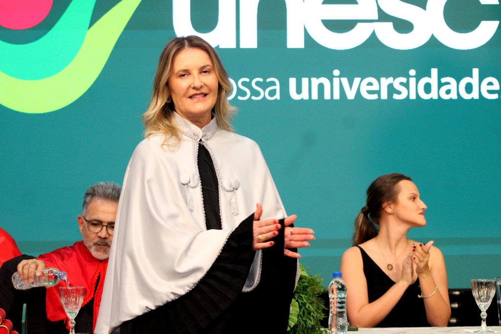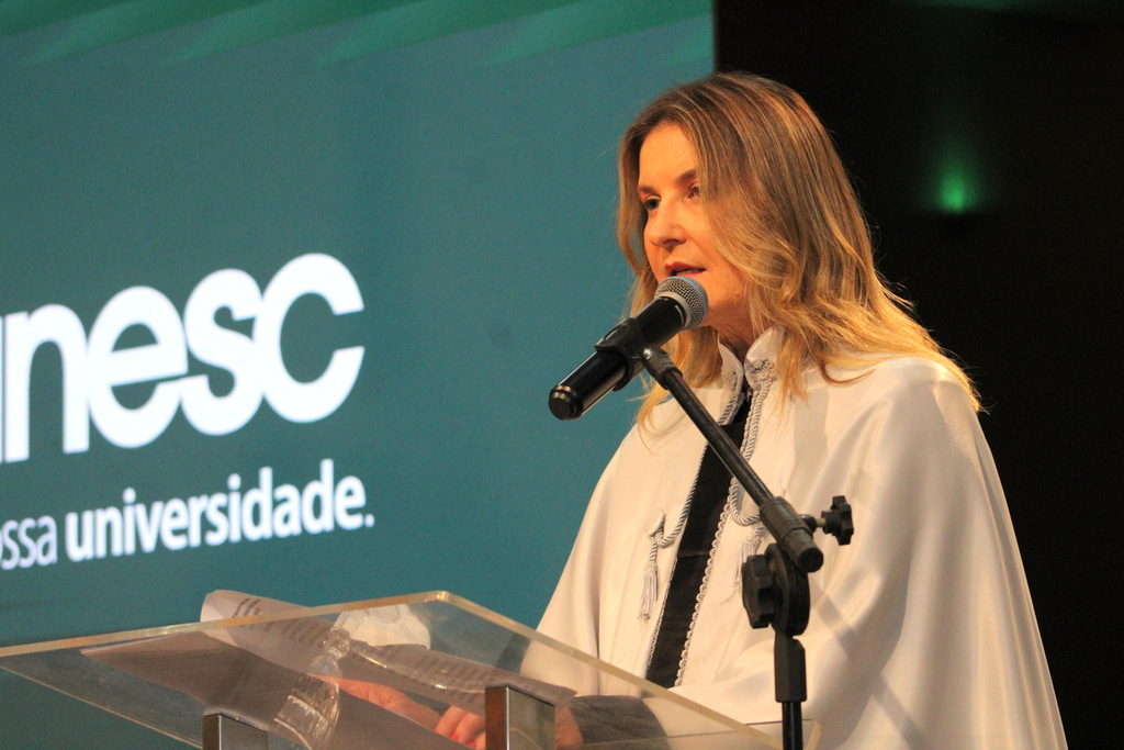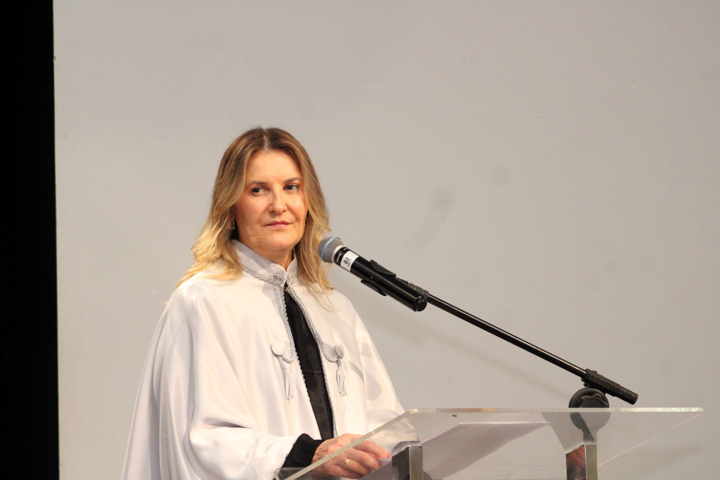 Em seu pronunciamento, a pró-reitora Graziela destacou que o momento era histórico para cada um dos presentes, mas, especialmente, para os graduandos, graduandas e seus familiares.
