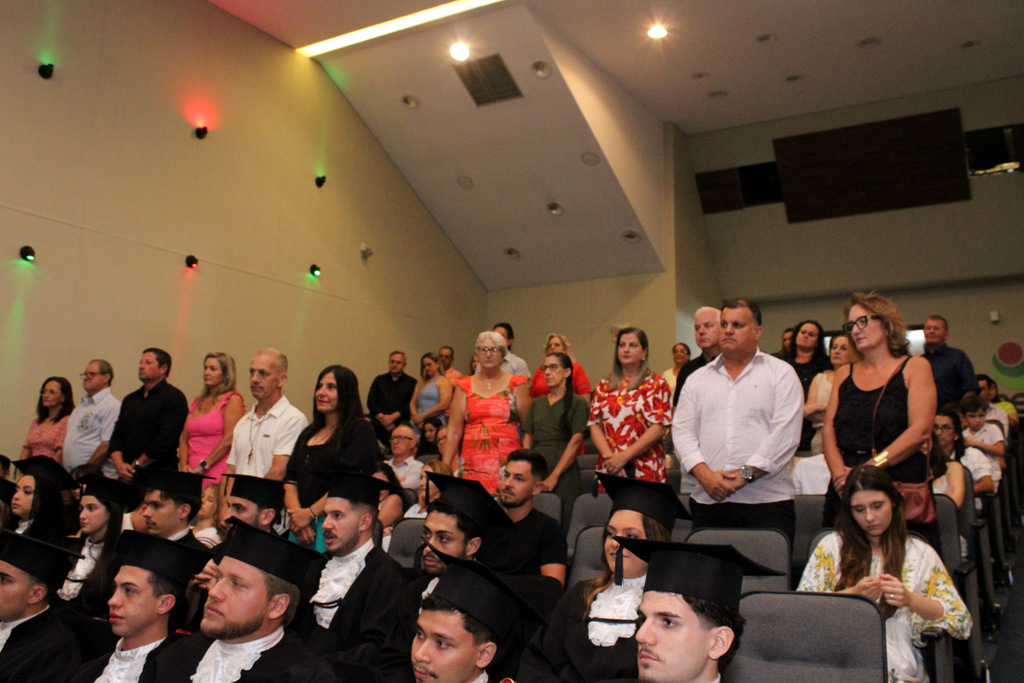 A pró-reitora de Ensino, Graziela Fátima Giacomazzo, presidiu a cerimônia acompanhada pelos coordenadores dos cursos de Administração, Ciências Econômicas e das Tecnologias em Gestão de Recursos Humanos e Processos Gerenciais: Thiago Henrique Almino Francisco, Igor Martello Olsson e Volmar Madeira, respectivamente. Também testemunhou a entrega dos certificados, a presidente do Diretório Central dos Estudantes (DCE), Camila Jacoby.