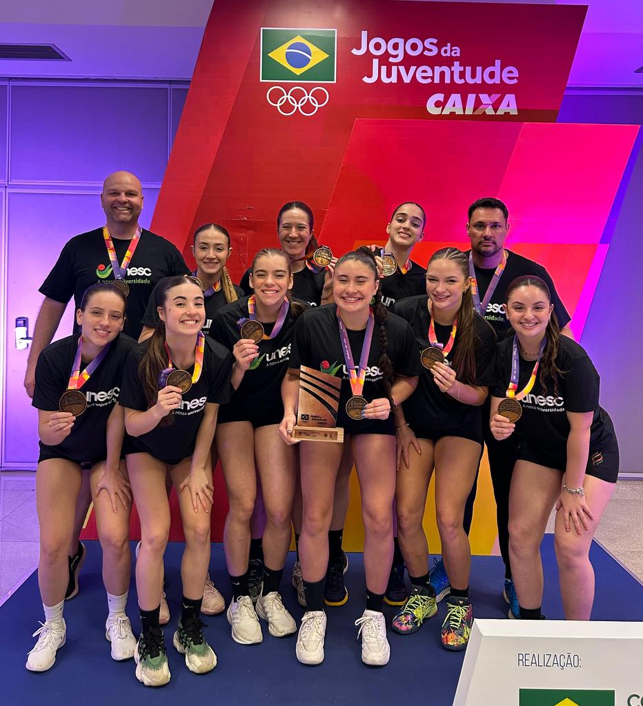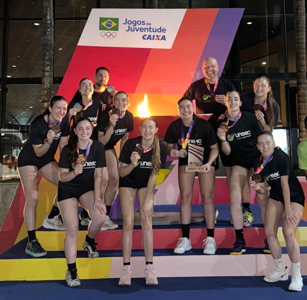 A equipe de voleibol feminino do Colégio Unesc, representando Santa Catarina pelo segundo ano consecutivo, garantiu a medalha de bronze na primeira divisão dos Jogos da Juventude Caixa Brasília. O terceiro lugar foi conquistado contra o time de Minas Gerais, por 3 sets a 1, em partida realizada na quinta-feira (25/9), na quadra do Comando Militar do Planalto. A conquista contribui para Santa Catarina terminar na quarta colocação no quadro de medalhas no geral.