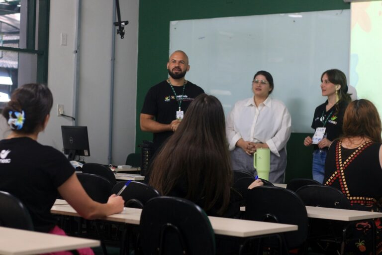 Como parte do cronograma da Semana de Ciência e Tecnologia (SCT) da Unesc, foi realizada uma roda de conversa com o tema “Residência Multiprofissional em Saúde: experiências que transformam a formação e o território” na tarde de quinta-feira (23/10). O encontro foi mediado pelos residentes Jean Carlos Damaceno, nutricionista e residente em Saúde Coletiva, Jessica Comicioli, enfermeira e residente em Saúde Mental e Luana Piacentini Brunel, profissional de Educação Física, residente em Atenção Básica e Saúde da Família, que compartilharam as rotinas e explicaram o funcionamento, os desafios e as oportunidades proporcionadas pela residência.