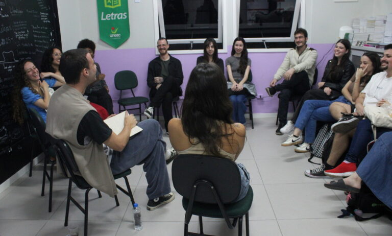 A Unesc realizou no dia 22 de outubro mais um encontro do projeto Biblioterapia na Biblioteca. A atividade, vinculada aos cursos de Letras e Psicologia, reuniu participantes para leitura e discussão do conto “É Pra Lá Que Eu Vou”, de Clarice Lispector, com reflexões sobre temas como amor e vida.