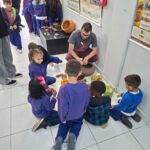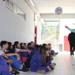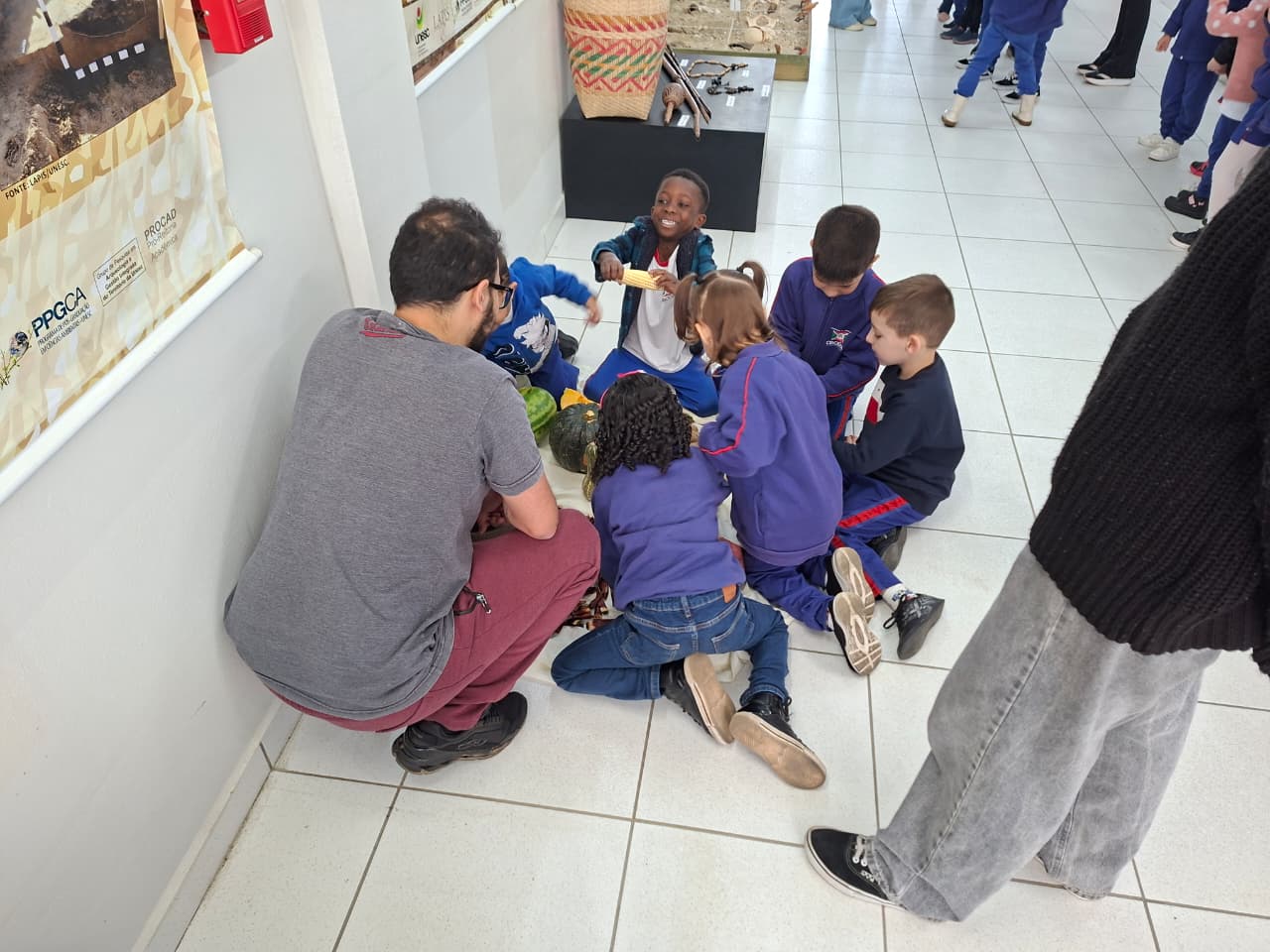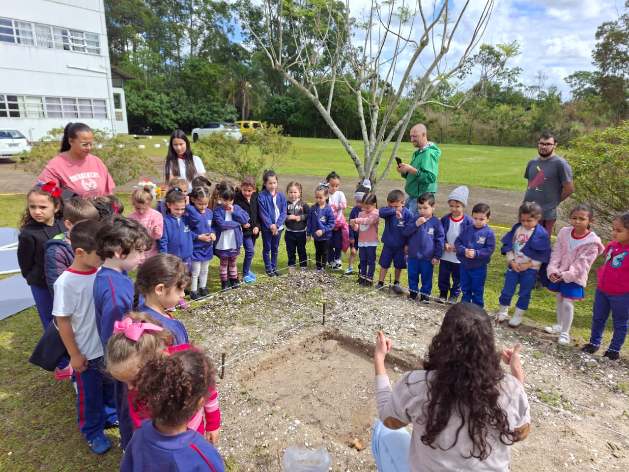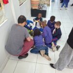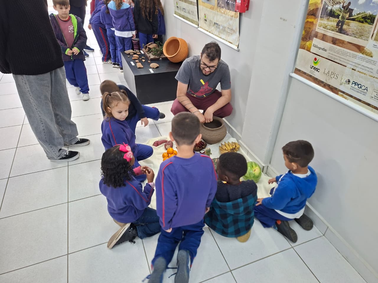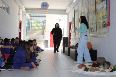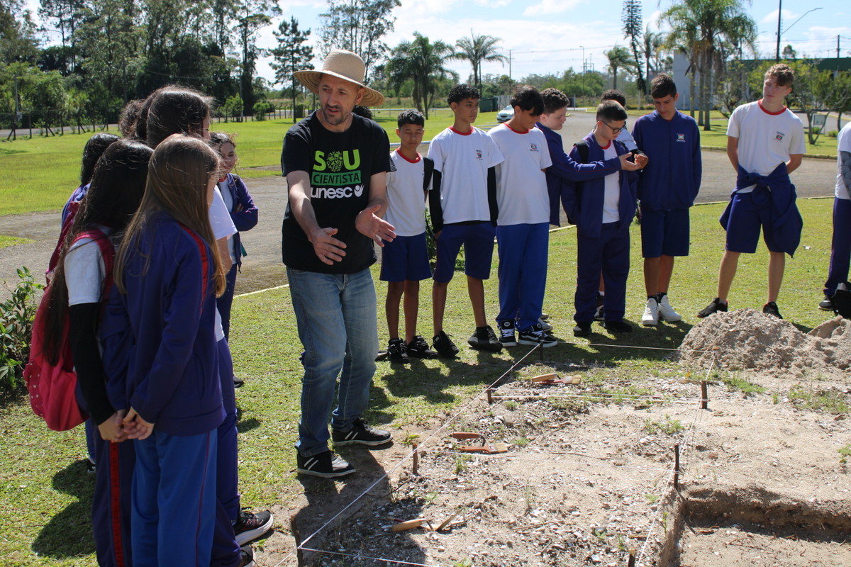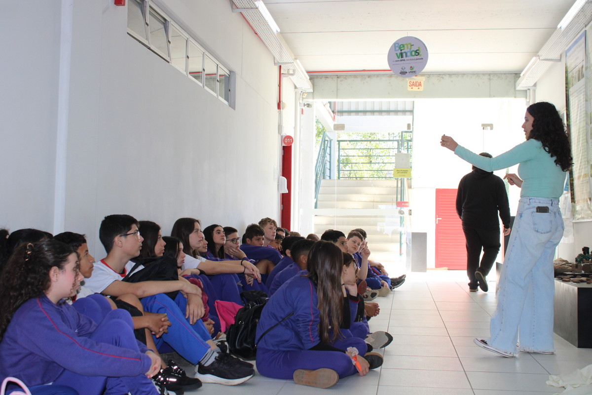 Na manhã desta terça-feira (20/10), os alunos do 6º ano da Escola Judite Duarte de Oliveira, do bairro Sangão, em Criciúma, participaram das atividades. Além de conhecer a estrutura do Laboratório, os estudantes aprenderam a história dos povos originários da região e a forma como eles se alimentavam.