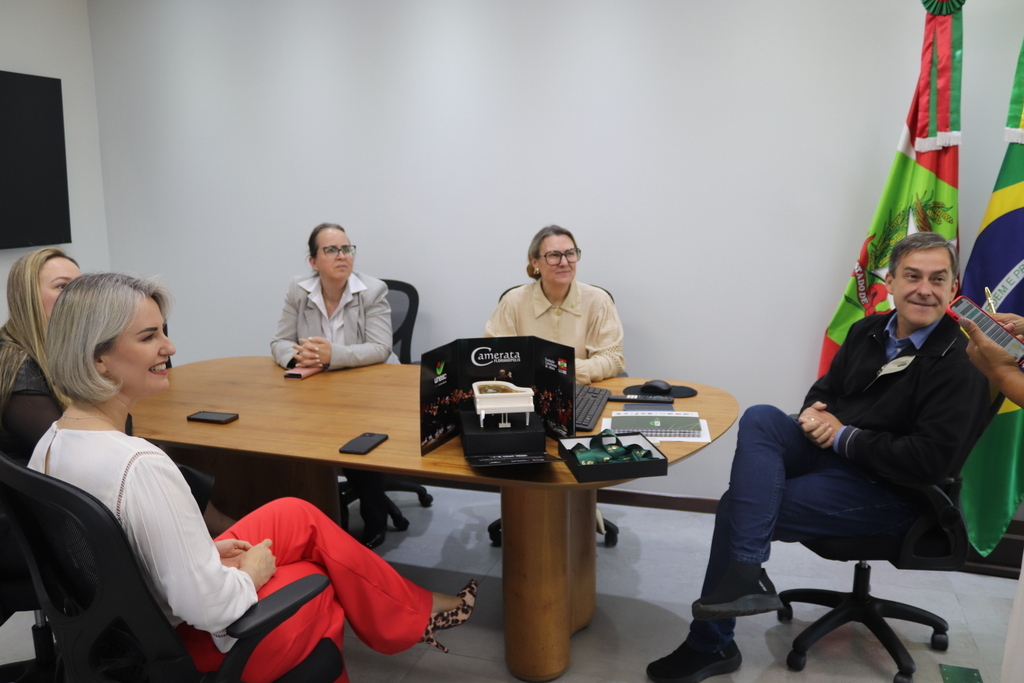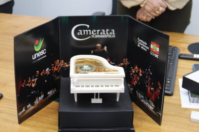 A apresentação da Camerata Florianópolis promete emocionar o público em uma noite especial que une história, música e celebração em homenagem à cidade que completa 100 anos de emancipação político-administrativa no dia 4 de novembro. Também estiveram no encontro a chefe de gabinete Suélen Rosa Biz, a assessora institucional da reitoria e coordenadora do Seacar, Kelly Dalla Lana, e a secretária executiva do gabinete da reitoria Andreia Borges Bartolomeu.