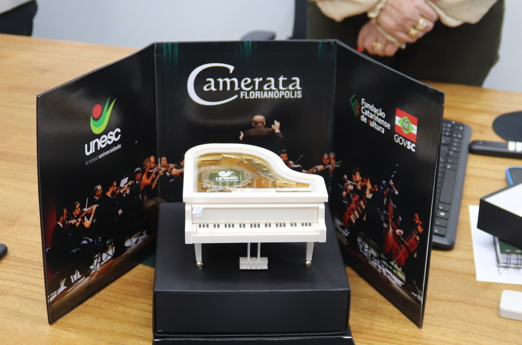 Com a tradição de estar próxima à comunidade, a Unesc reforça sua origem e identidade ao participar da programação do Centenário. “A Unesc nasceu há 57 anos pelos desejos da sociedade civil organizada de Criciúma e região. E eventos como esse são a forma da Universidade dizer muito obrigada à comunidade e ao Município”, enfatizou Gisele, durante a entrega do convite em formato de um piano que se revela como uma caixa de música.