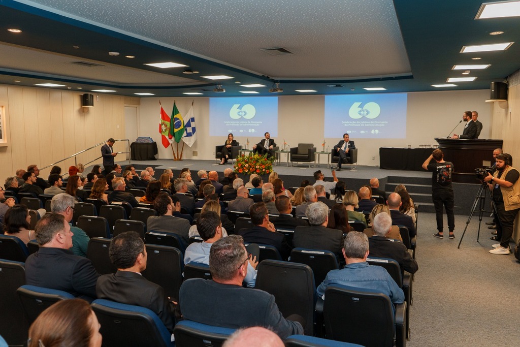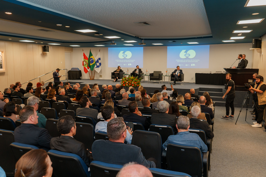 A cerimônia, realizada no Auditório Azul do Tribunal de Contas do Estado (TCE/SC), reuniu autoridades, profissionais, docentes e lideranças da área, em um ambiente de celebração à trajetória de quem contribuiu de maneira decisiva para consolidar a Administração como área estratégica para o desenvolvimento social e econômico do país.