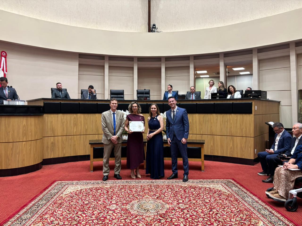 A reitora em exercício, Gisele Silveira Coelho Lopes, destacou o significado da conquista para a instituição. “Esta certificação reforça a identidade comunitária da Universidade e o compromisso com o desenvolvimento regional. Receber mais esse reconhecimento da Alesc é motivo de alegria para toda a nossa comunidade acadêmica. A Unesc nasceu para servir à sociedade e cada conquista ratifica que estamos no caminho certo, promovendo educação de qualidade, inclusão social, inovação e cuidado com as pessoas e com o meio ambiente”, afirmou.